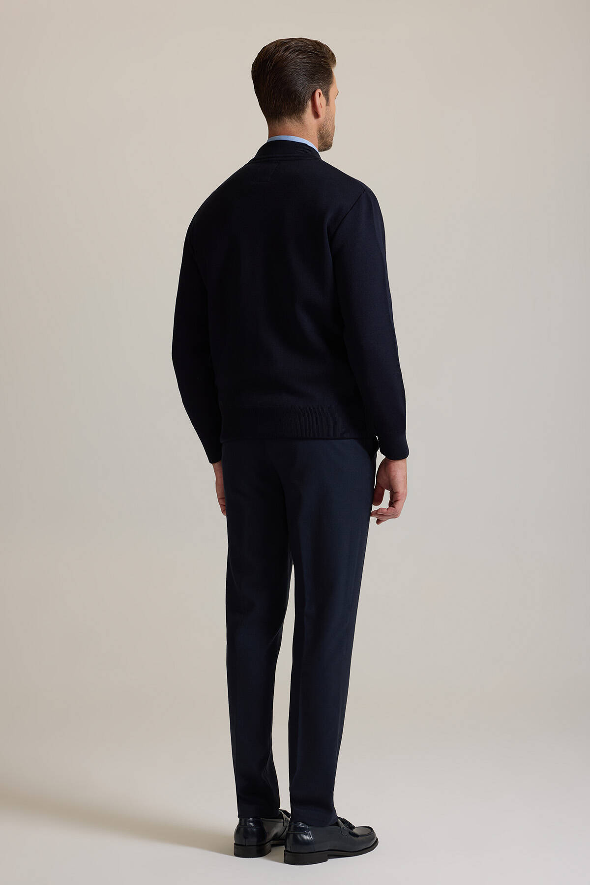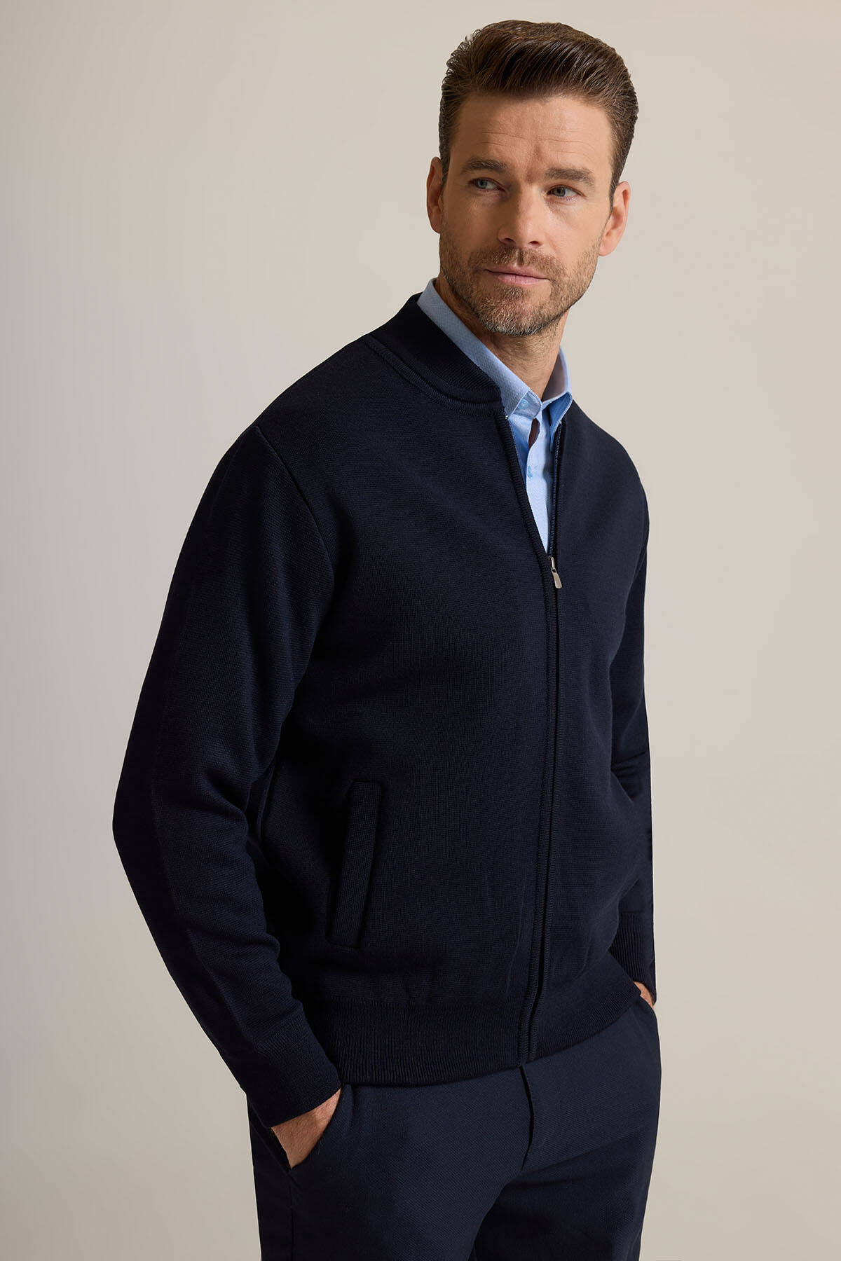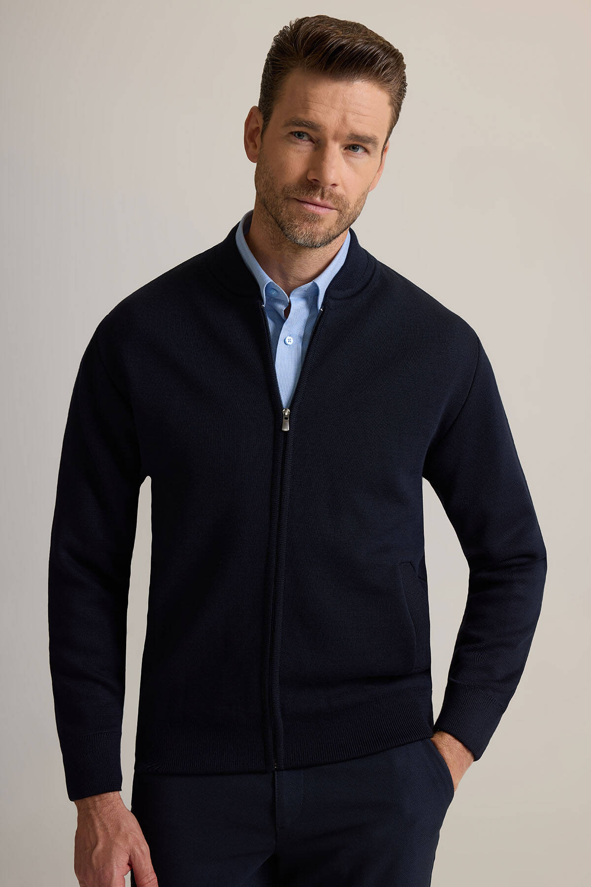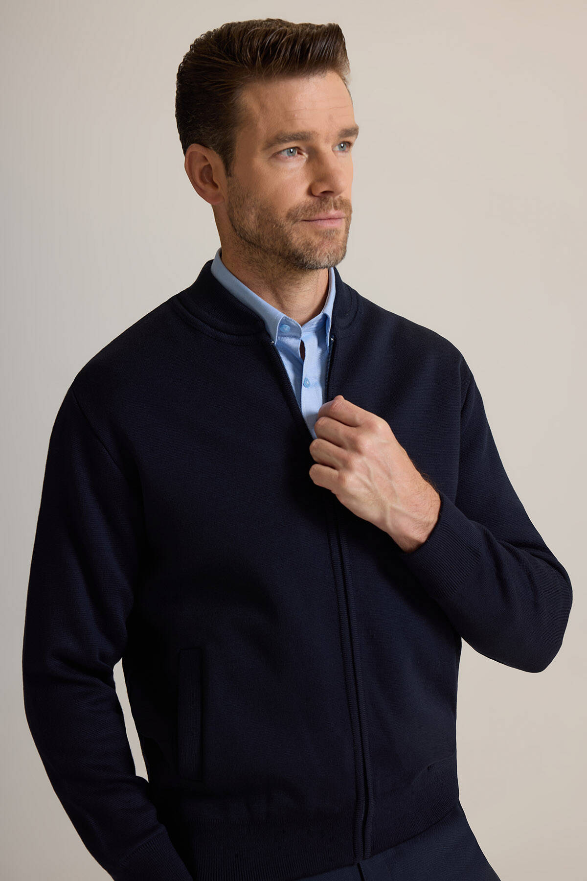 Erkek Lacivert Sıfır Yaka İçi Astarlı Fermuarlı Triko Hırka