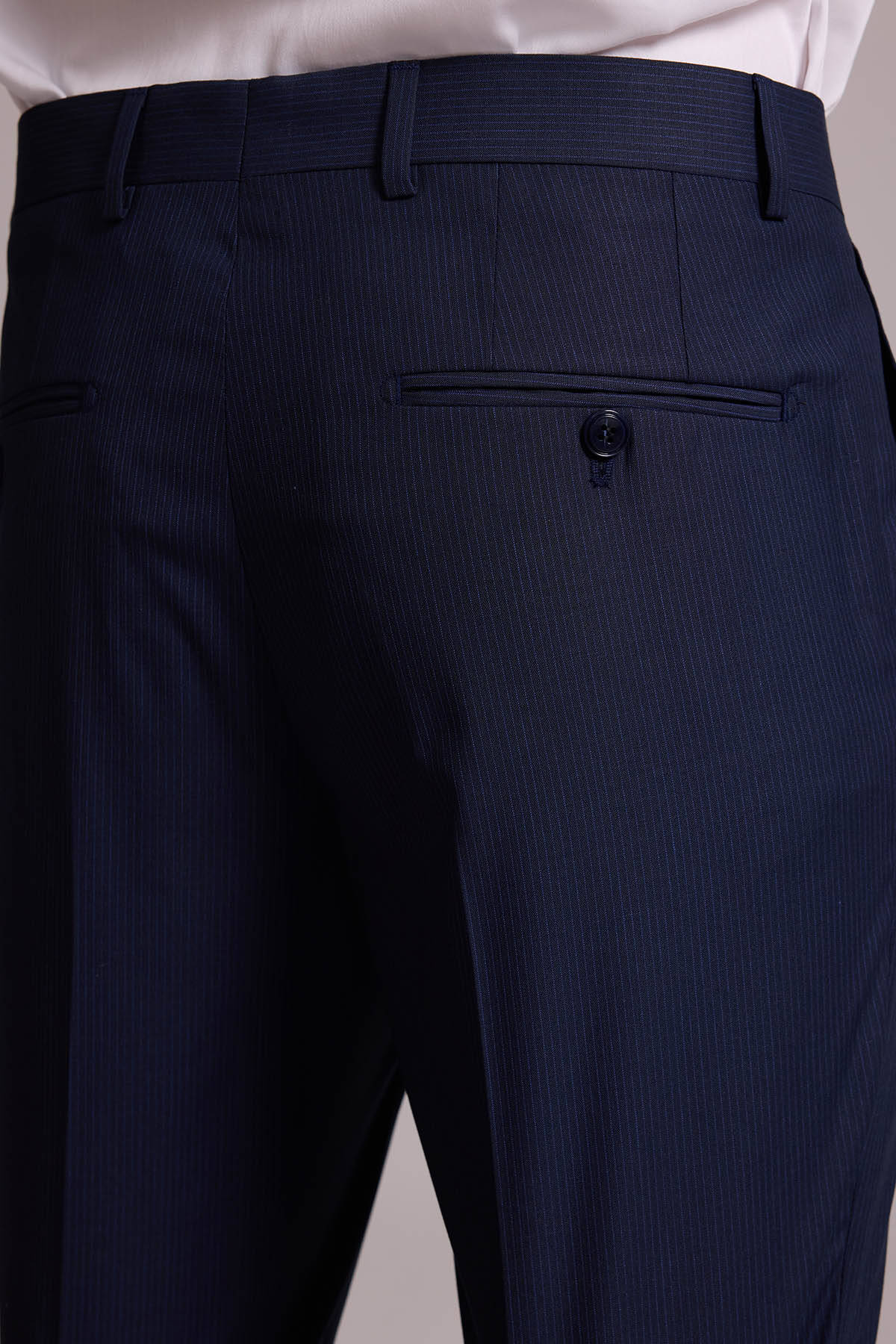 Erkek Lacivert Çizgili Slim Fit Sivri Yaka Kruvaze %100 Yün Takım Elbise
