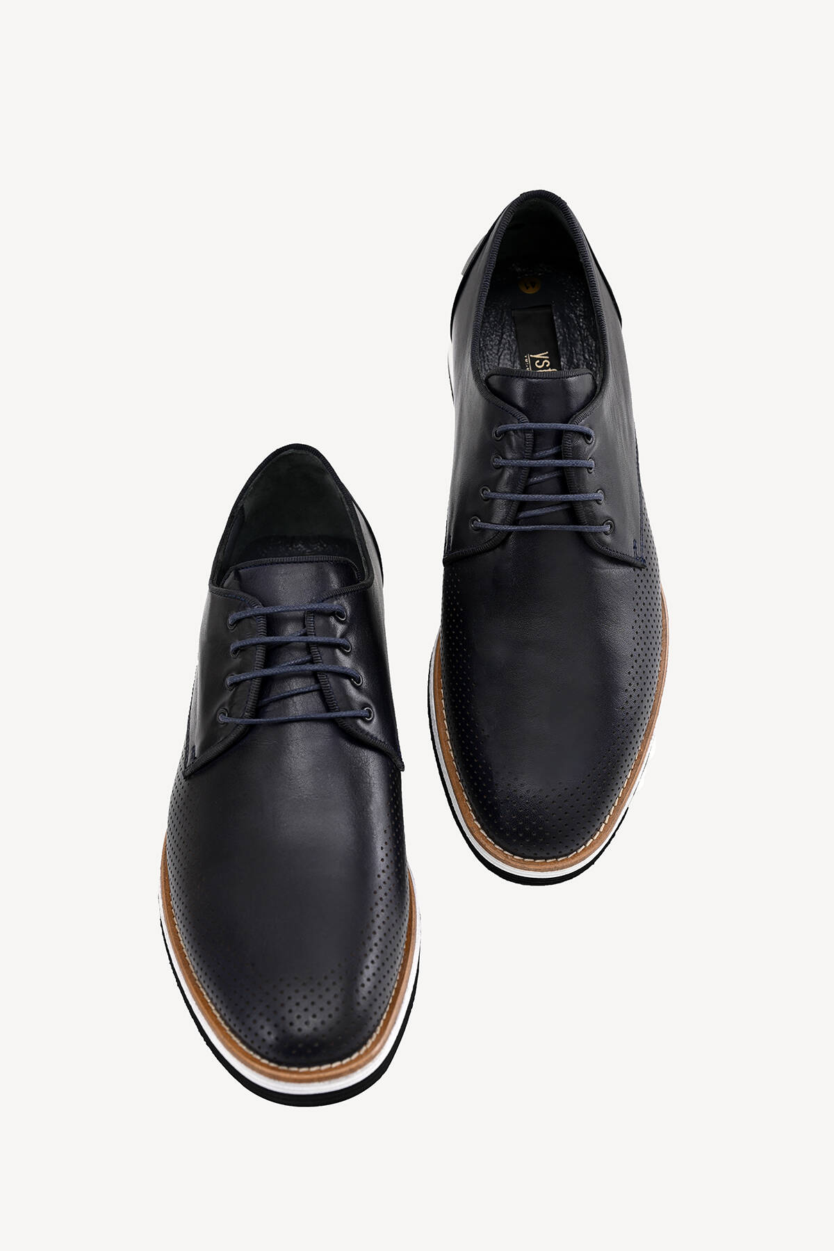 Erkek Lacivert Spor Yüksek Taban Bağcıklı Casual Ayakkabı