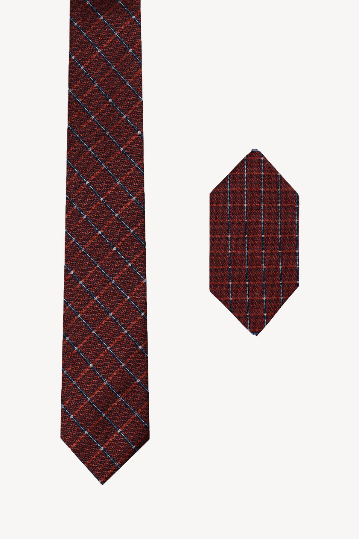 Erkek Lacivert Taba Çizgi Desenli Kravat Mendil Set