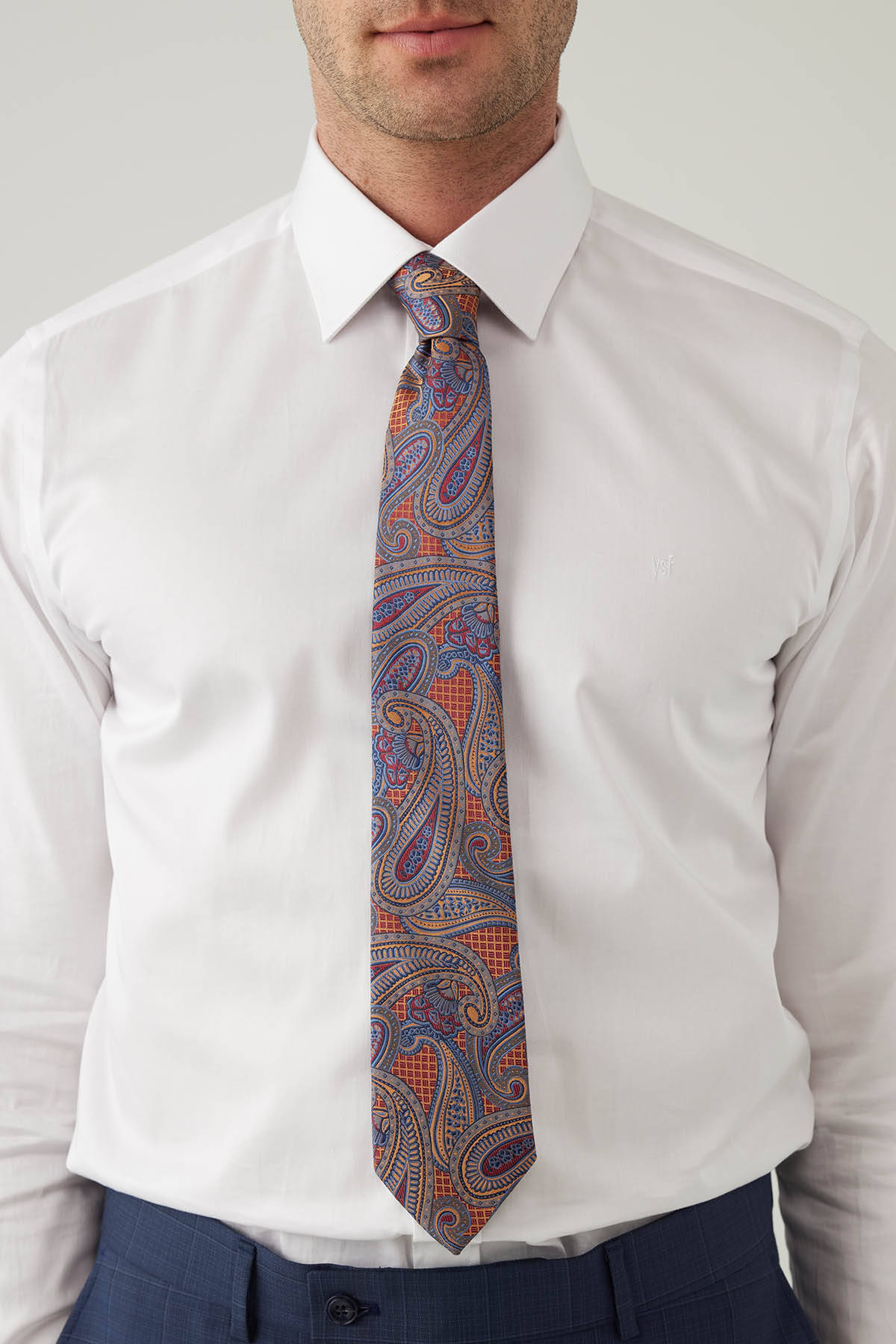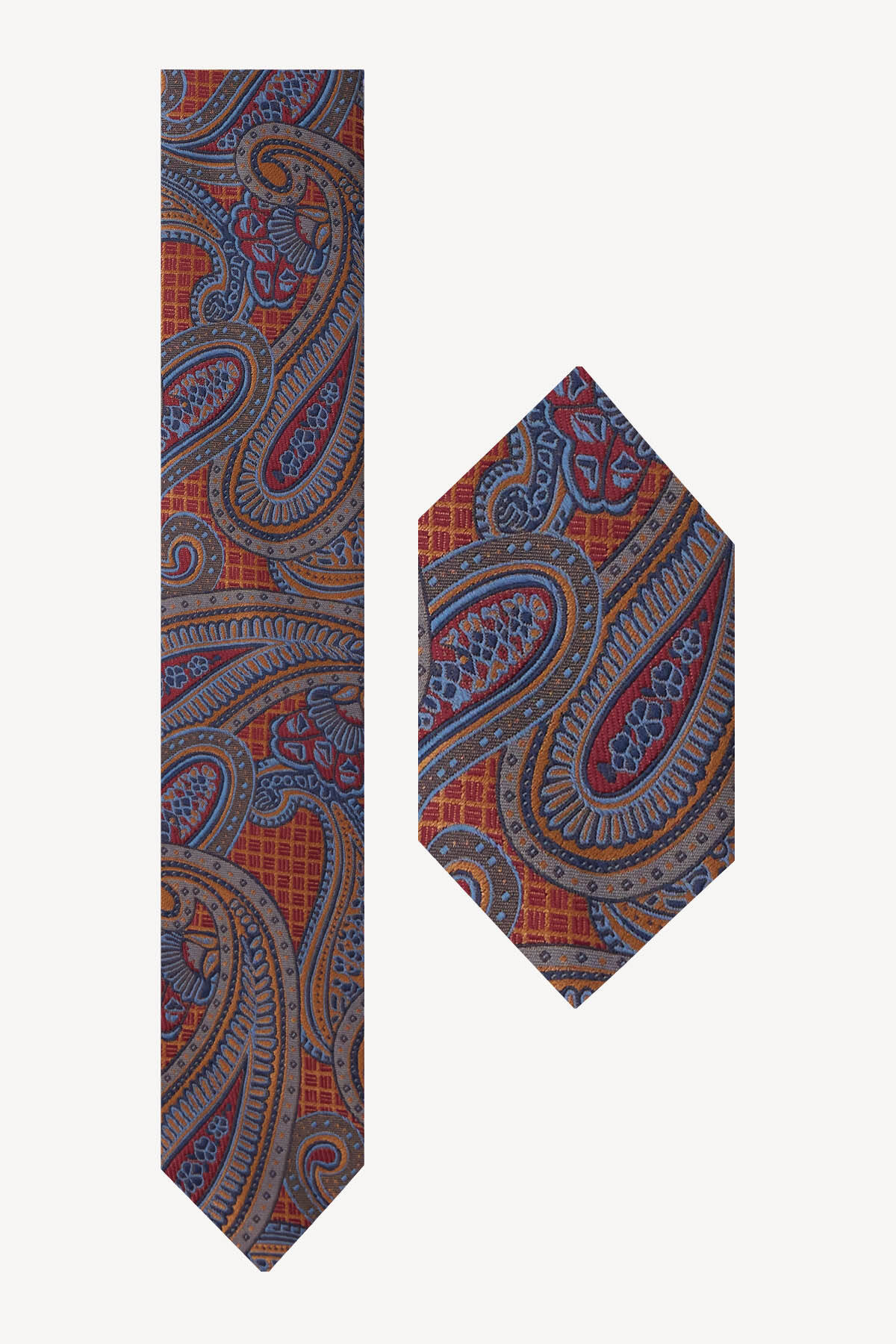 Erkek Lacivert Taba Desenli Kravat Mendil Set