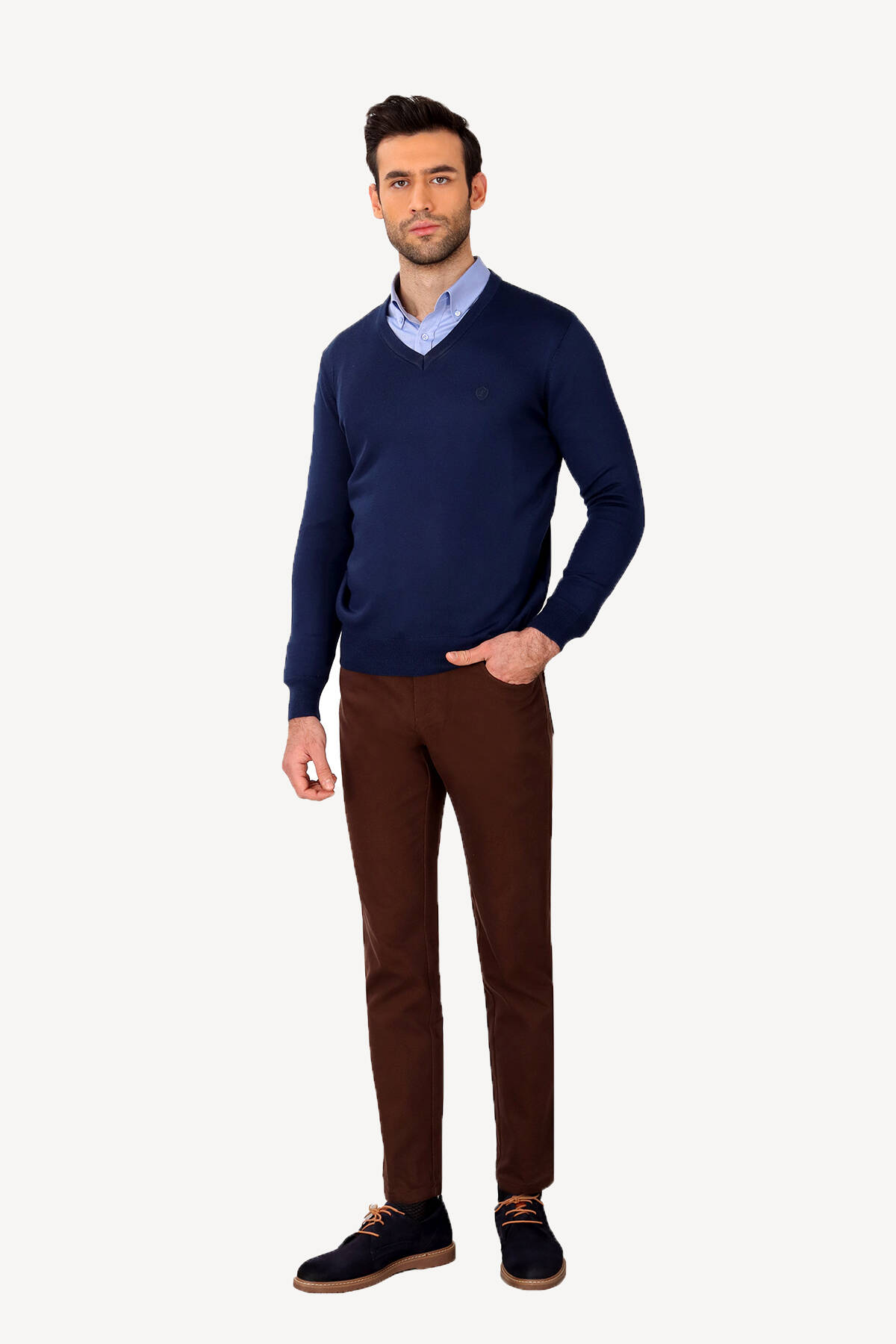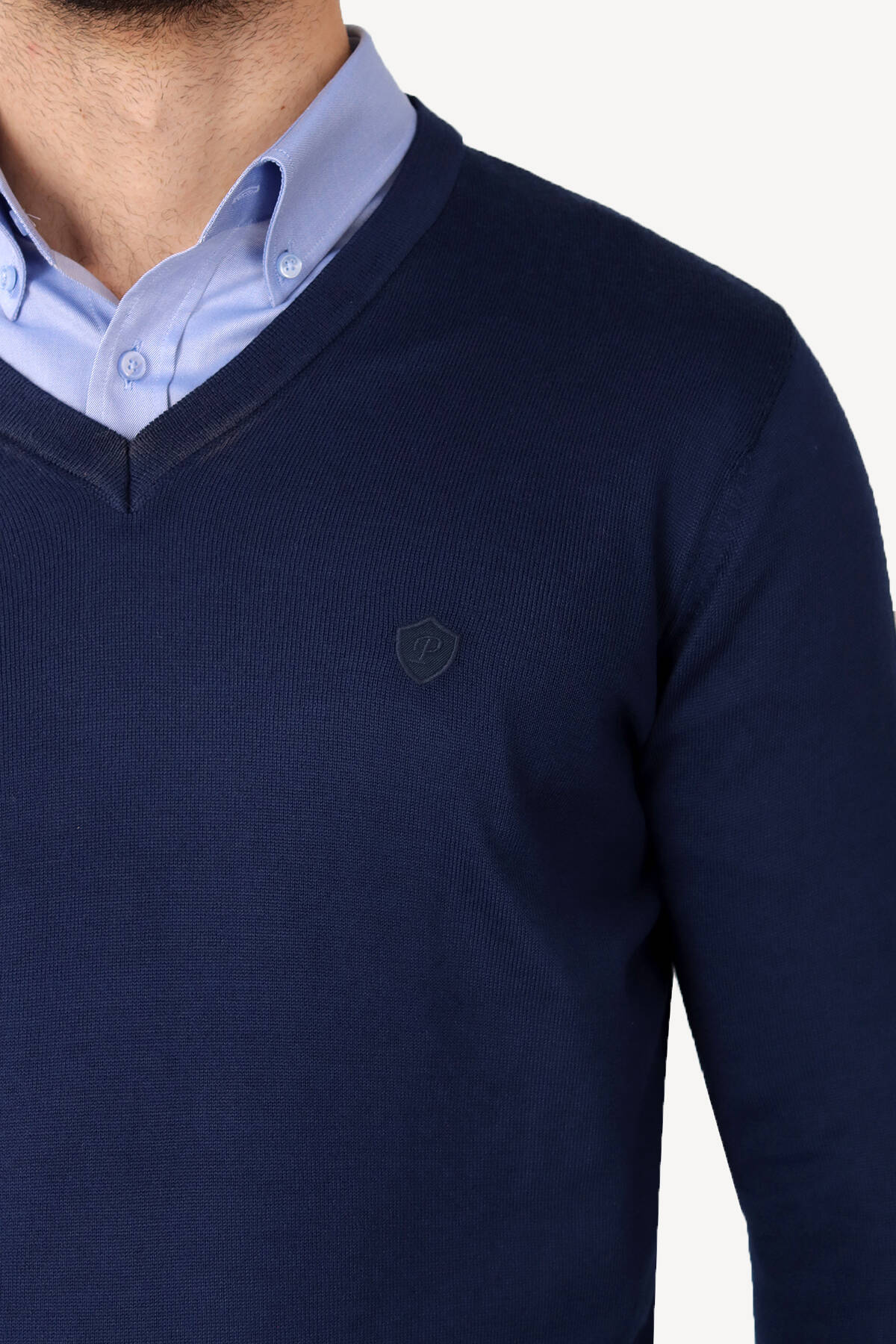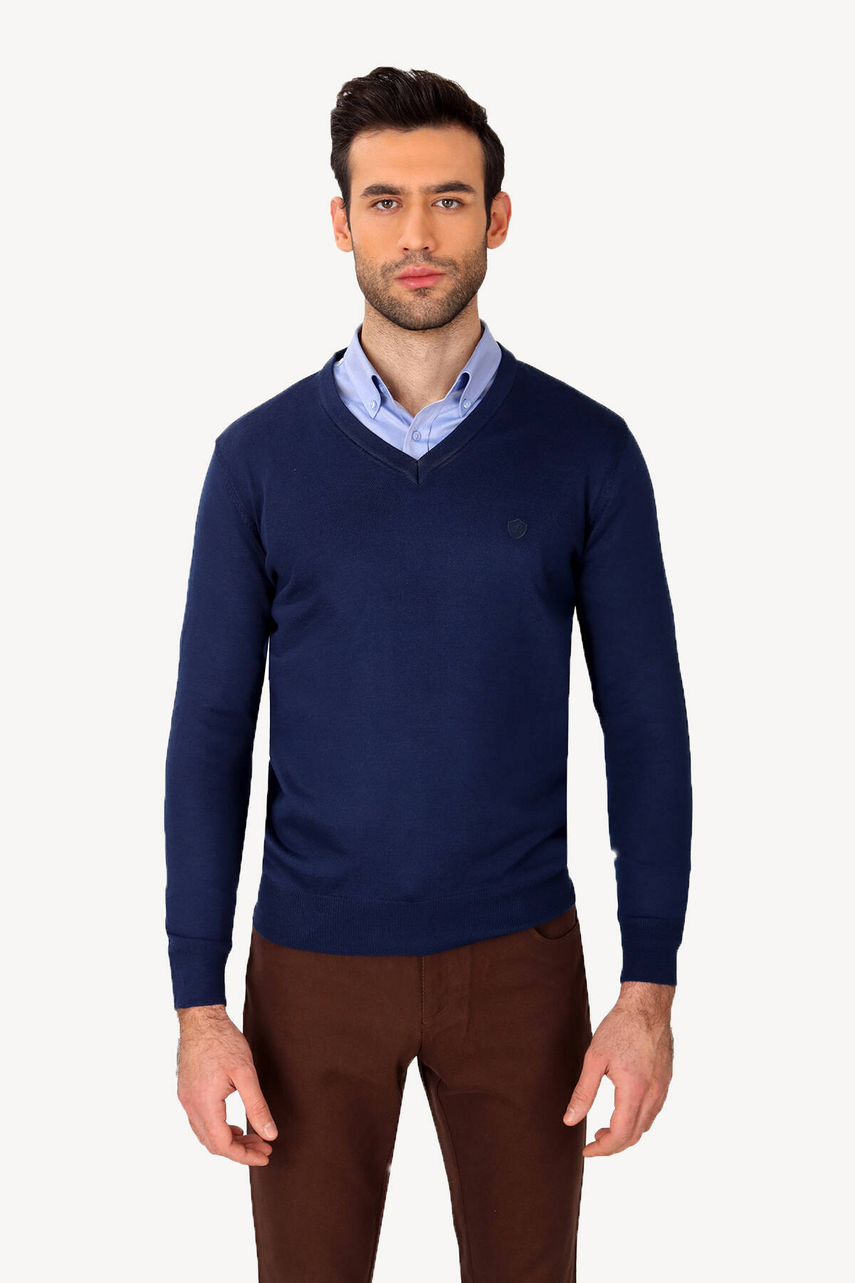 Erkek Lacivert Regular Fit Çizgili Kruvaze Takım Elbise