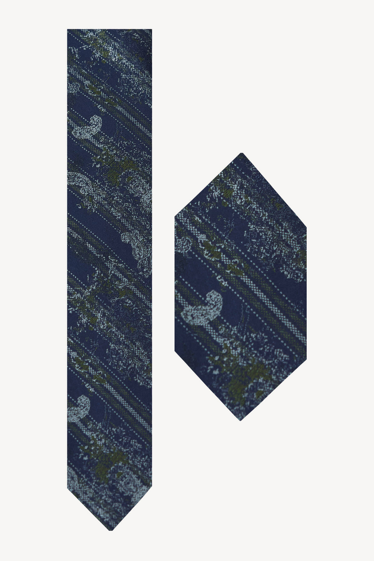 Erkek Lacivert Yeşil Desenli Kravat Mendilli Set