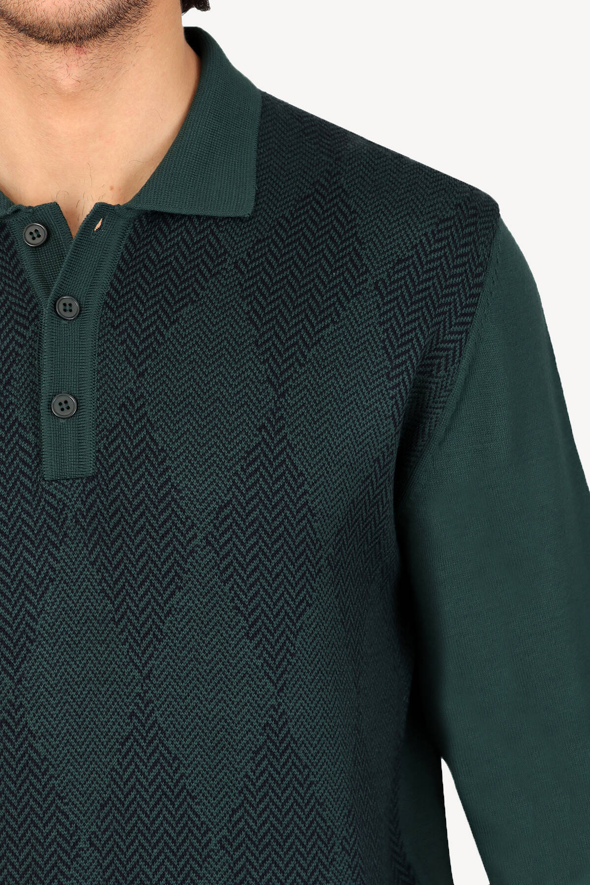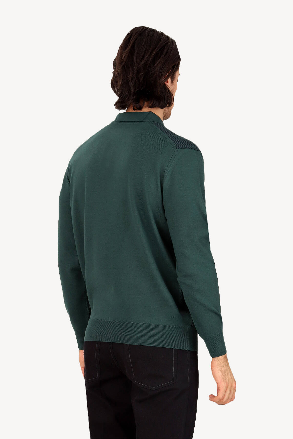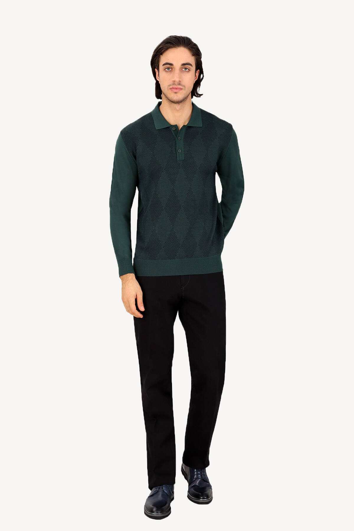 Erkek Lacivert Yeşil Klasik Polo Yaka Desenli Triko