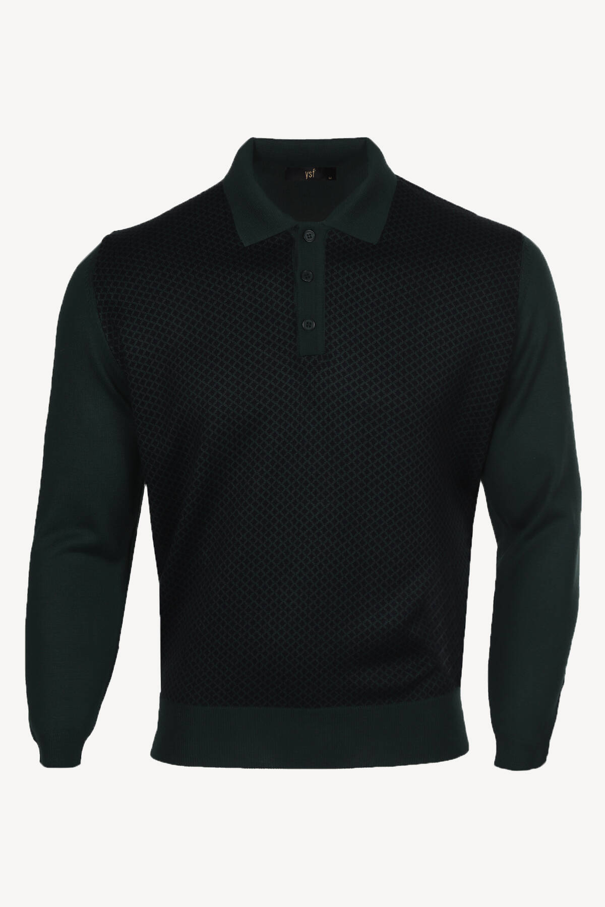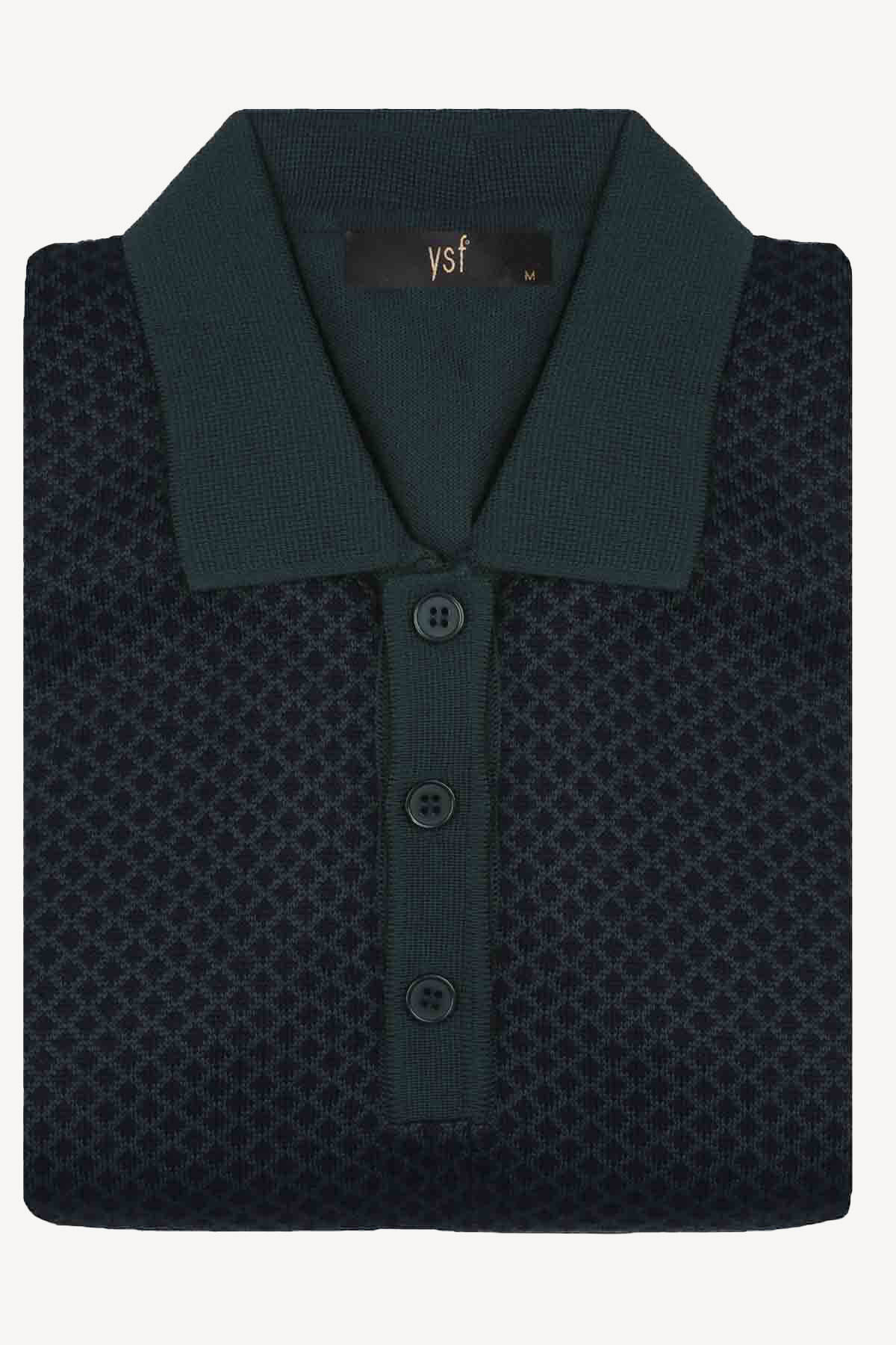 Erkek Lacivert Yeşil Yünlü Polo Yaka Desenli Triko