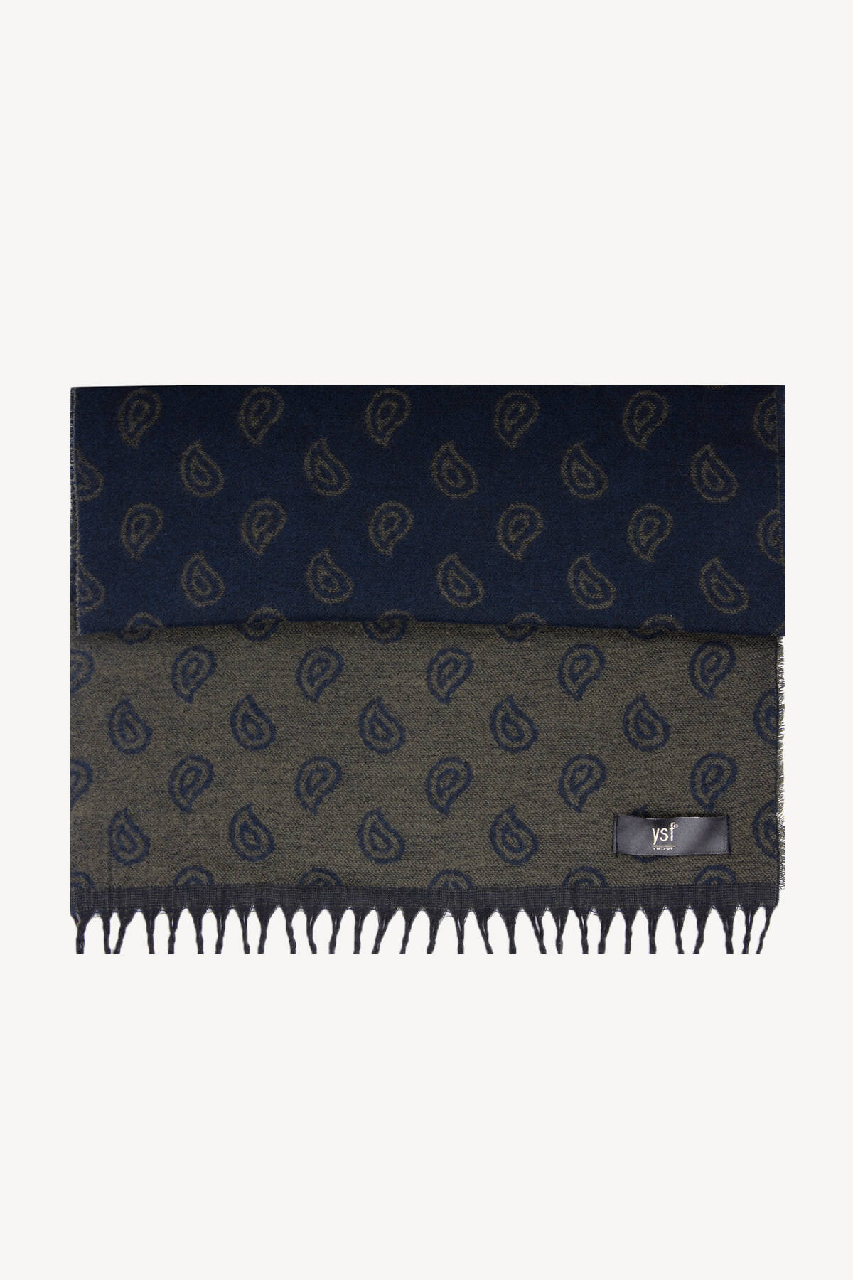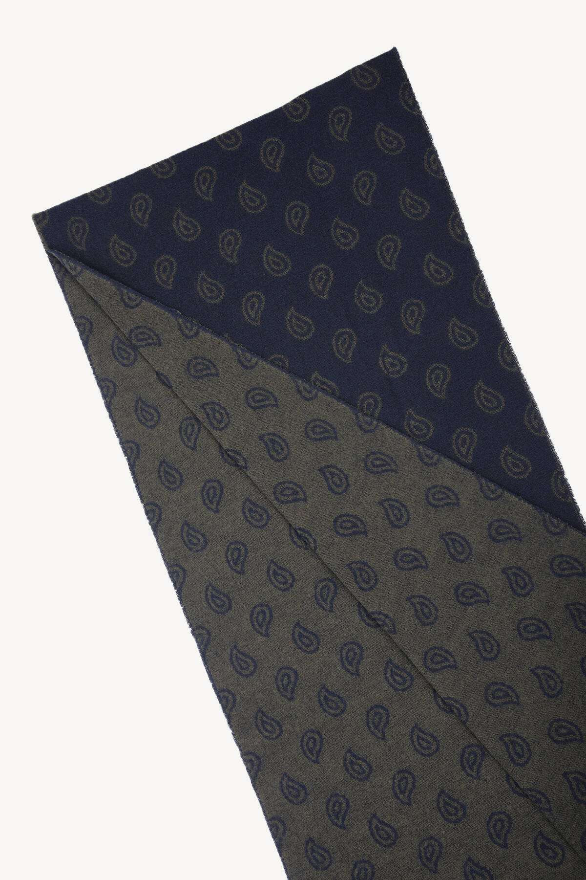 Erkek Lacivert Yeşil Yünlü Şal Desenli Kaşkol