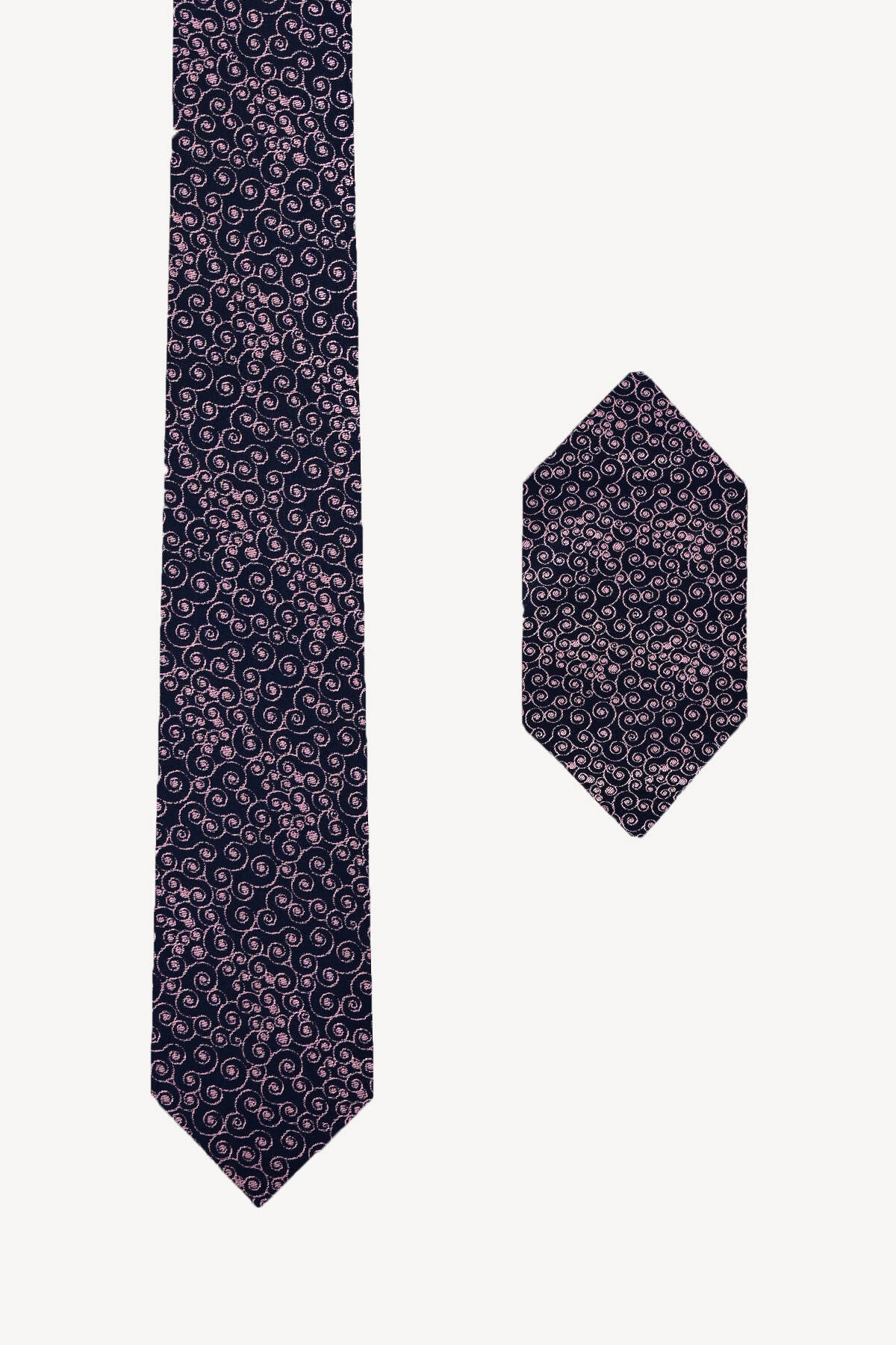Erkek Lacivert Desenli Slim Kravat Mendil Set