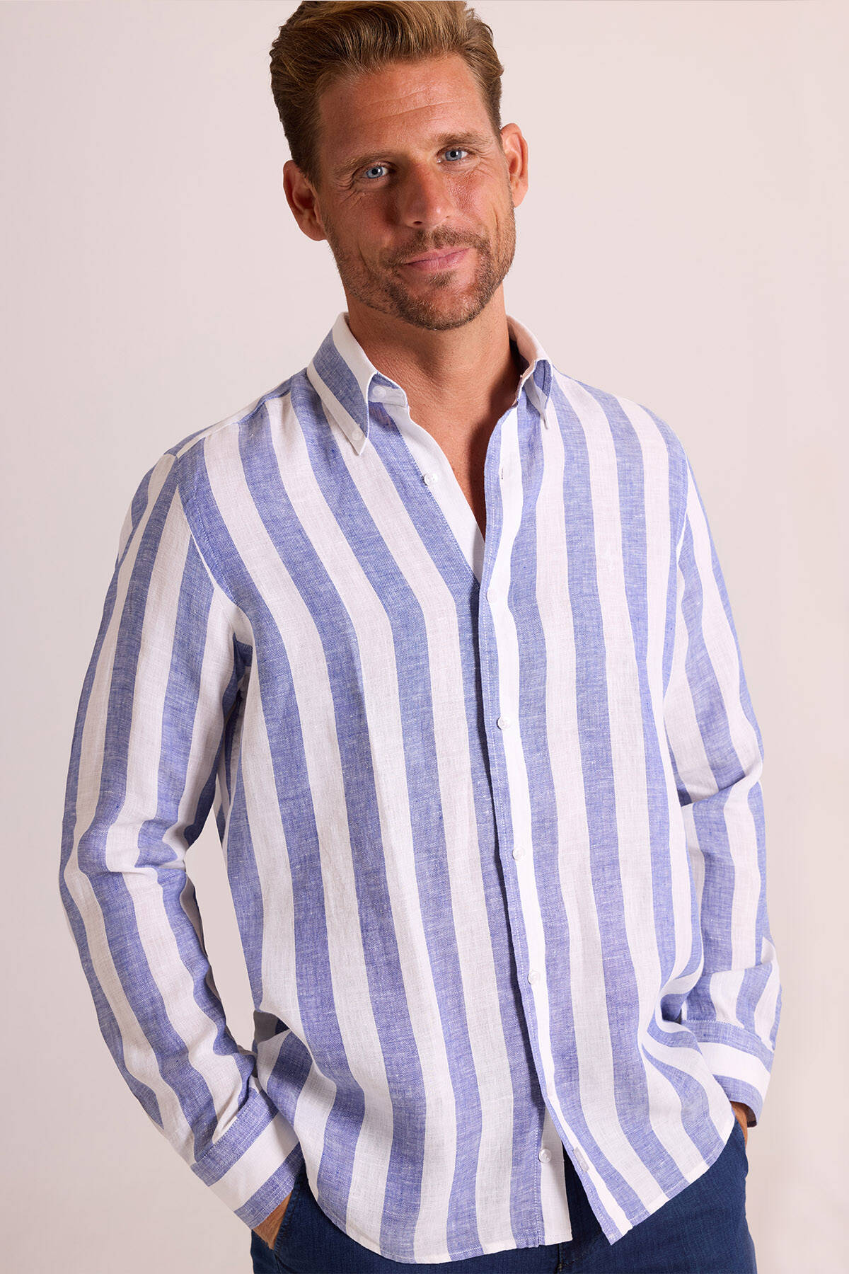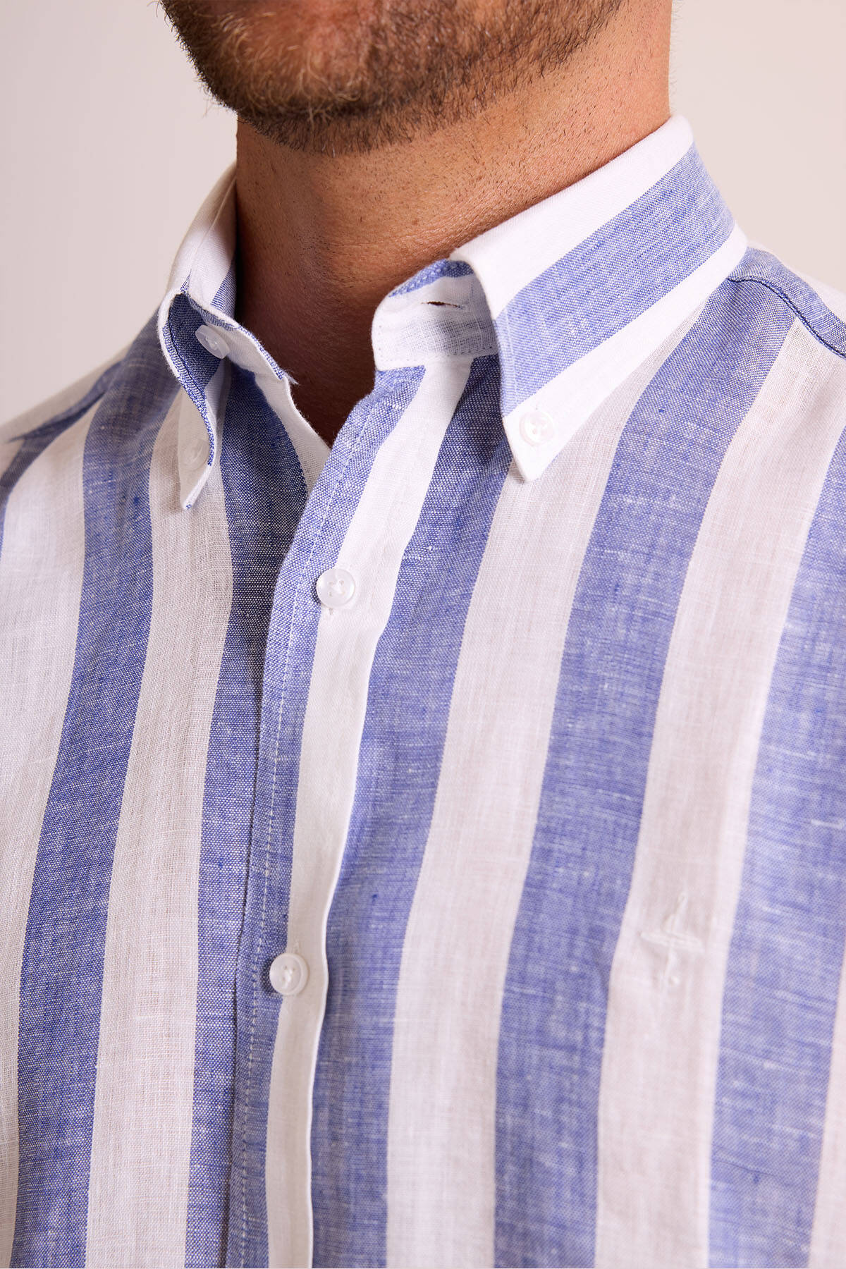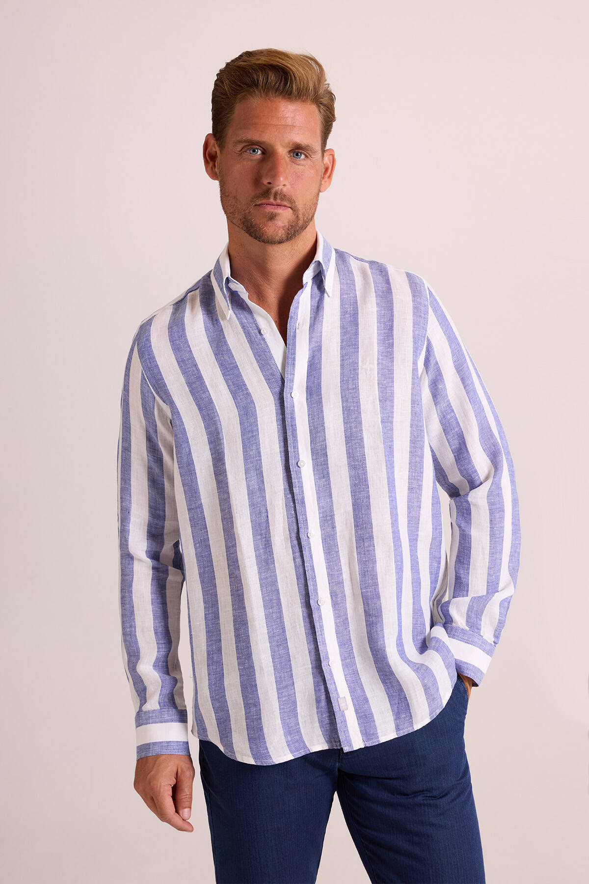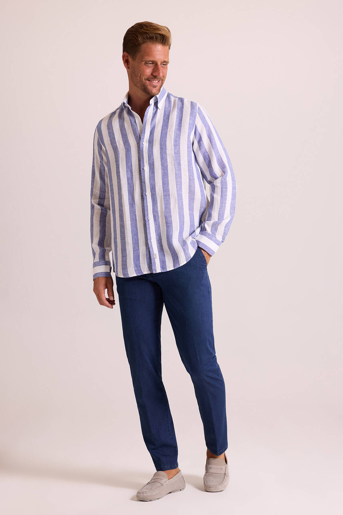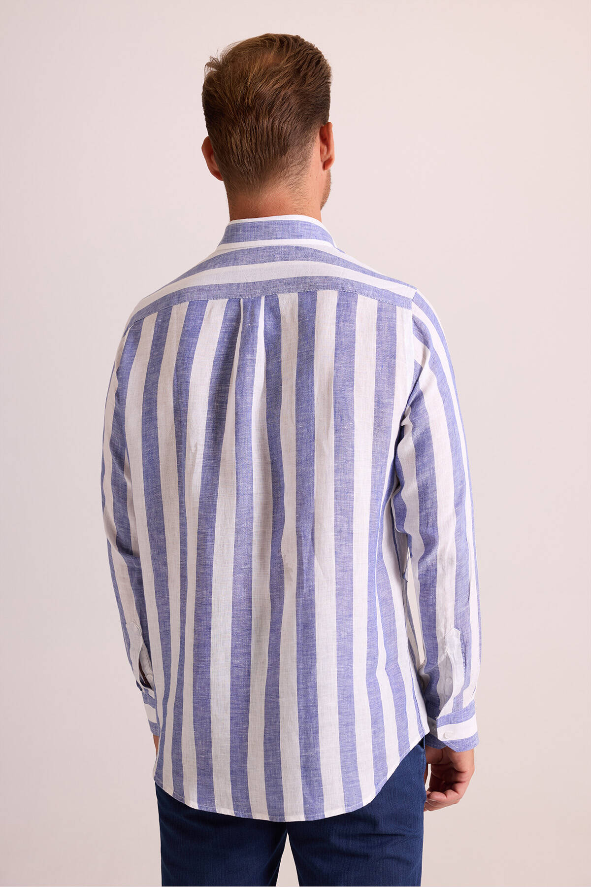 Gelince Haber VerYSF Giyim Erkek Mavi Beyaz Çizgili Regular Fit Keten Gömlek, klasik yaz silüetlerine yüksek kalite ve hassas işçilik eklemeyi vadeden çarpıcı bir tasarımdır. Gömleğin saf keten liflerinden oluşan tuşesi en sıcak ve bunaltıcı günlere dahi ferahlık ve hafiflik katar. Regular fit kesimin rahatlığı ise maksimum konforu garantilerken aynı zamanda orantılı silüeti de korur. Bu şık erkek keten gömlek, Fransız Rivierası’ndan ilham alan benzersiz Akdeniz estetiğini yaz boyunca gittiğiniz her yere taşımanızı sağlar. Uzun kollu tasarımı ve rahatlığı klas bir stille buluşturan dokusu özellikle keten pantolon gibi hafif parçalarla kombinlendiğinde Akdeniz tarzına dönüşebilir.