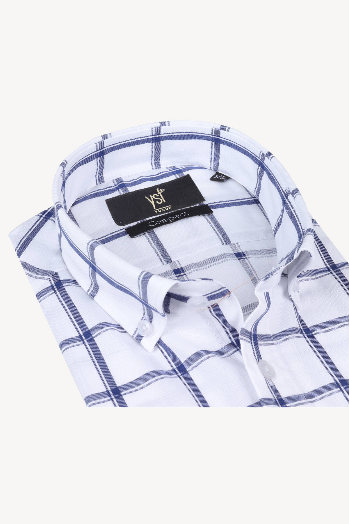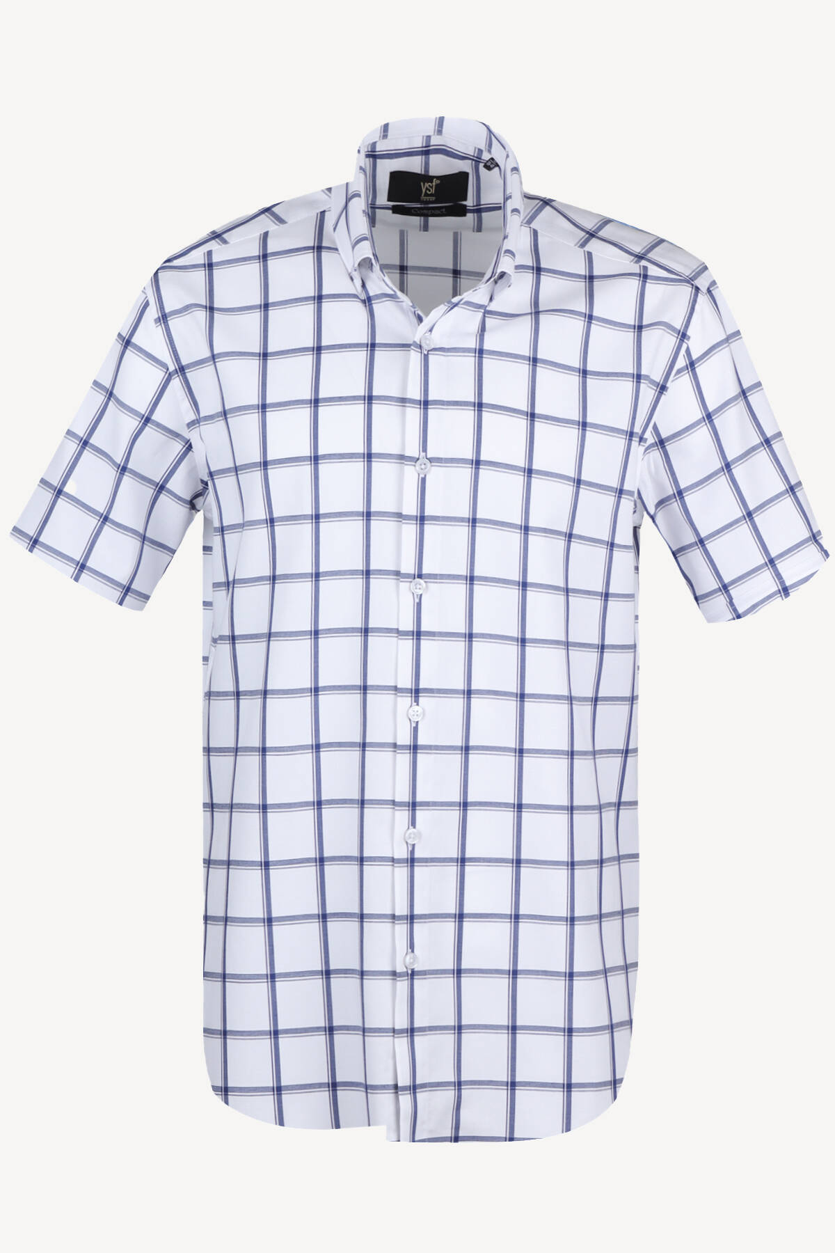 Erkek Mavi Beyaz Ekose Slim Fit Kısa Kollu Gömlek