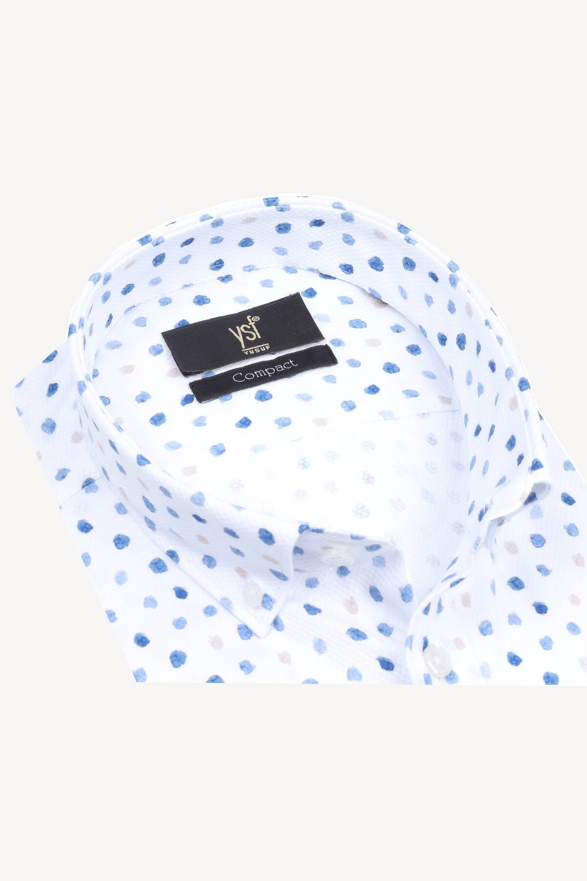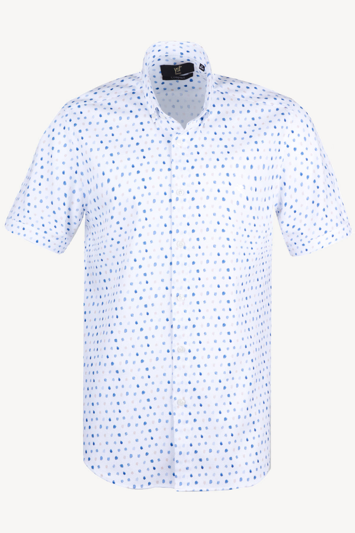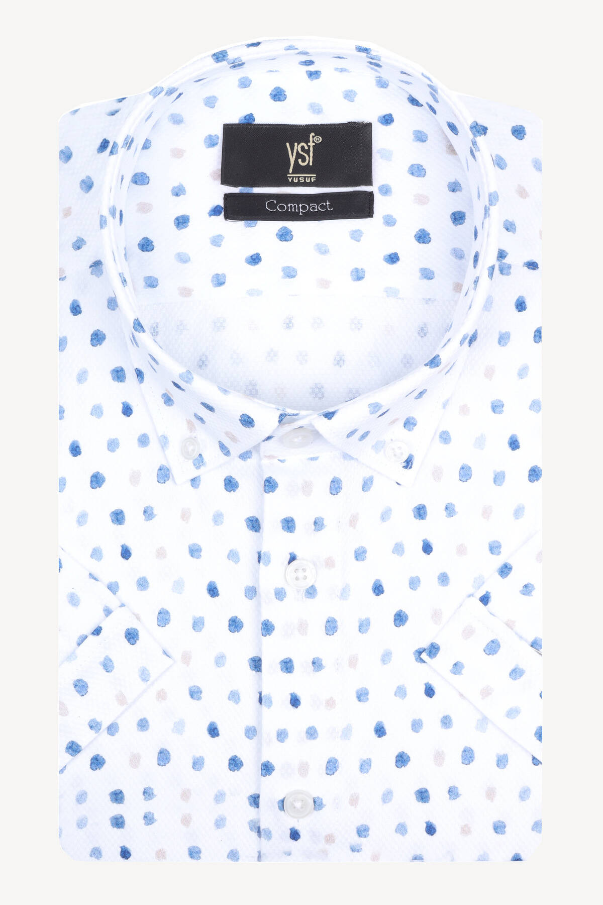 Erkek Mavi Beyaz Kısa Kol Cotton Slim Fit Desenli Gömlek