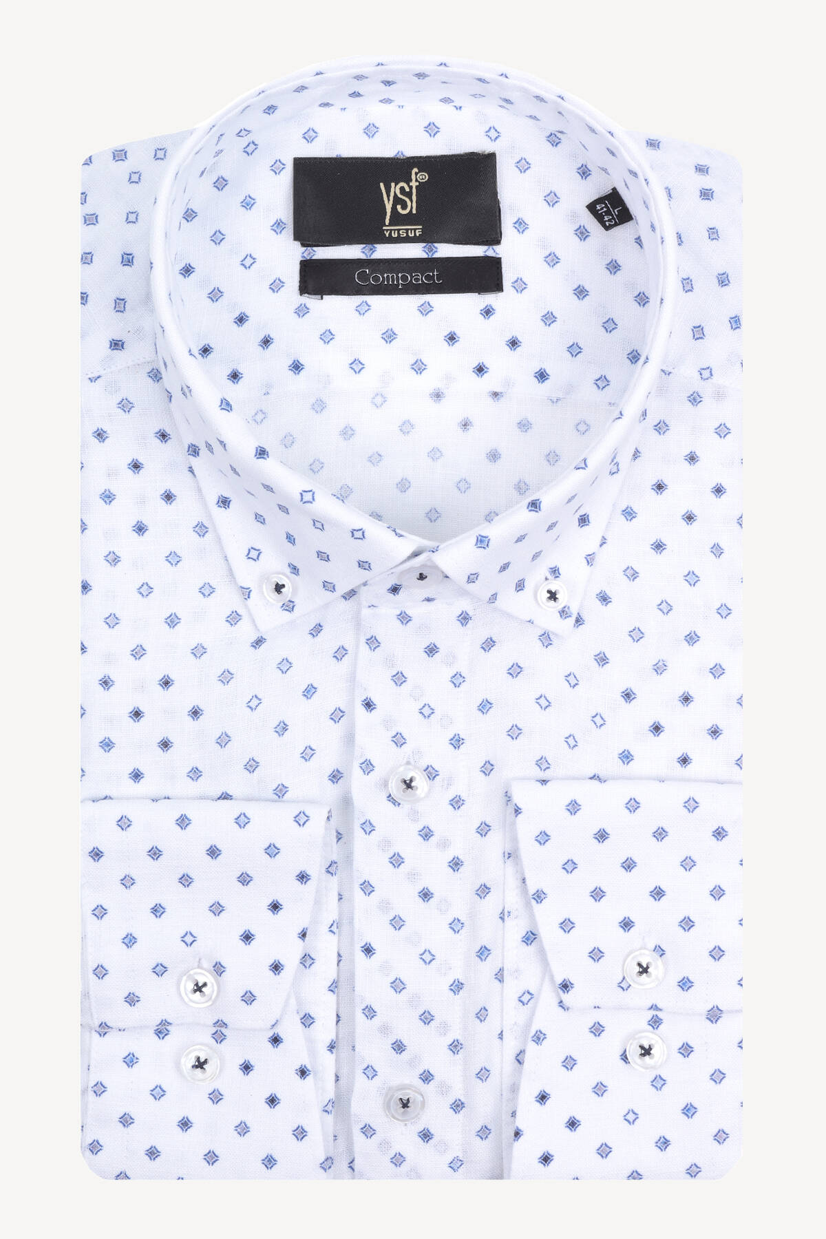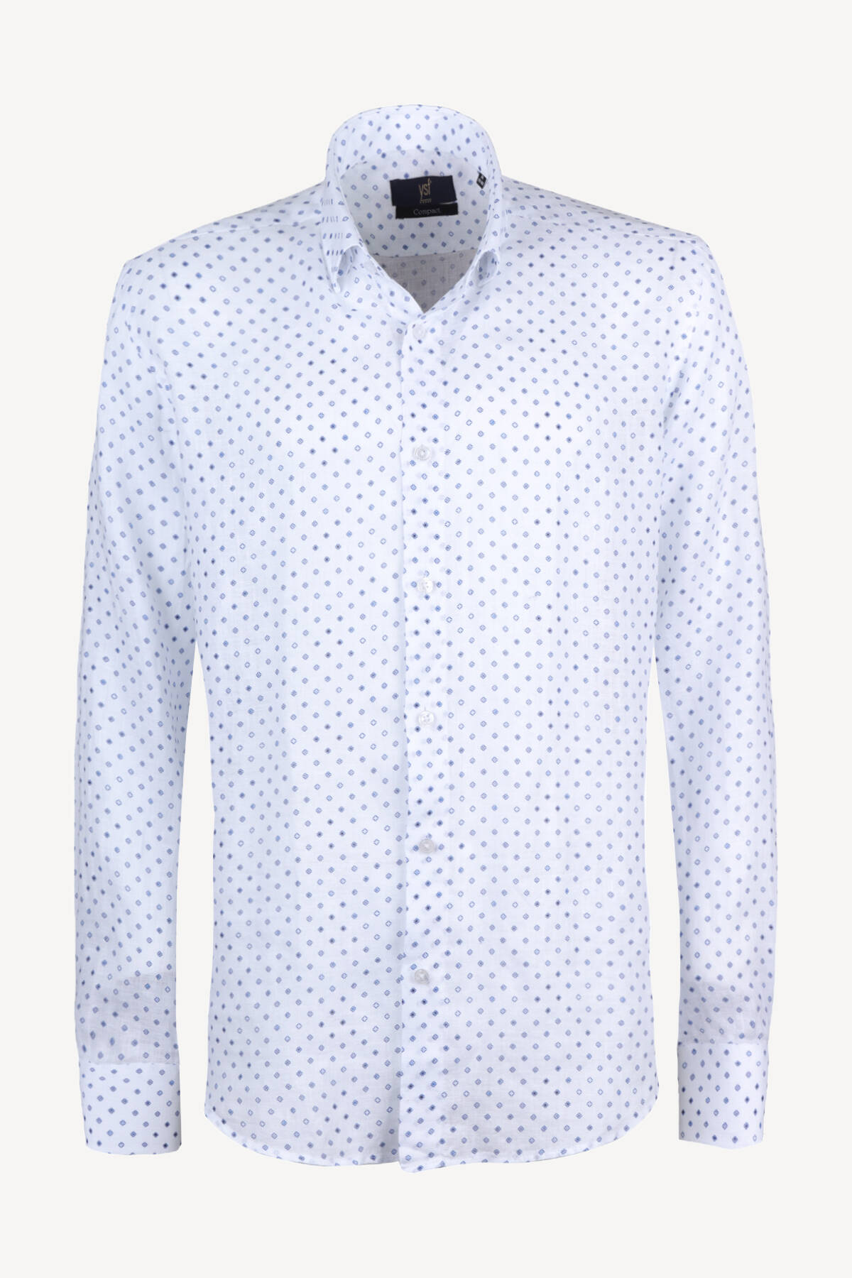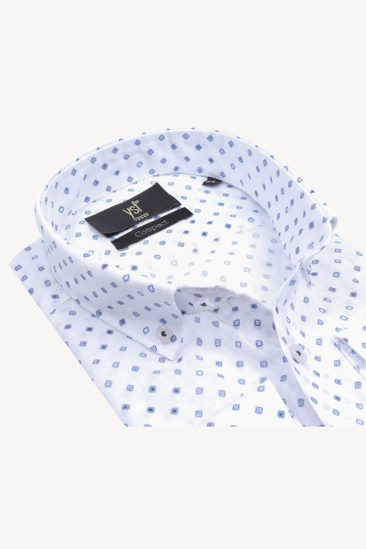 Erkek Mavi Beyaz Slim Fit %100 Keten Desenli Gömlek