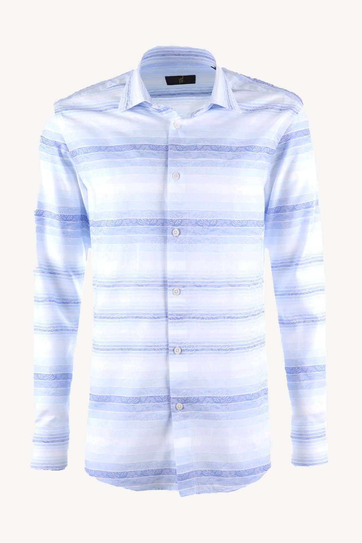 Erkek Mavi Desenli Uzun Kollu Slim Fit Gömlek