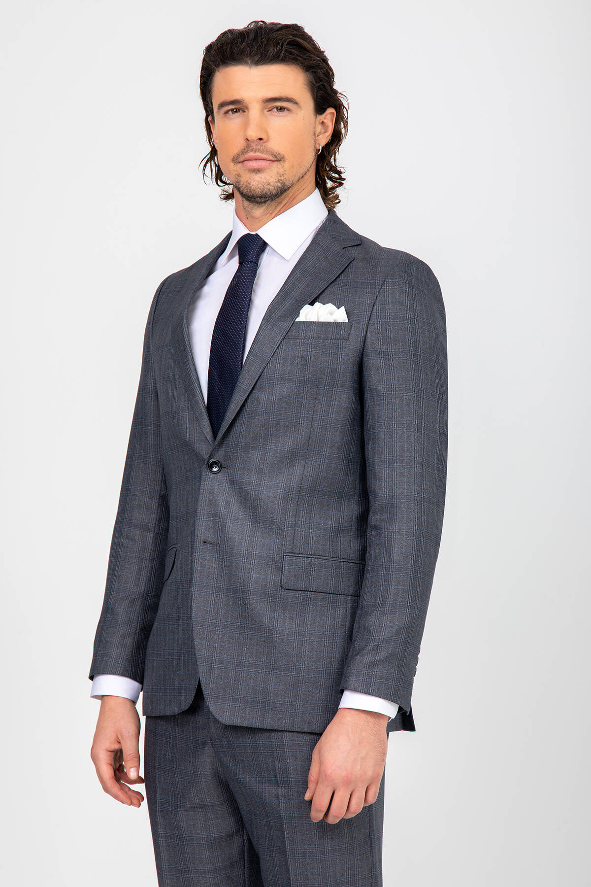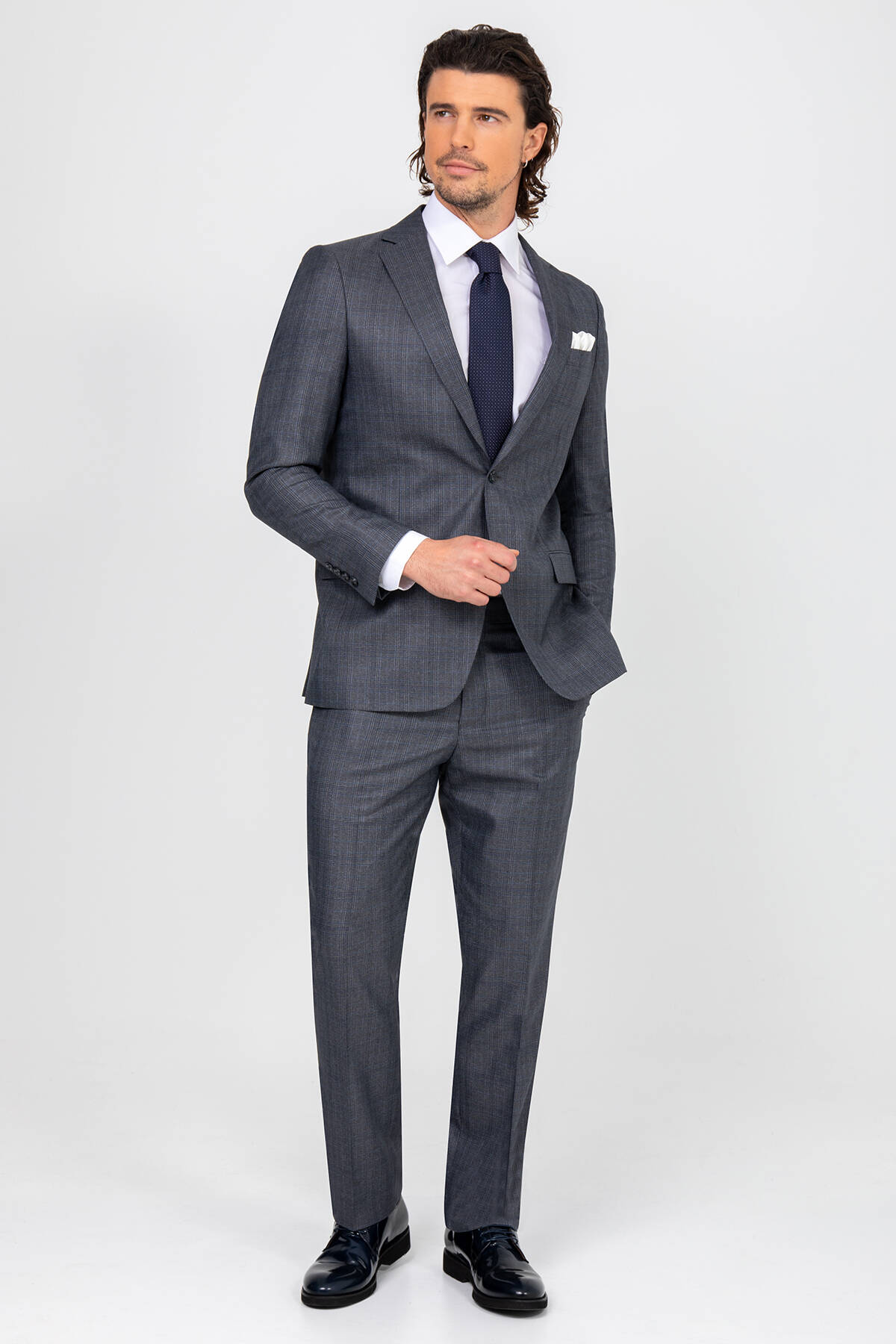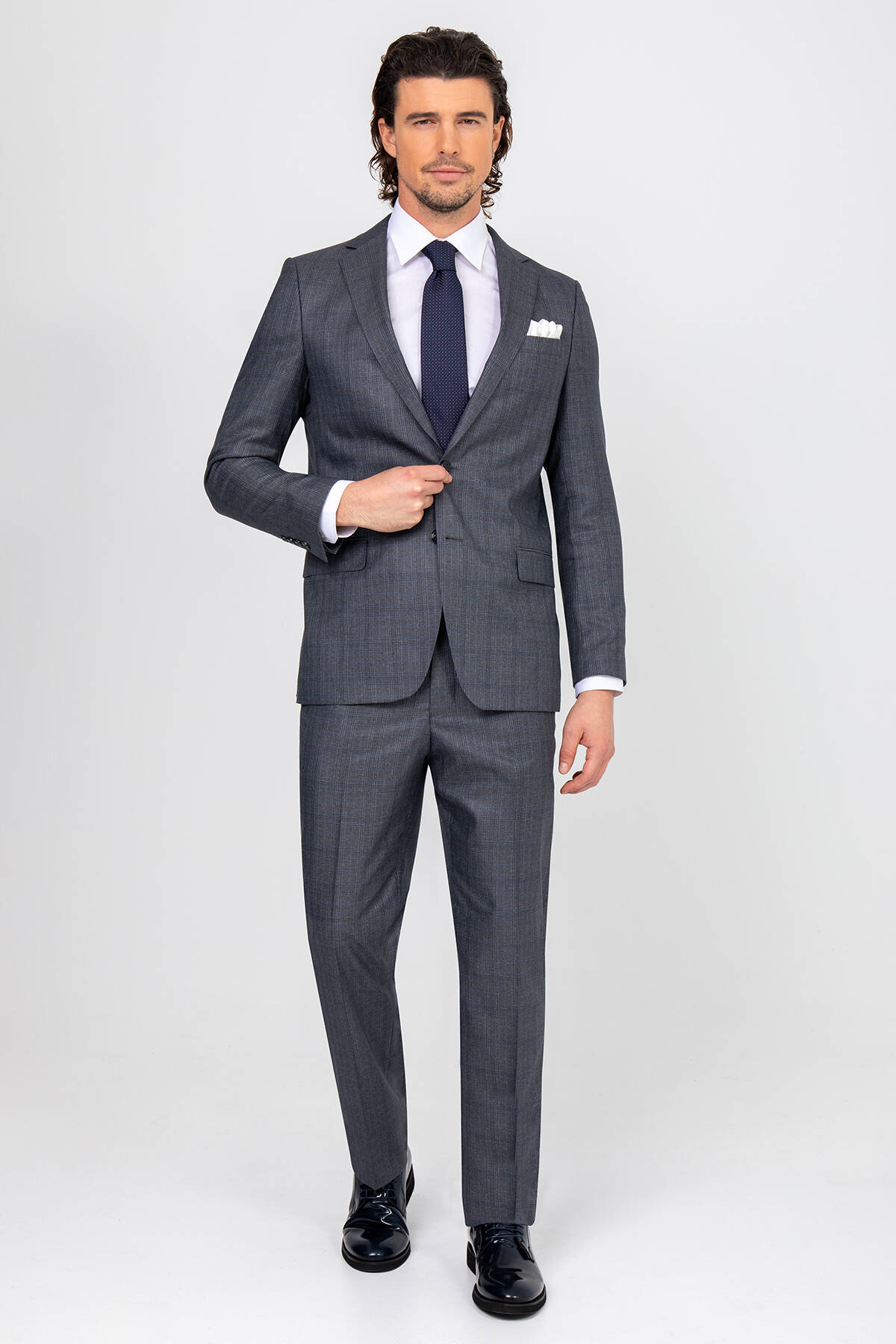 Erkek Mavi Gri Regular Fit Takım Elbise