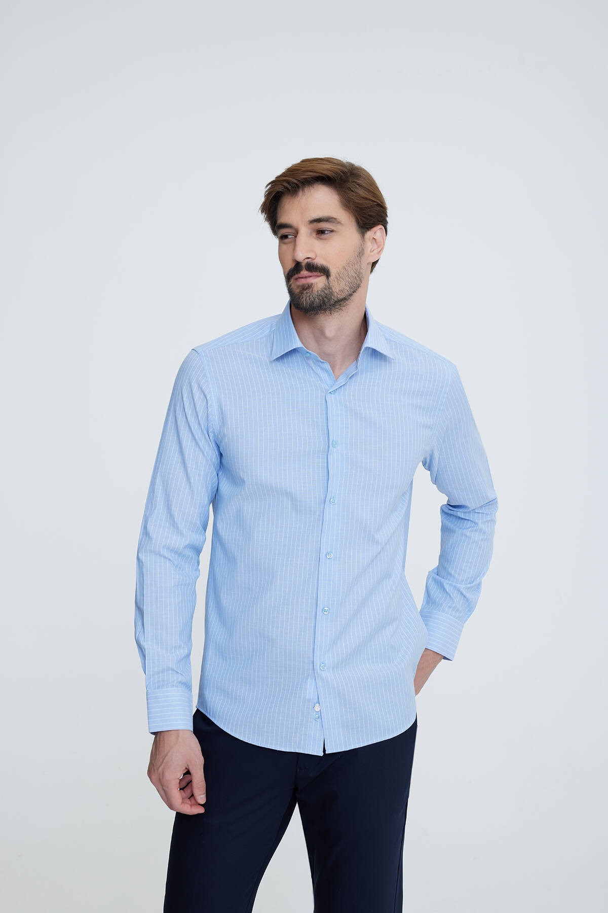 Gelince Haber VerYSF Giyim’in yetenekli zanaatkârlarının elinden çıkan Erkek Mavi Klasik Yaka Slim Fit Uzun Kol Gömlek bu sezonun gözdesi. Saf pamuktan tasarlanan erkek slim fit gömlek zengin ve elegant stile temel oluşturan çizgisi ile öne çıkar. %100 pamuk kumaşın incelikli tuşesi gardırobuna nadide ve kaliteli parçalar eklemek isteyen erkeklerin tercihidir. Klasik yaka ve manşetleri gömleğin hem kalitesine hem de klasik kesimine güvenebileceğiniz anlamına gelir. Slim fit kalıp ise modern ve stil sahibi erkeklerin çağdaş bir silüetle boy göstermelerini sağlar. Kaliteden asla taviz vermeden çekiciliği yükselten mavi uzun kol gömlek en sevdiğiniz pantolon ve ayakkabılarla şıklığınızı artırabilir.