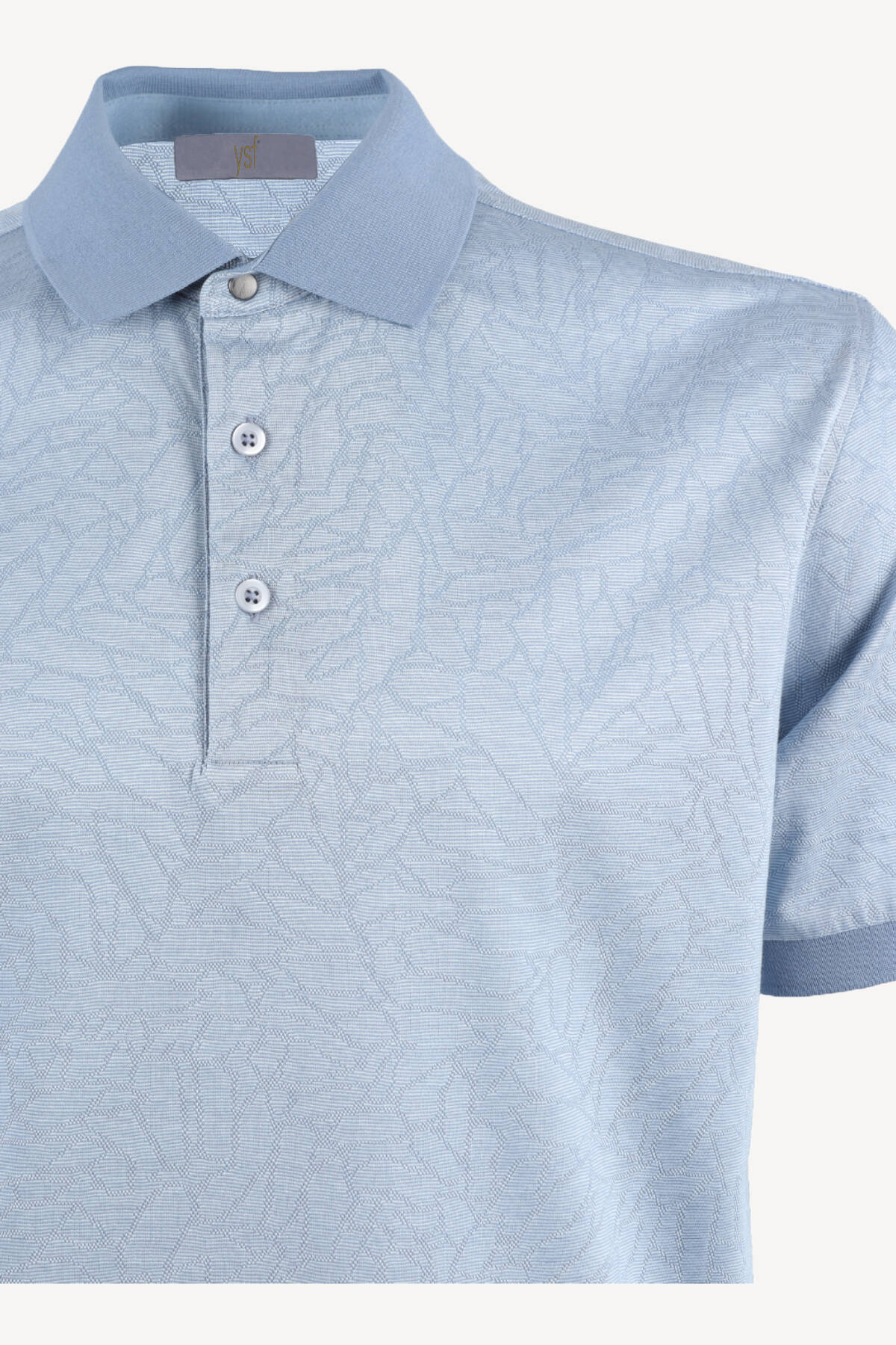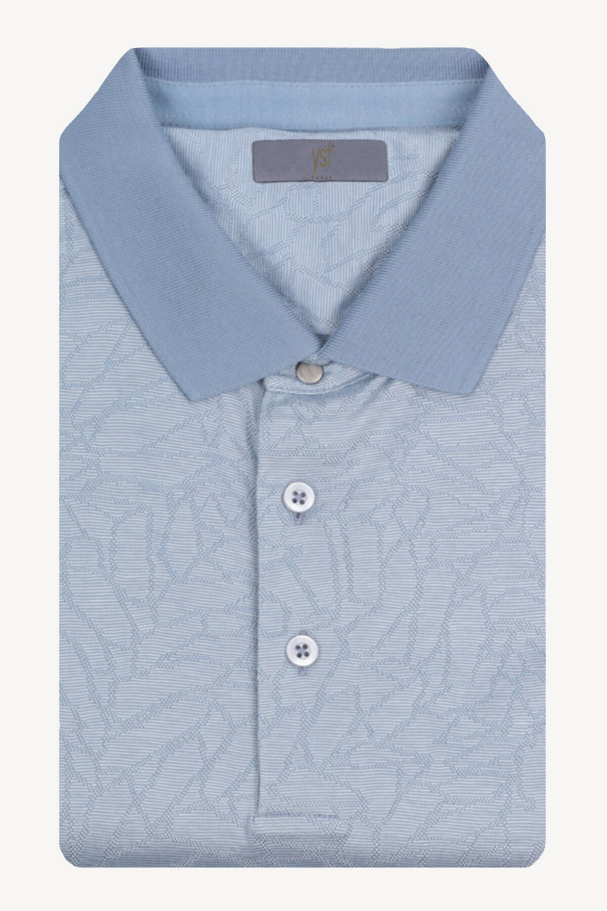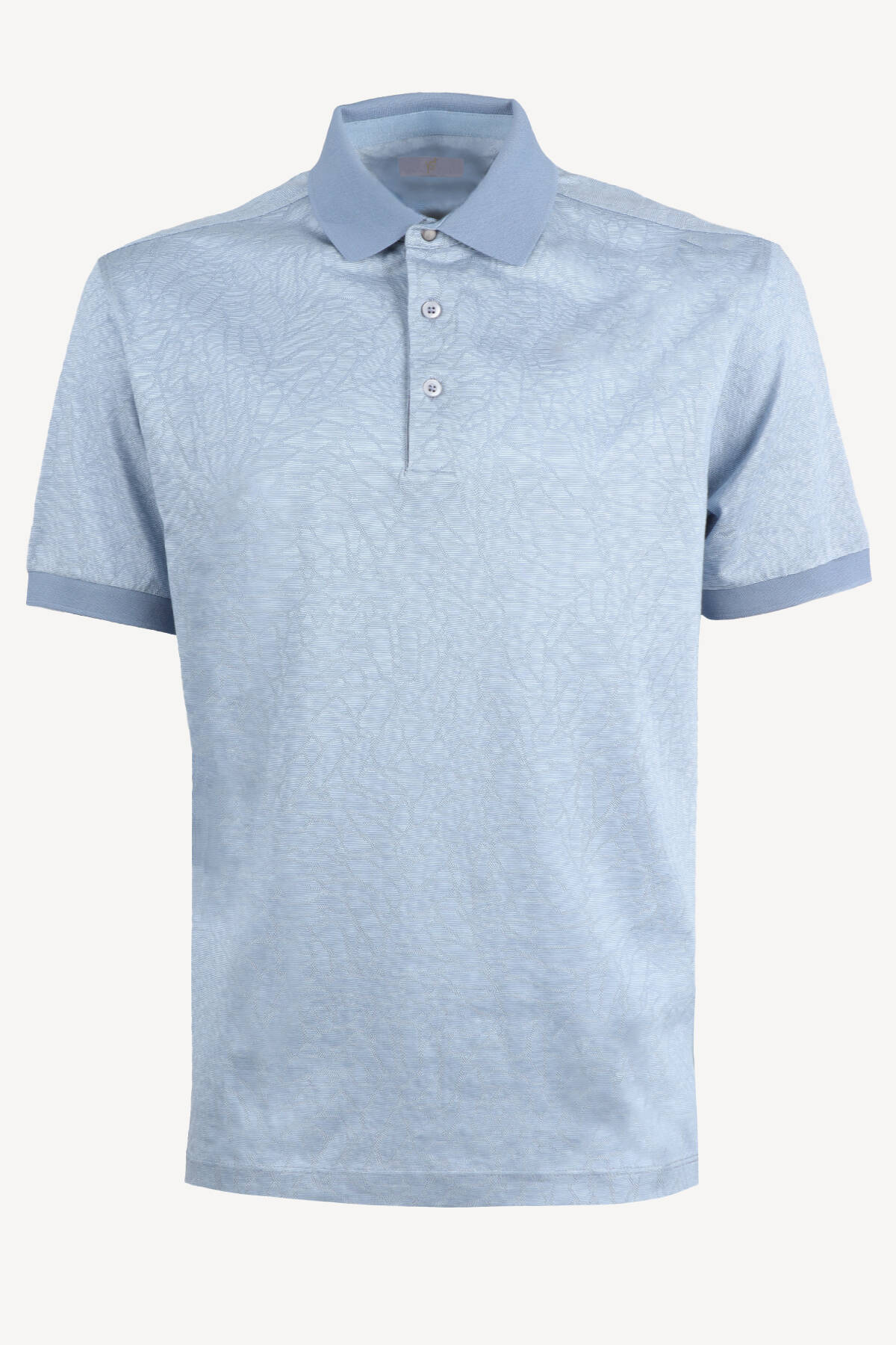 Erkek Mavi Polo Yaka Desenli Klasik Cotton Tshirt