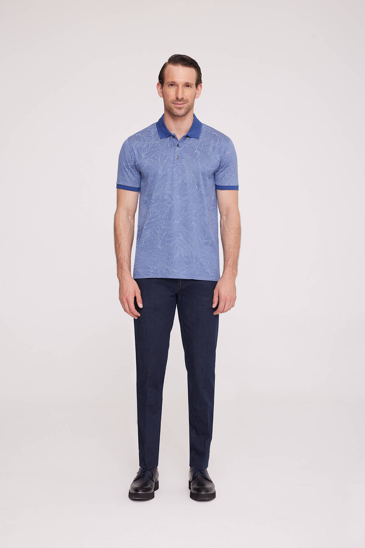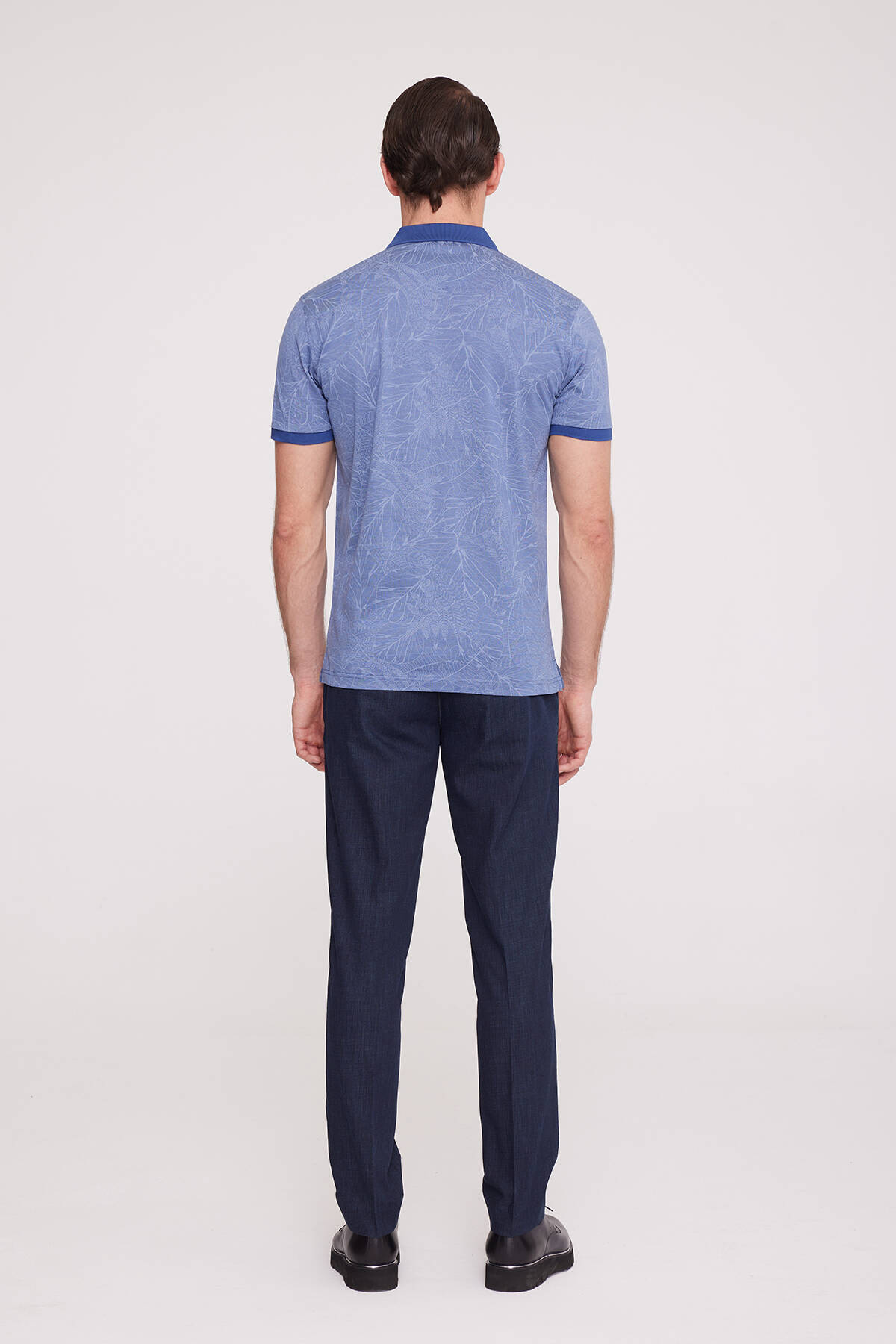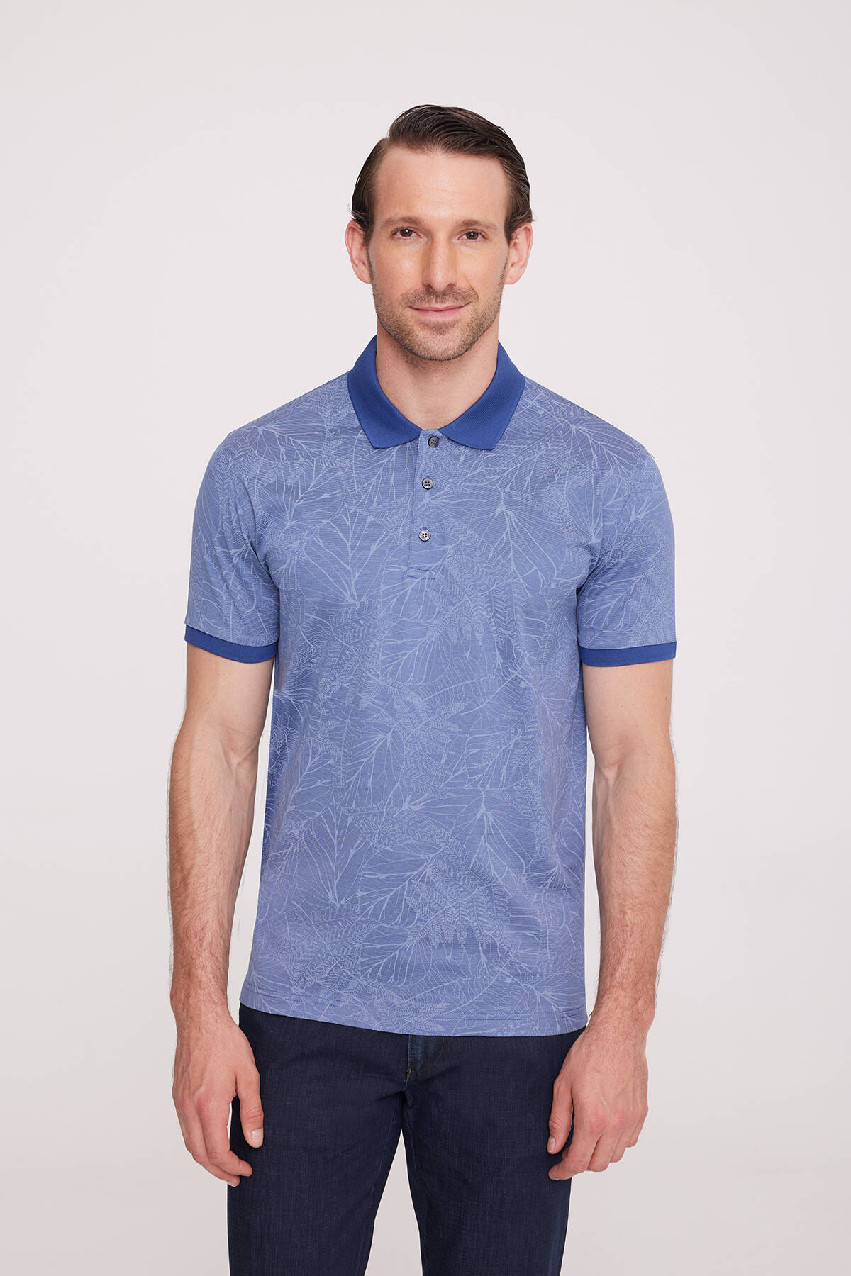 Erkek Mavi Polo Yaka Desenli T-Shirt