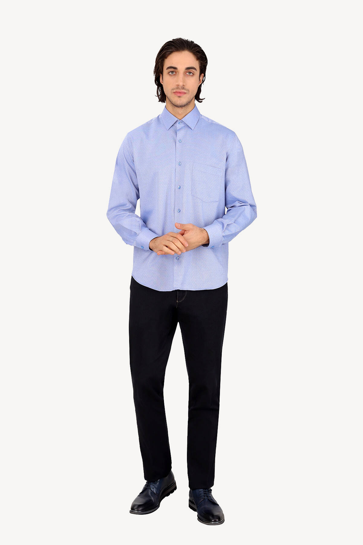 Erkek Mavi Uzun Kol Klasik Desenli Cotton Gömlek