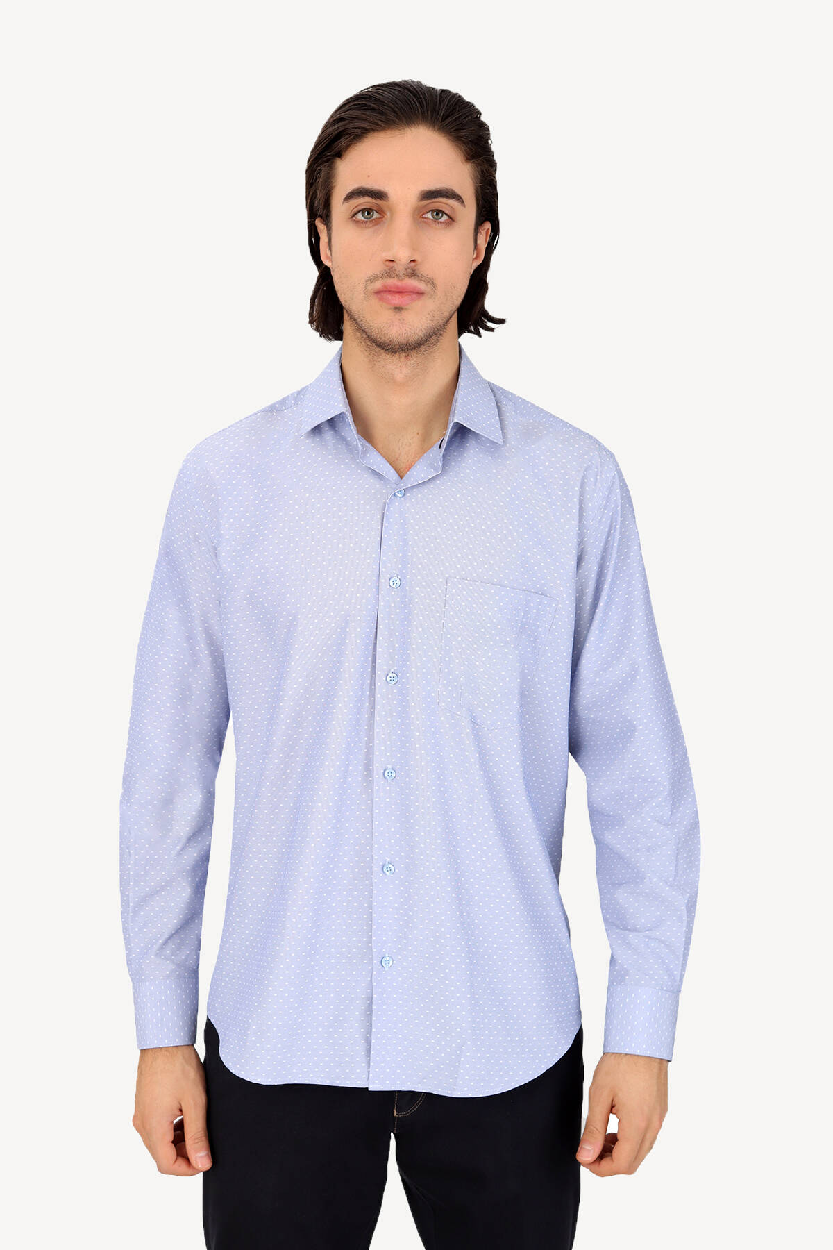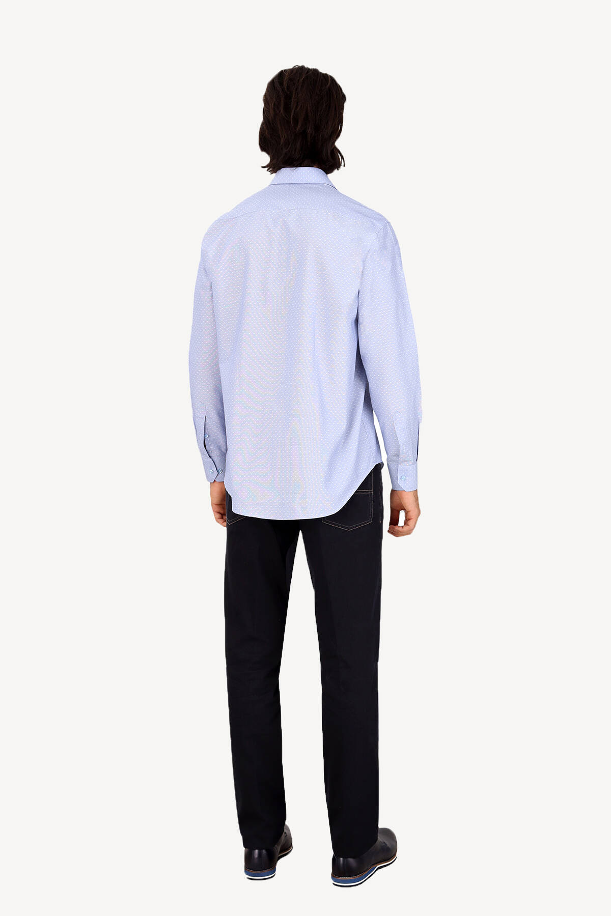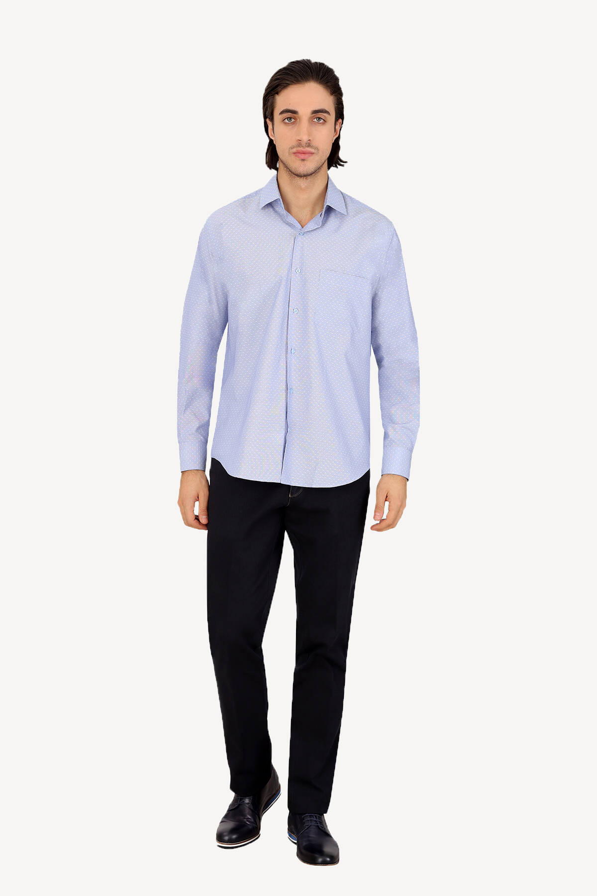 Erkek Mavi Uzun Kol Klasik Desenli Gömlek