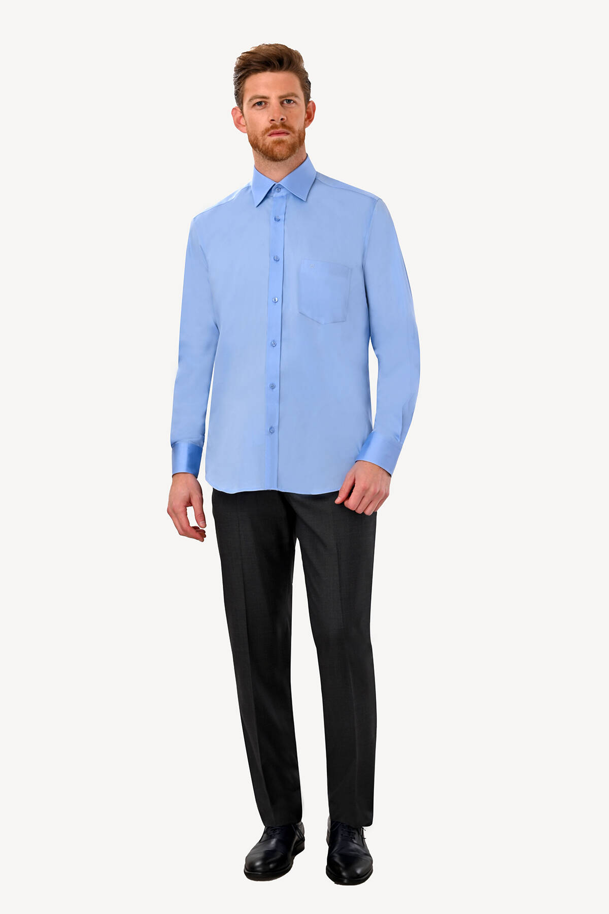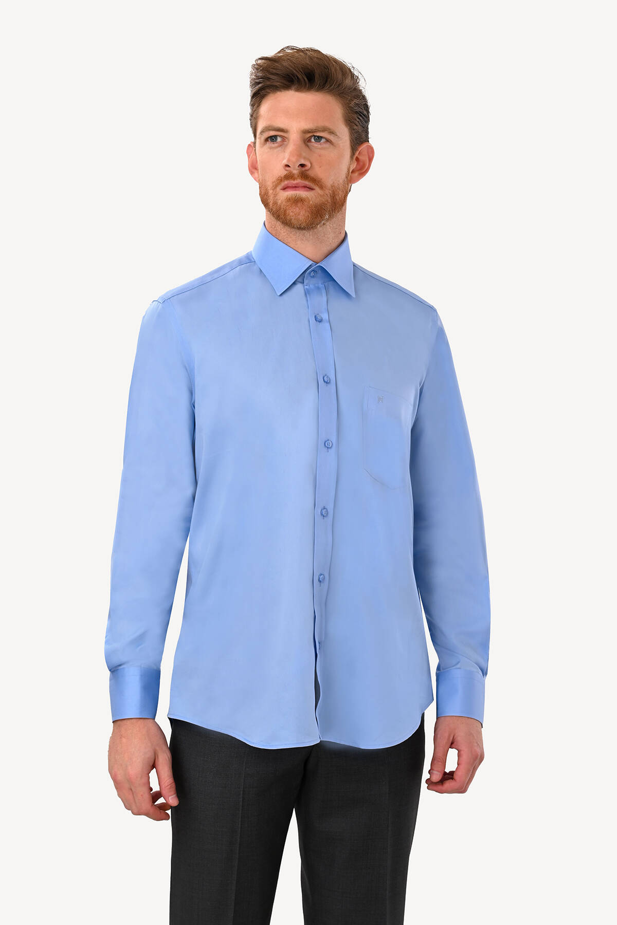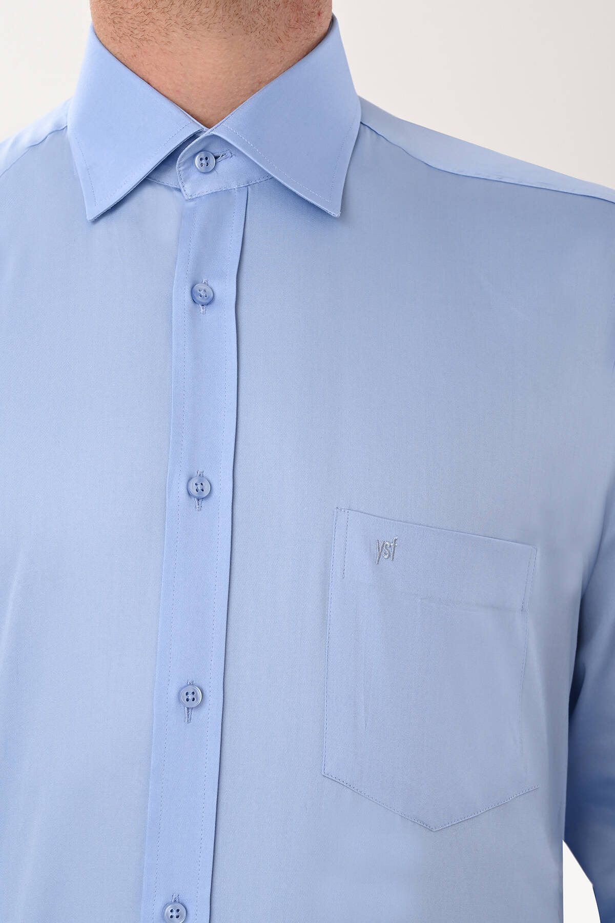 Erkek Mavi Uzun Kol Klasik Saten Gömlek