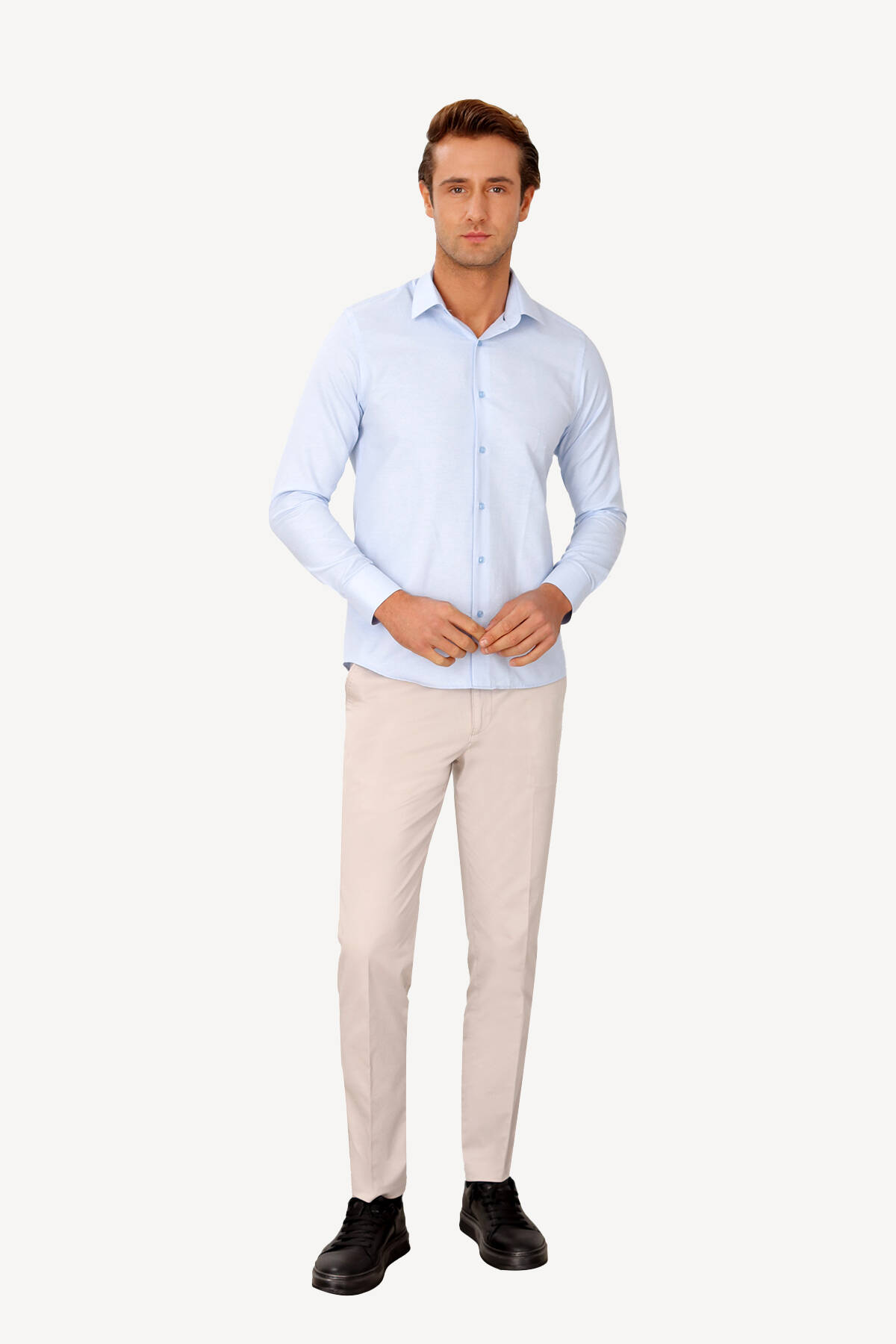 Erkek Mavi Uzun Kol Puantiyeli Slim Fit Gömlek