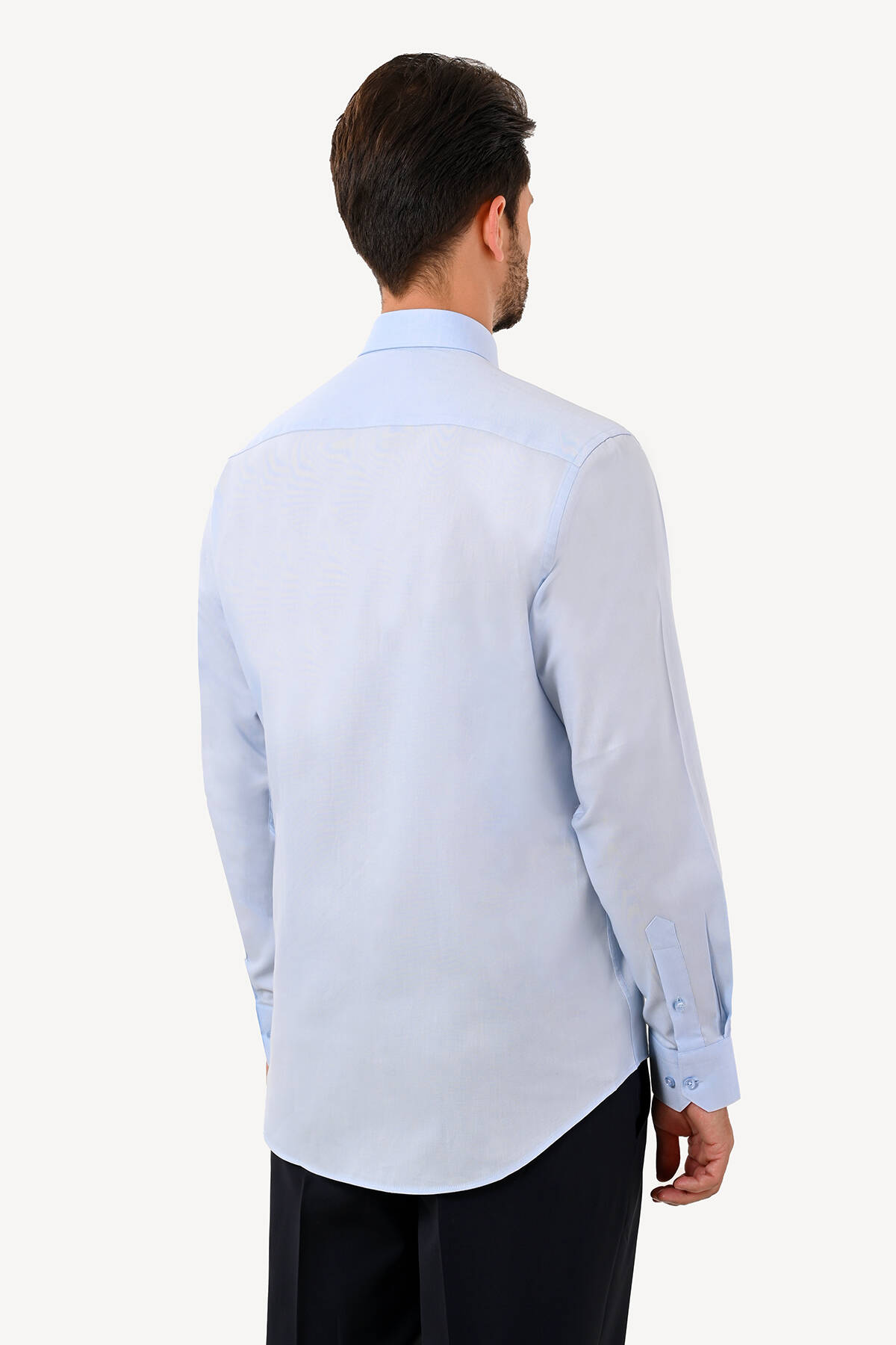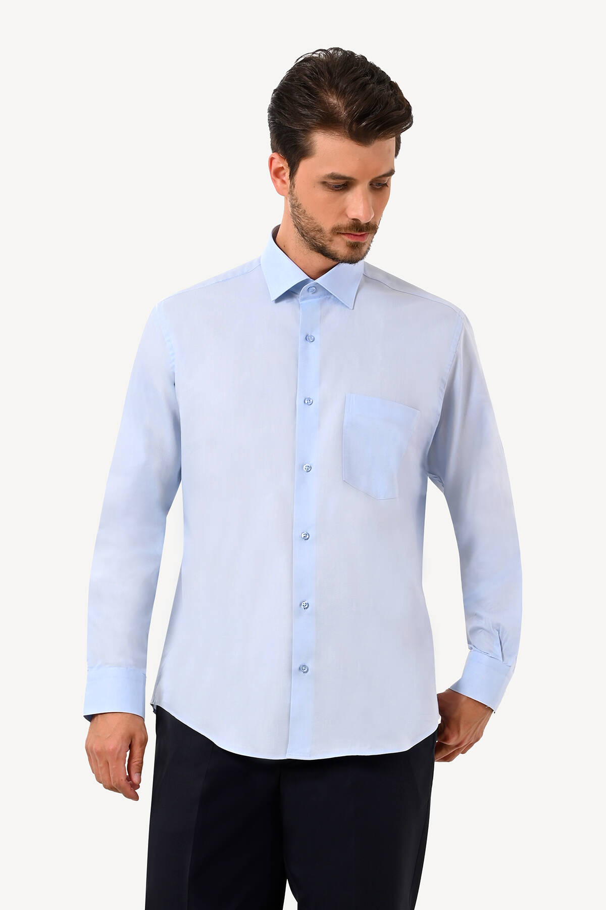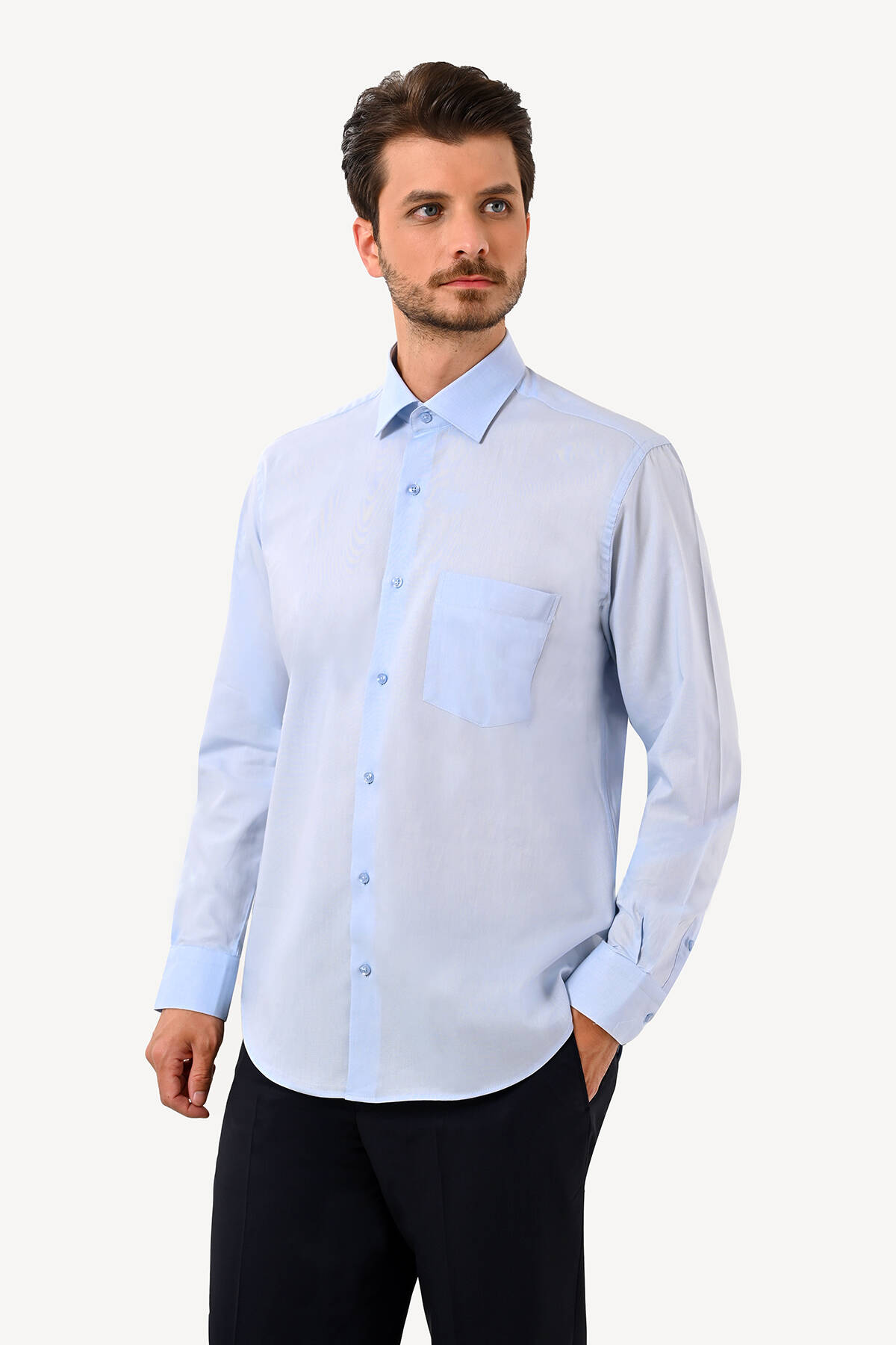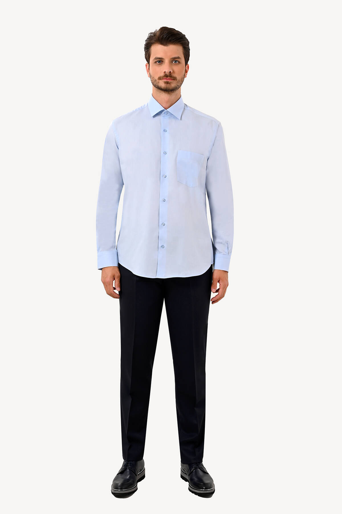 Erkek Mavi Uzun Kol Regular Fit Cepli Gömlek