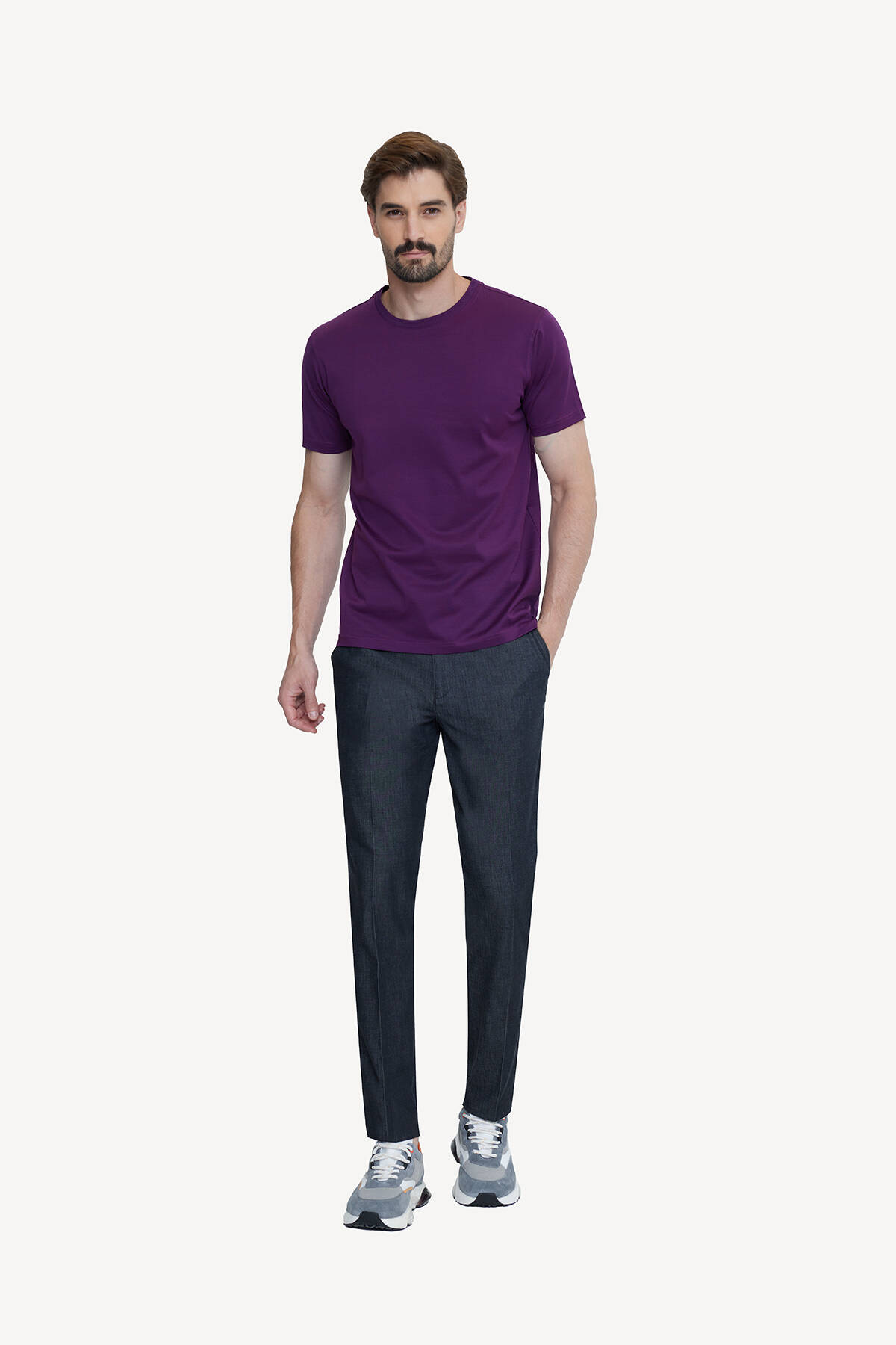 Erkek Mor Bisiklet Yaka Pamuklu T-shirt