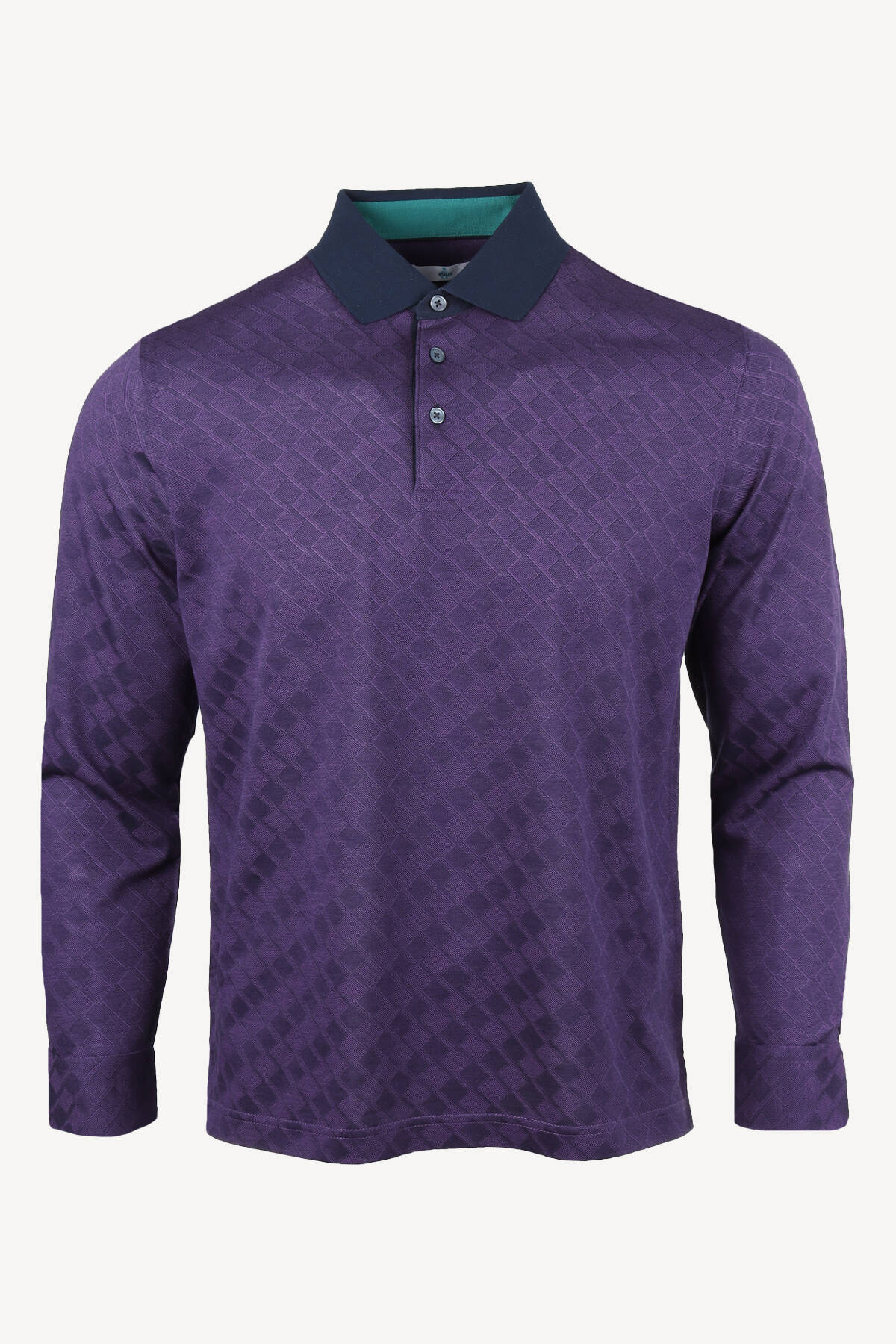 Erkek Mor Klasik Desenli Polo Yaka Sweatshirt