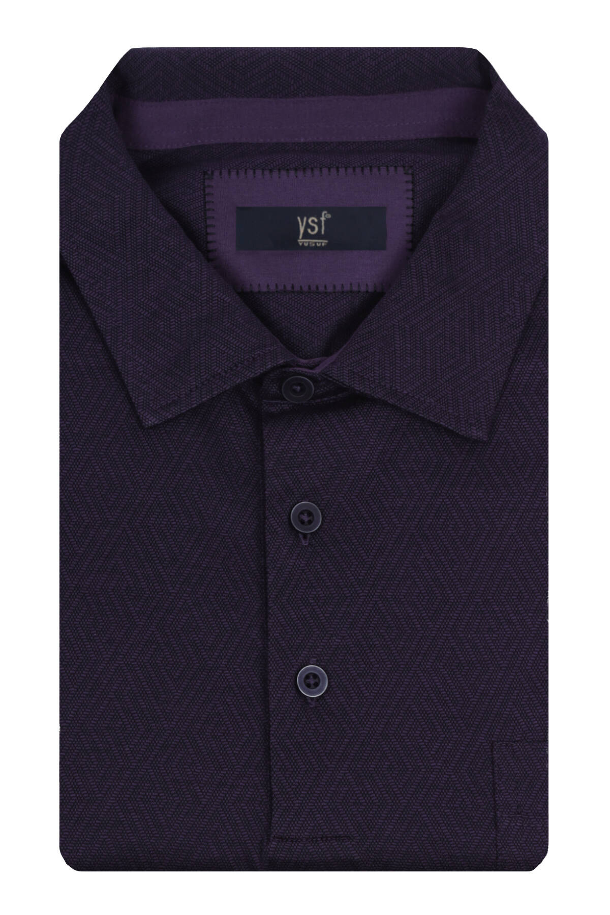 Erkek Mor Polo Yaka Desenli Regular Fit Tshirt