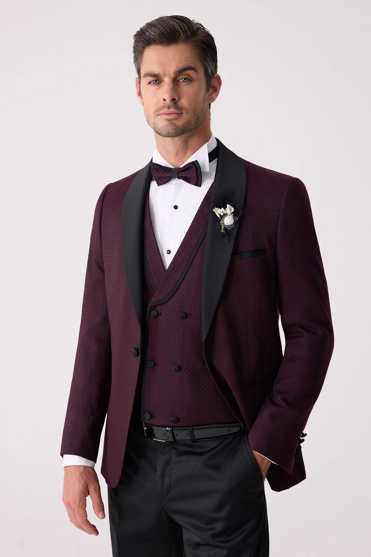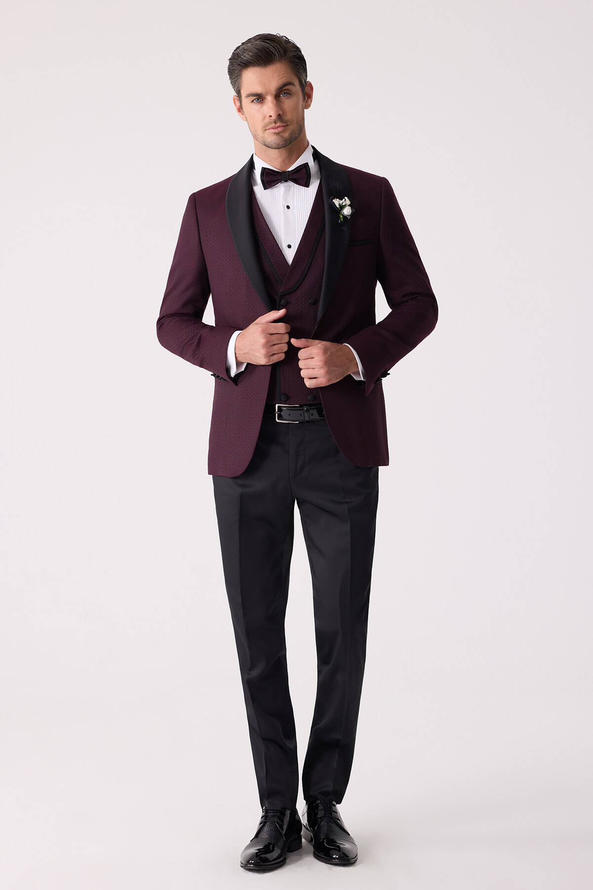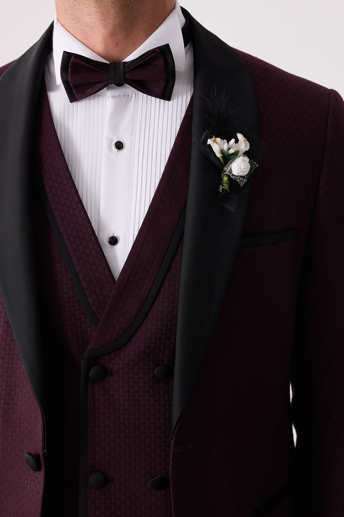 Klasik giyime çağdaş esintiler katan yelekli damatlık, çıkma şal yaka gibi hassas ayrıntıları sayesinde keskin gömlekleri en iyi şekilde tamamlar ve papyon görünümünü güçlendirir. Ata Yaka Gömlek gibi zarafeti tarihsel olarak kanıtlanmış parçalar damatlığın daha yüksek bir moda ifadesi oluşturmasını sağlayacaktır. Şık bir kış düğünü için mürdüm rengi takım elbiseyi; Ata Yaka Gömlek, deri kemer ve Oxford rugan ayakkabı modelleri ile tamamlayabilirsiniz. Aşkı ve sevgiyi en içten şekilde stilinize yansıtmak istiyorsanız yaka çiçeği ve zincirle damatlığa son dokunuş yapabilirsiniz. Siz de online alışverişe özel ayrıcalıklar ve mağazada ücretsiz tadilat gibi seçkin deneyimlerle YSF Giyim damatlık modellerini seçebilirsiniz!