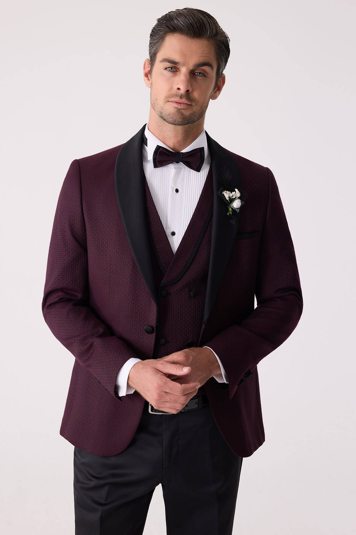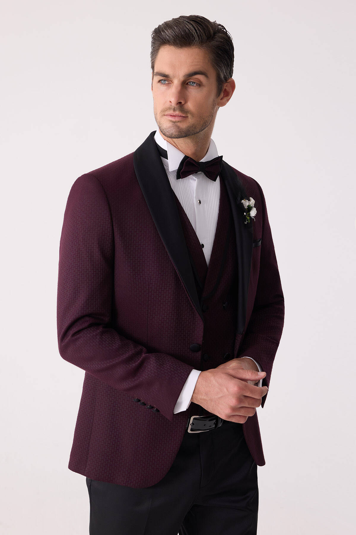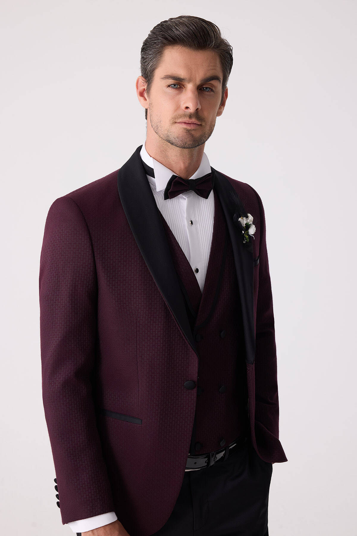 Klasik giyime çağdaş esintiler katan yelekli damatlık, çıkma şal yaka gibi hassas ayrıntıları sayesinde keskin gömlekleri en iyi şekilde tamamlar ve papyon görünümünü güçlendirir. Ata Yaka Gömlek gibi zarafeti tarihsel olarak kanıtlanmış parçalar damatlığın daha yüksek bir moda ifadesi oluşturmasını sağlayacaktır. Şık bir kış düğünü için mürdüm rengi takım elbiseyi; Ata Yaka Gömlek, deri kemer ve Oxford rugan ayakkabı modelleri ile tamamlayabilirsiniz. Aşkı ve sevgiyi en içten şekilde stilinize yansıtmak istiyorsanız yaka çiçeği ve zincirle damatlığa son dokunuş yapabilirsiniz. Siz de online alışverişe özel ayrıcalıklar ve mağazada ücretsiz tadilat gibi seçkin deneyimlerle YSF Giyim damatlık modellerini seçebilirsiniz!