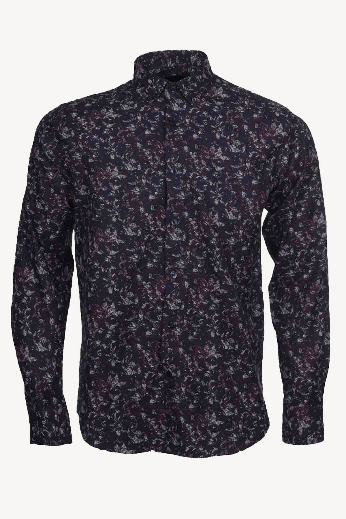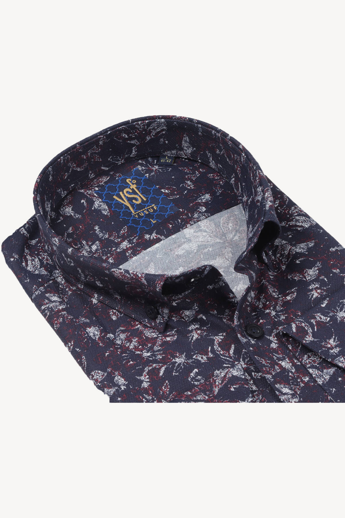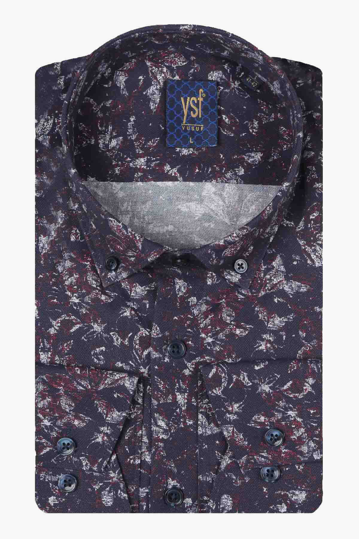 Erkek Mürdüm Desenli Slim Fit Gömlek