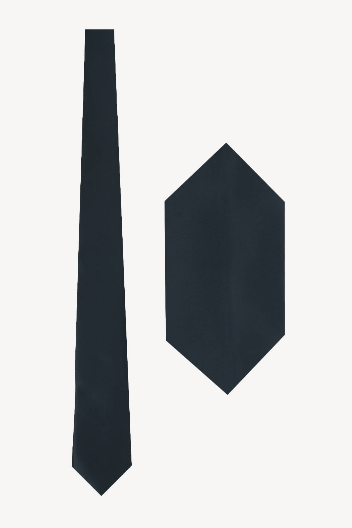 Erkek Lacivert Düz Slim Kravat Mendil Set
