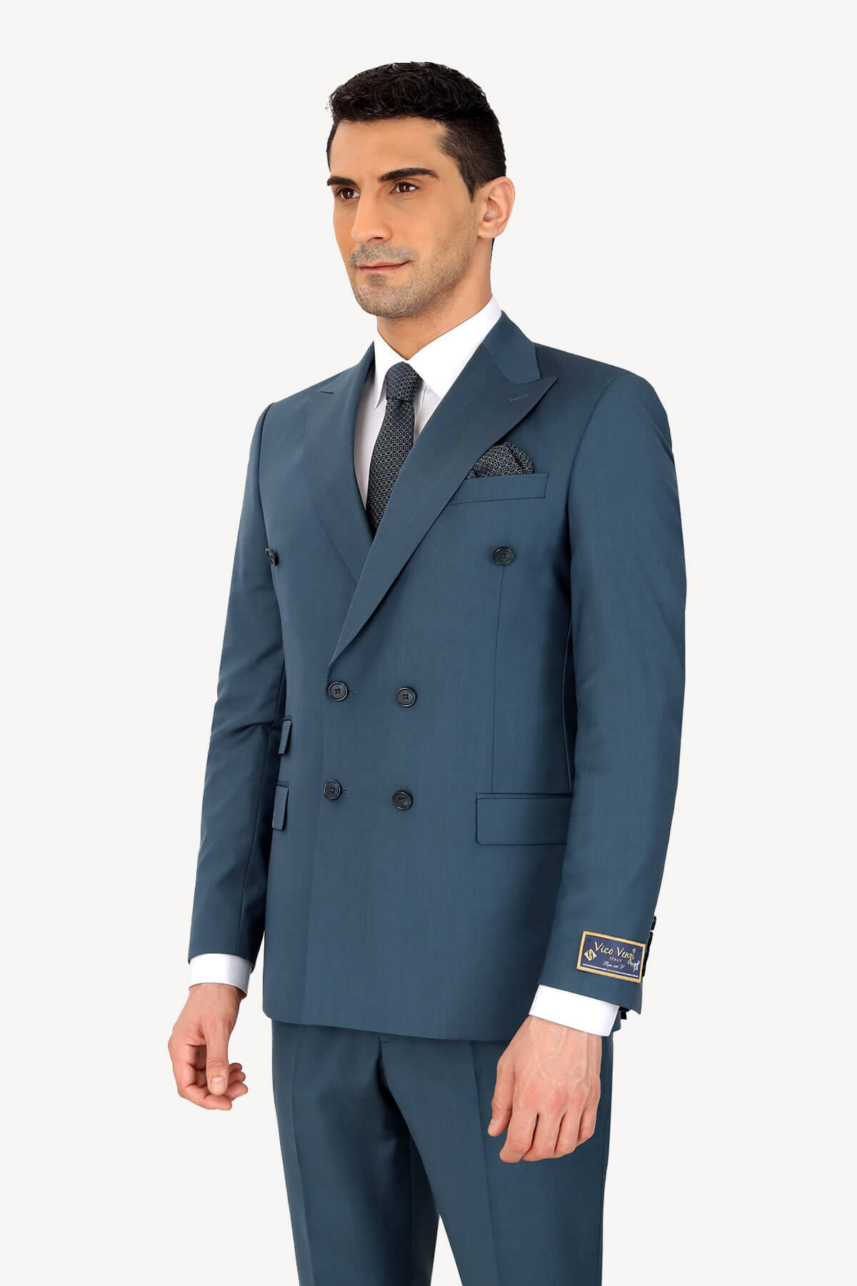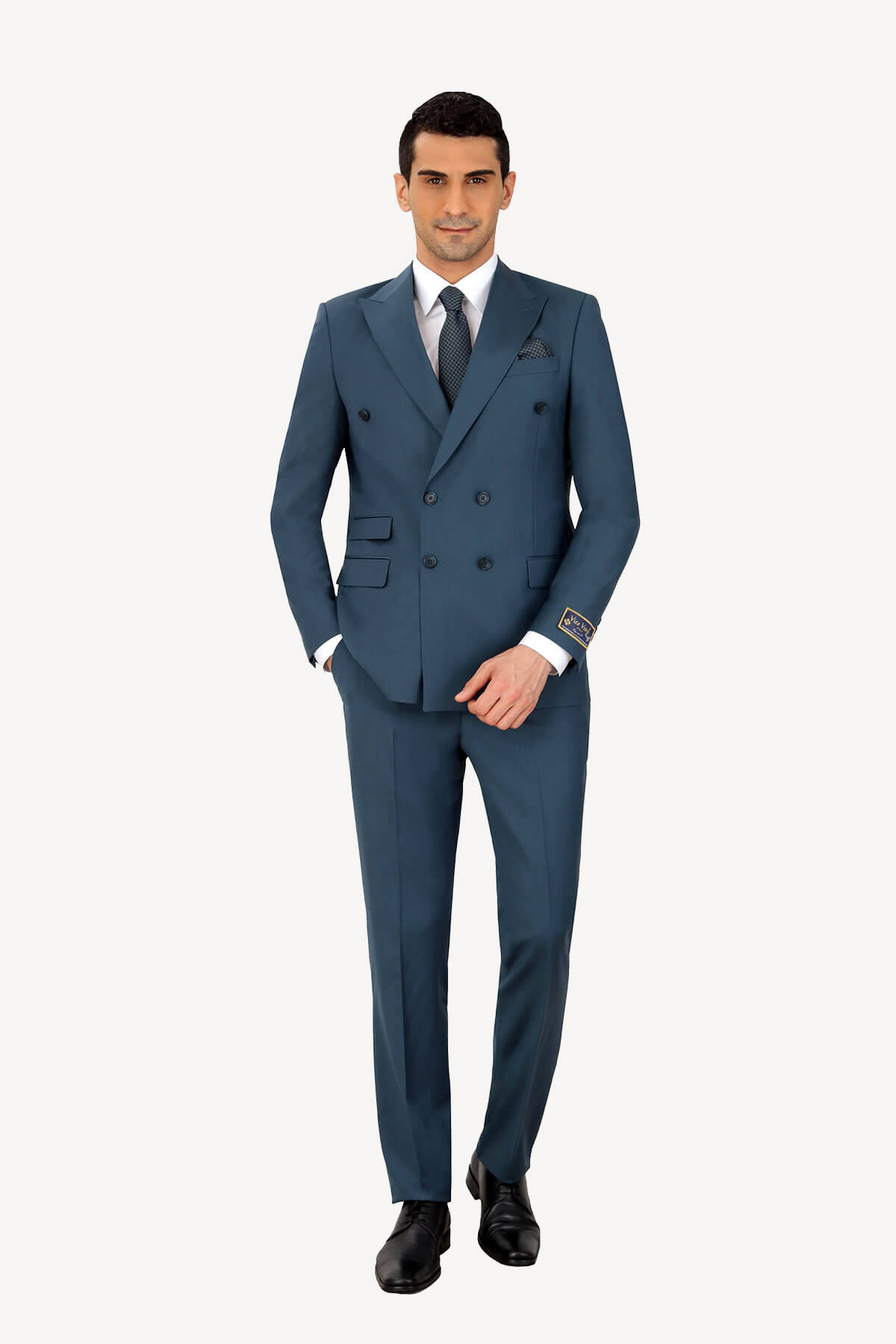 Erkek Petrol Kruvaze Regular Fit Takım Elbise