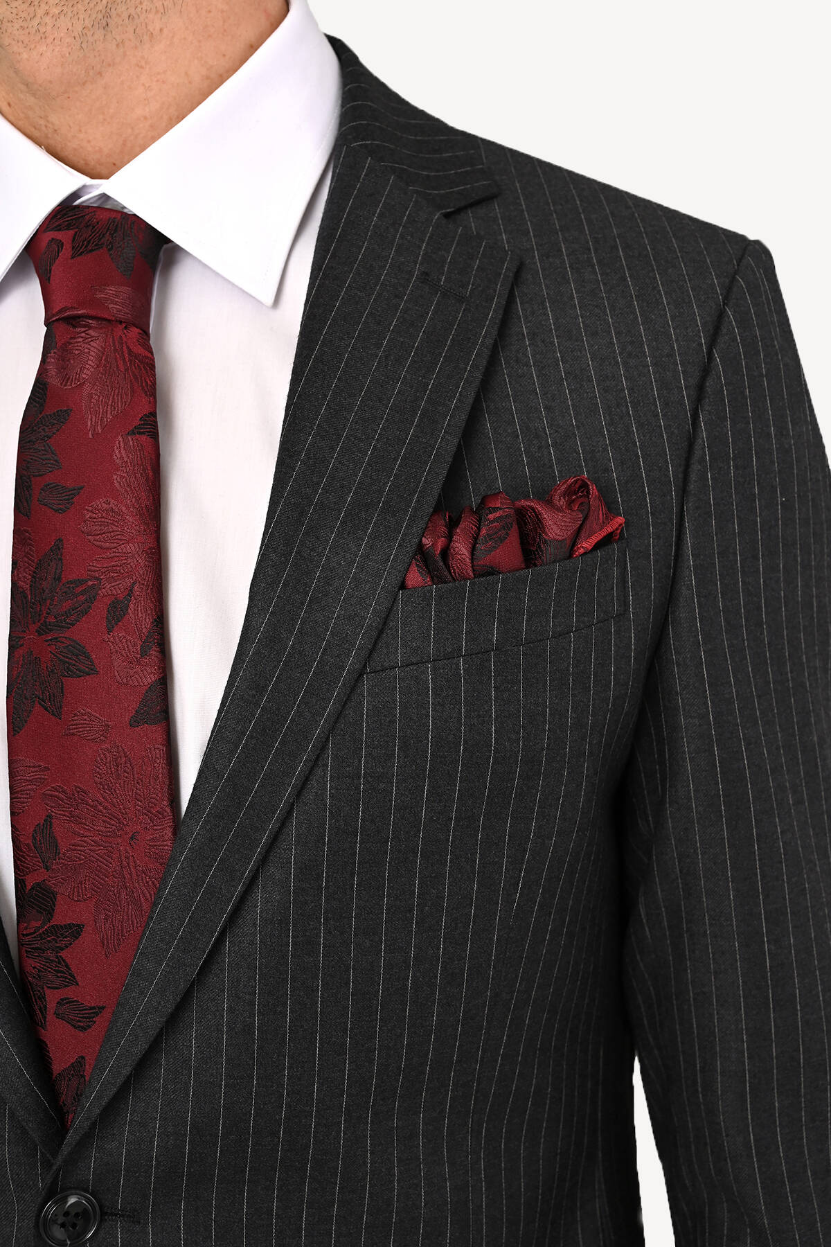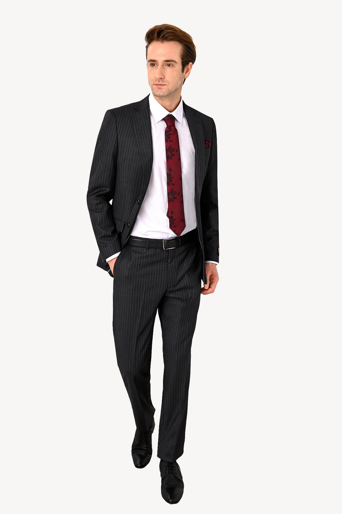 Erkek Füme Regular Fit Çizgili Takım Elbise