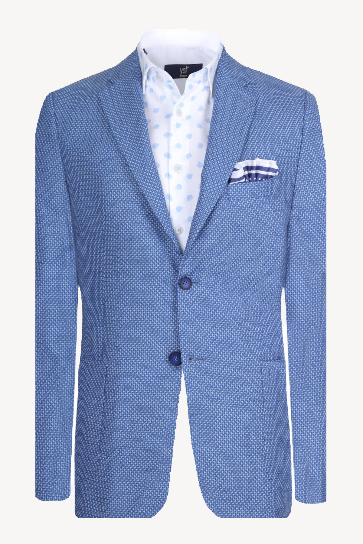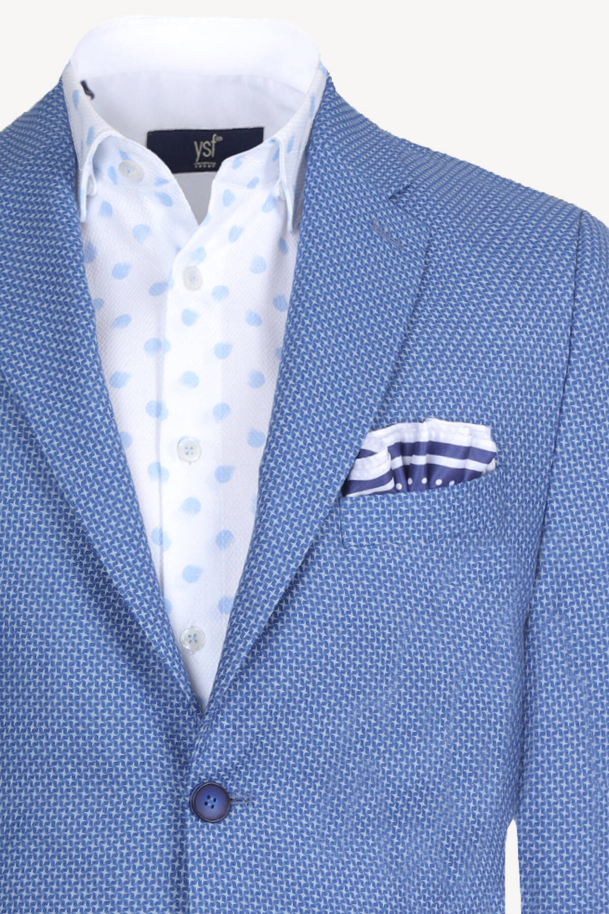 Erkek Saks Mavisi Desenli Klasik Spor Ceket