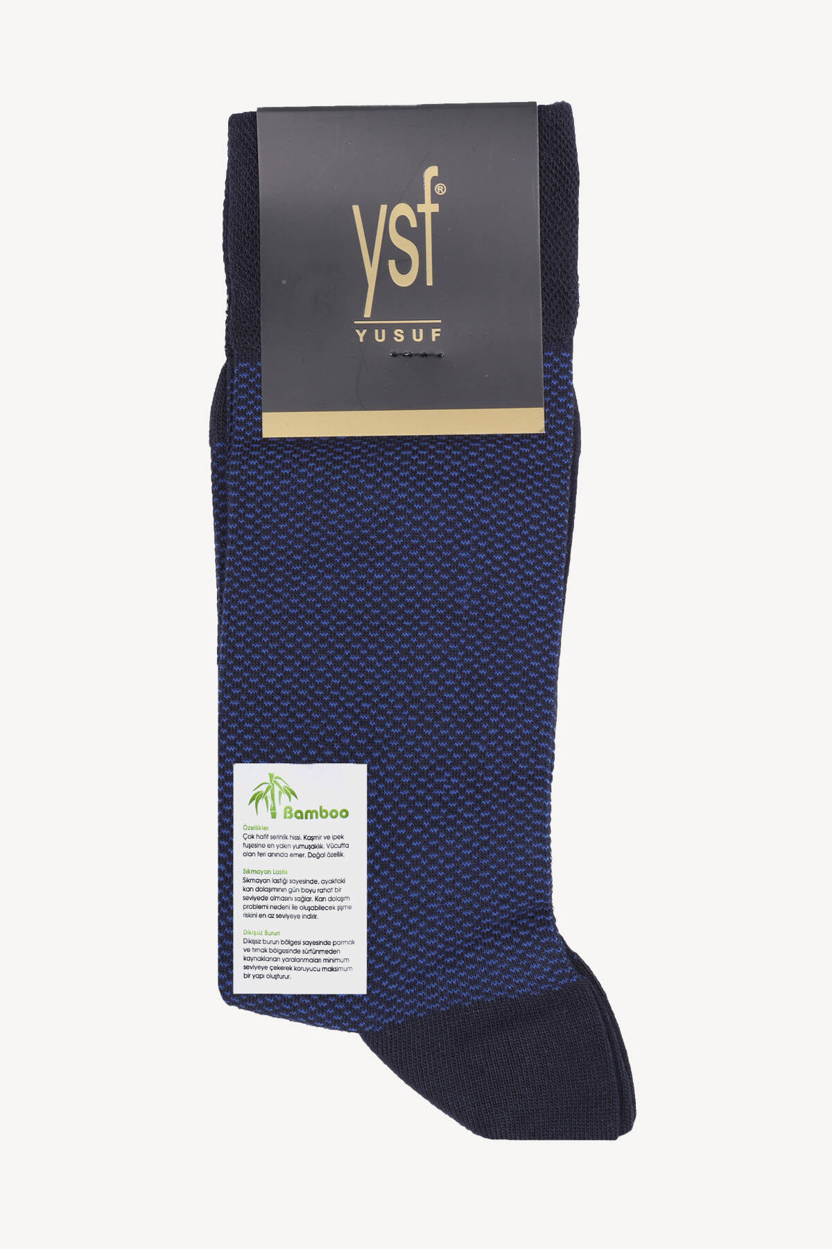 Erkek Saks Mavisi Erkek Desenli Dikişsiz Bambu Çorap