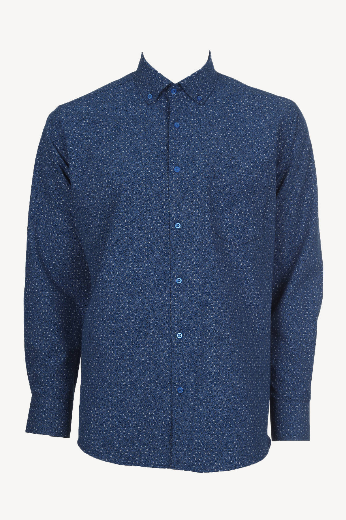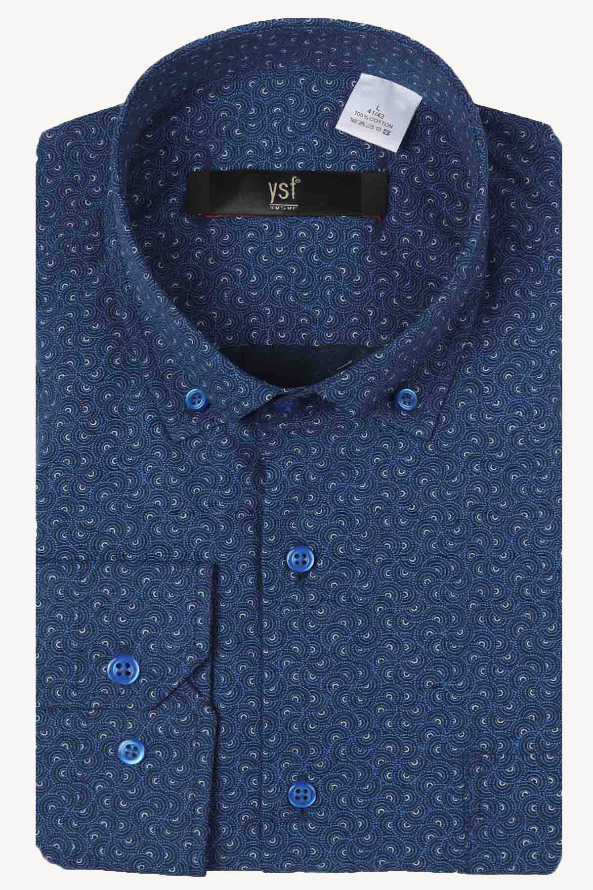 Erkek Saks Mavisi Uzun Kol Klasik Desenli Gömlek