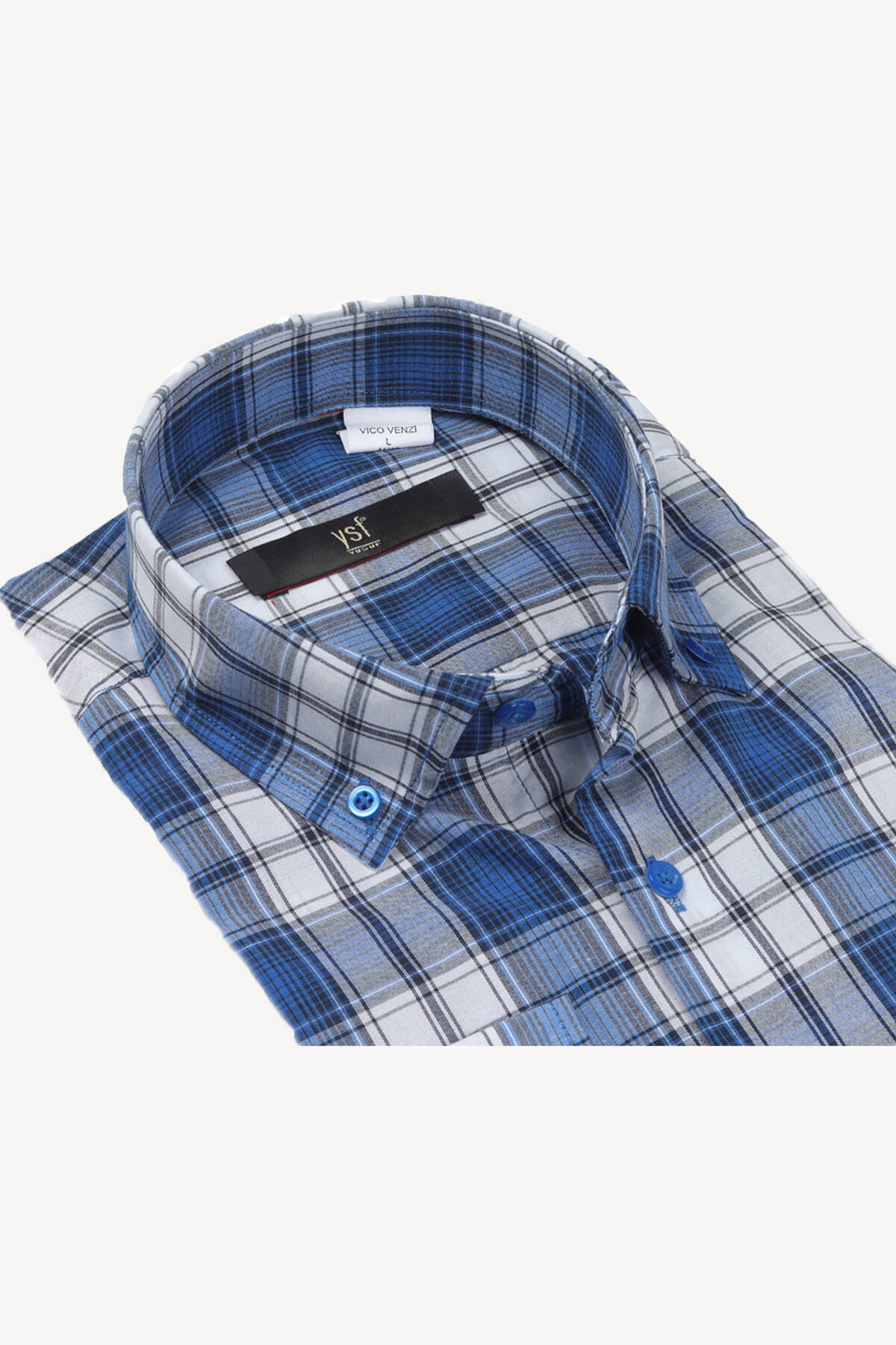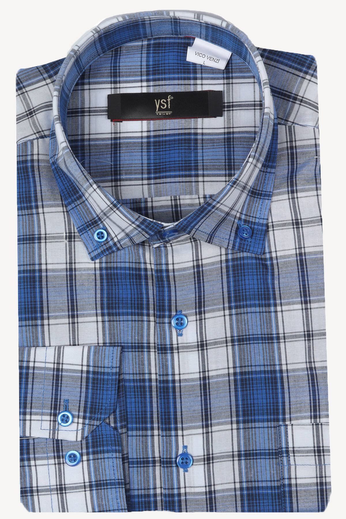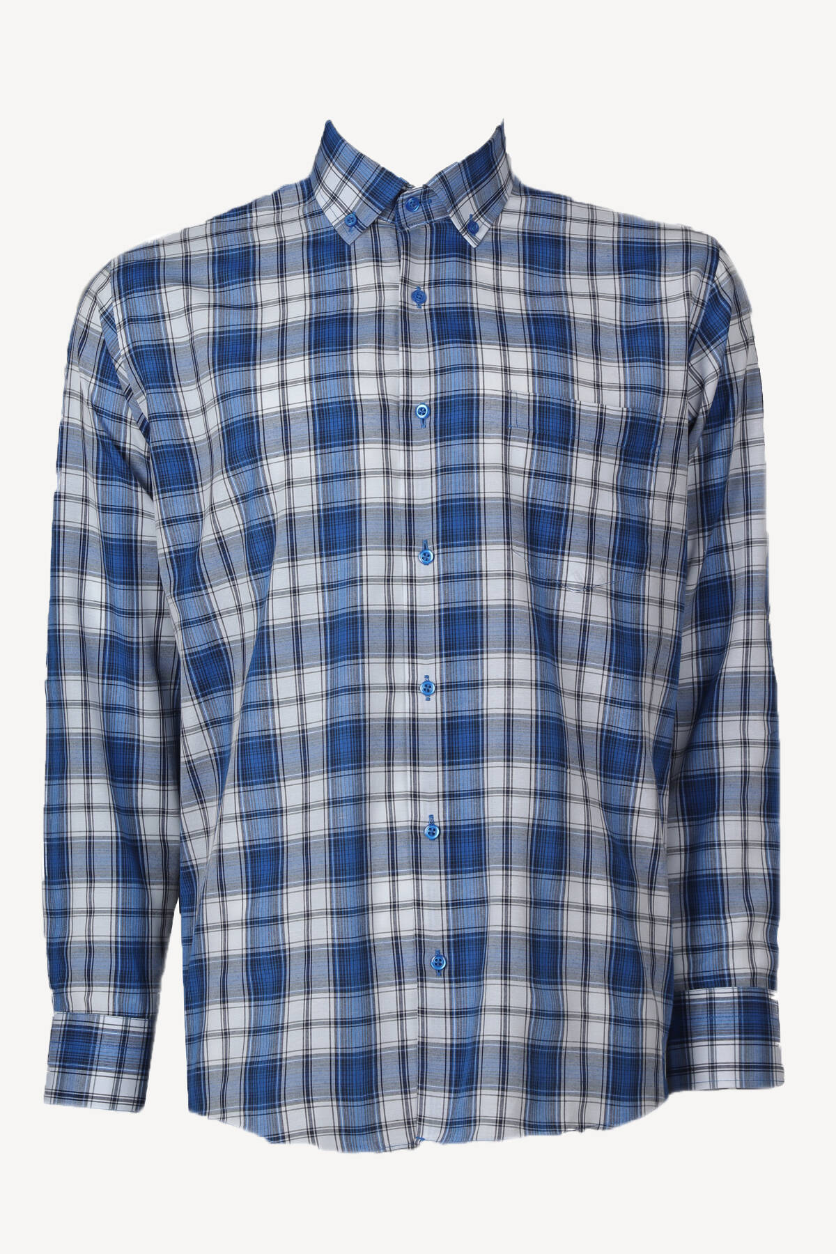 Erkek Saks Mavisi Uzun Kol Klasik Ekose Gömlek