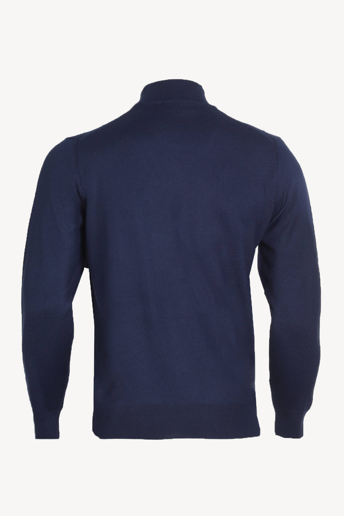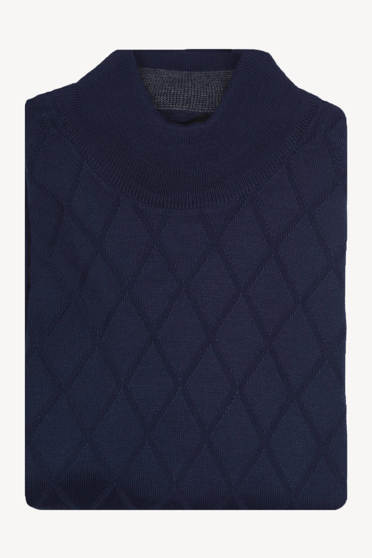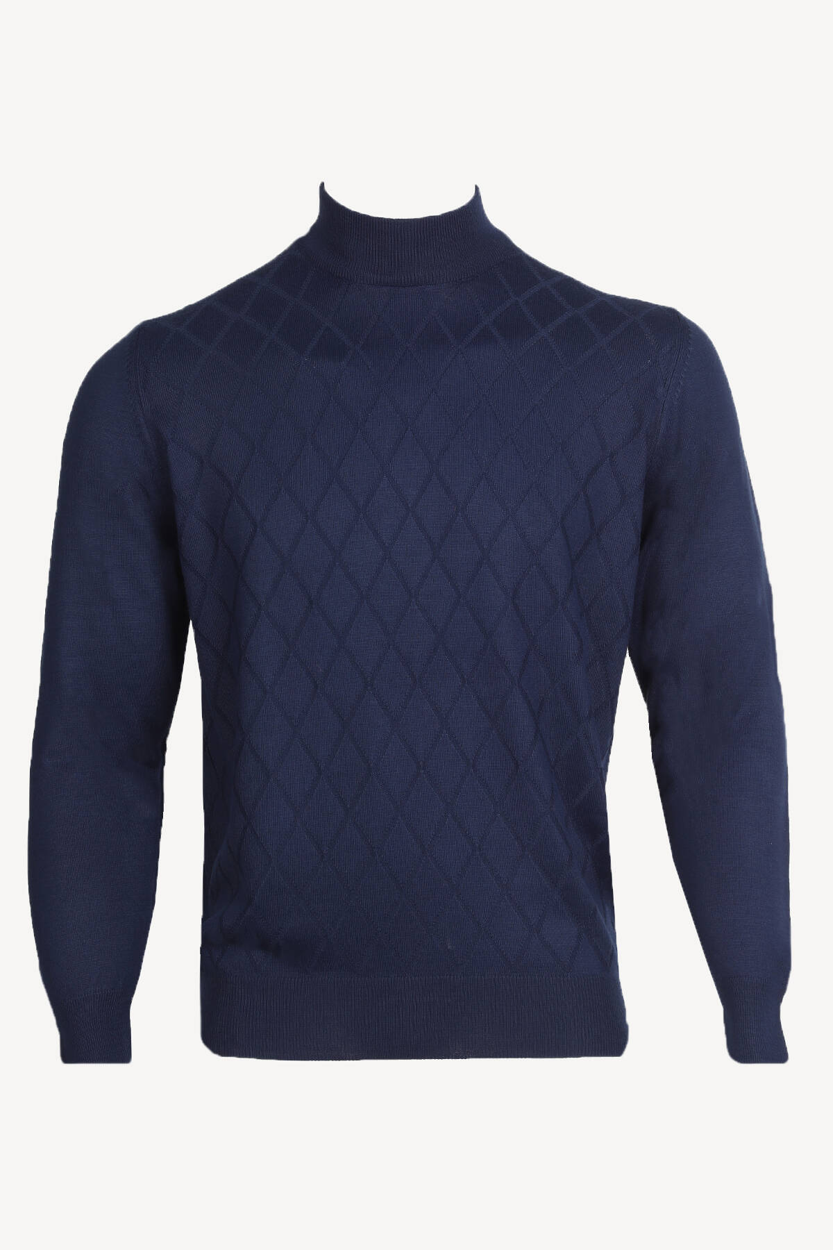 Erkek Saks Mavisi Yarım Balıkçı Yaka Klasik Desenli Triko