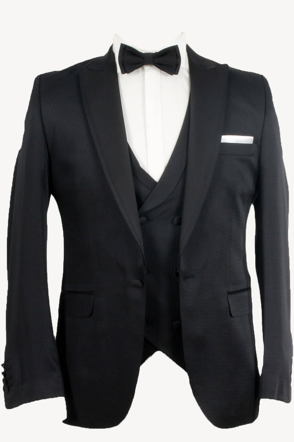 Erkek Siyah Slim Fit Kırlangıç Yaka Yelekli Damatlık