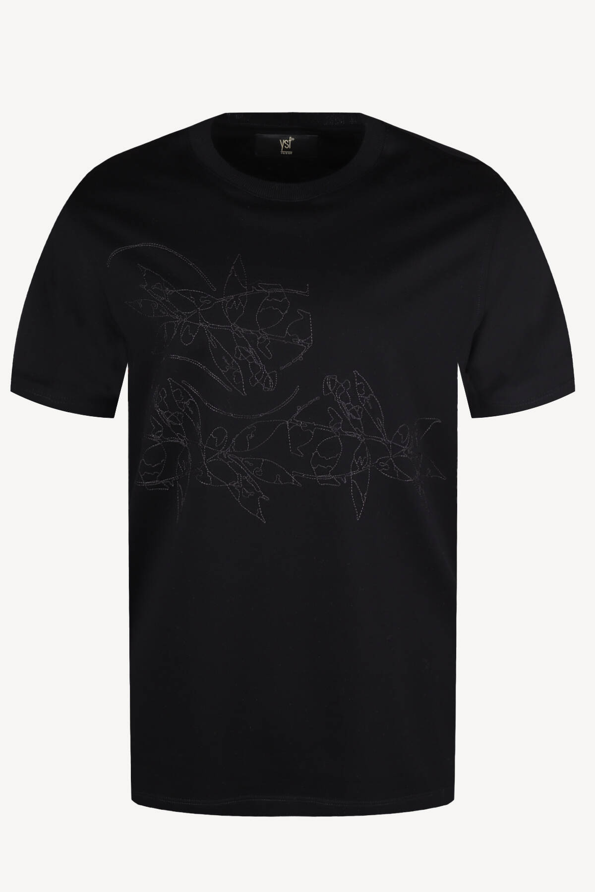 Erkek Siyah Bisiklet Yaka Desenli Regular Fit Tshirt