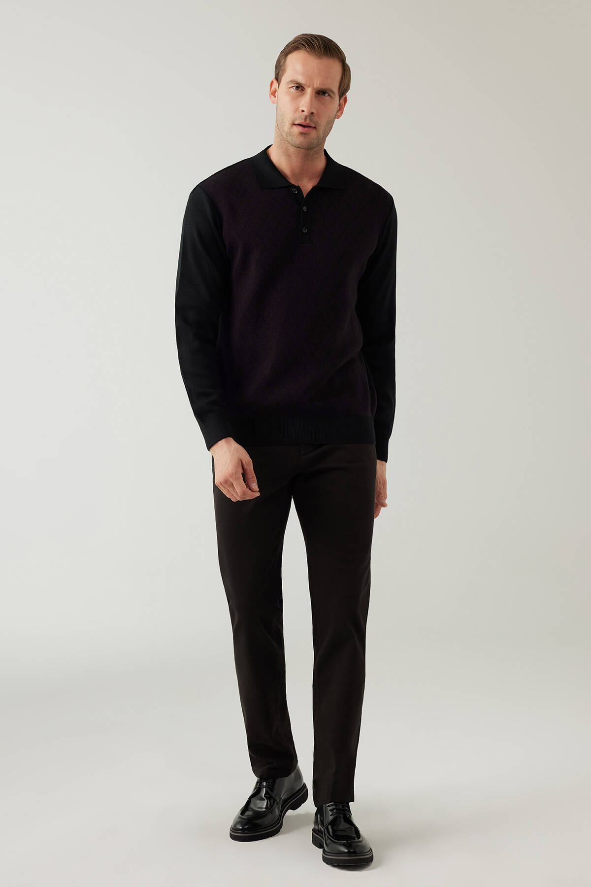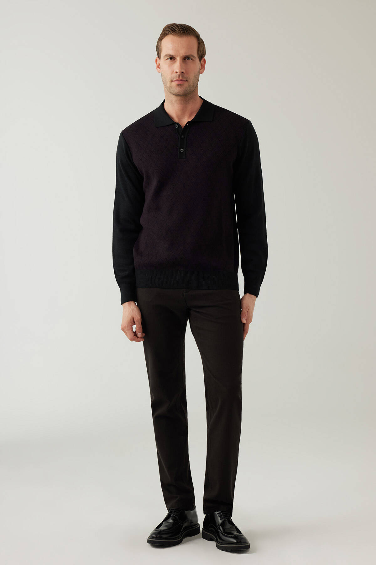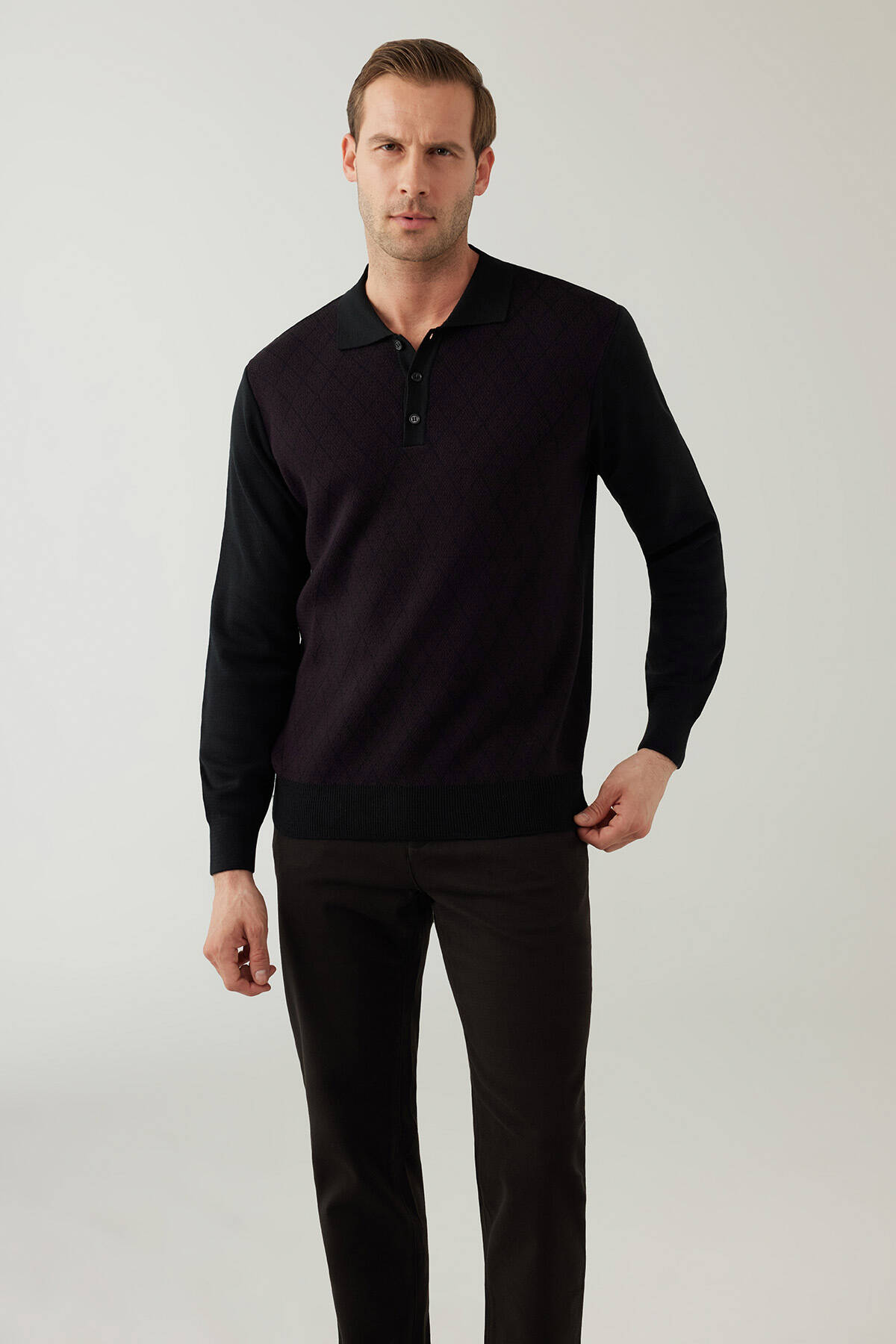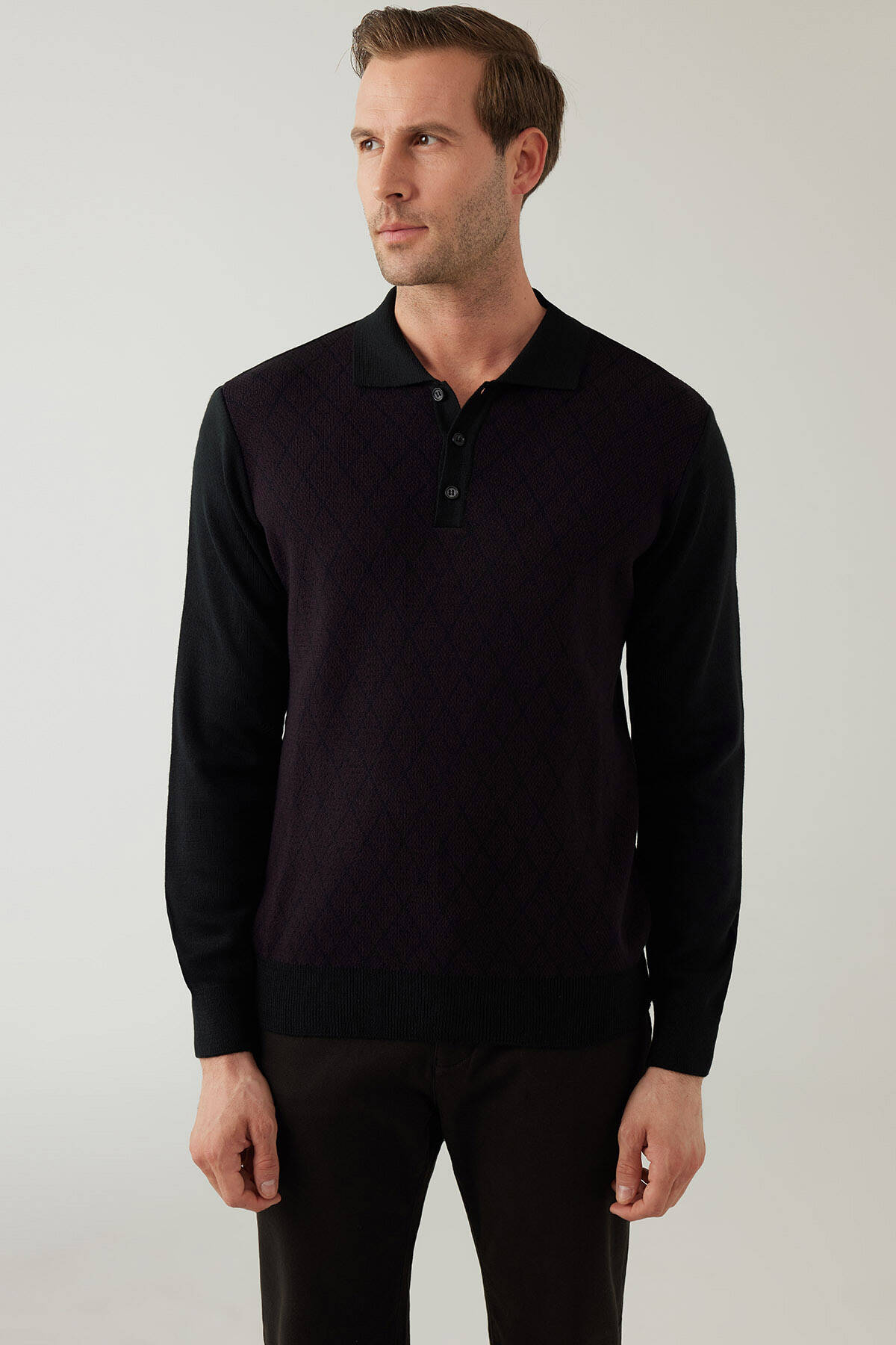 Erkek Siyah Bordo Regular Fit Yün Karışımlı Polo Yaka Triko