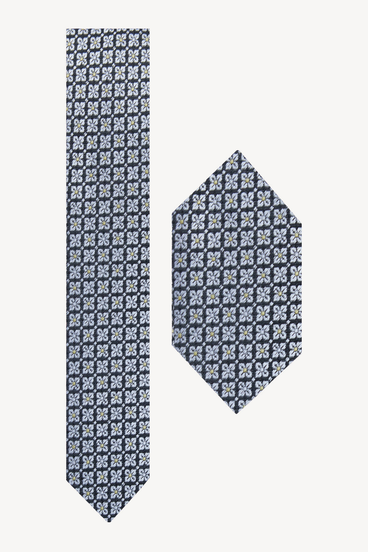 Erkek Siyah Çiçek Desenli Kravat Mendil Set