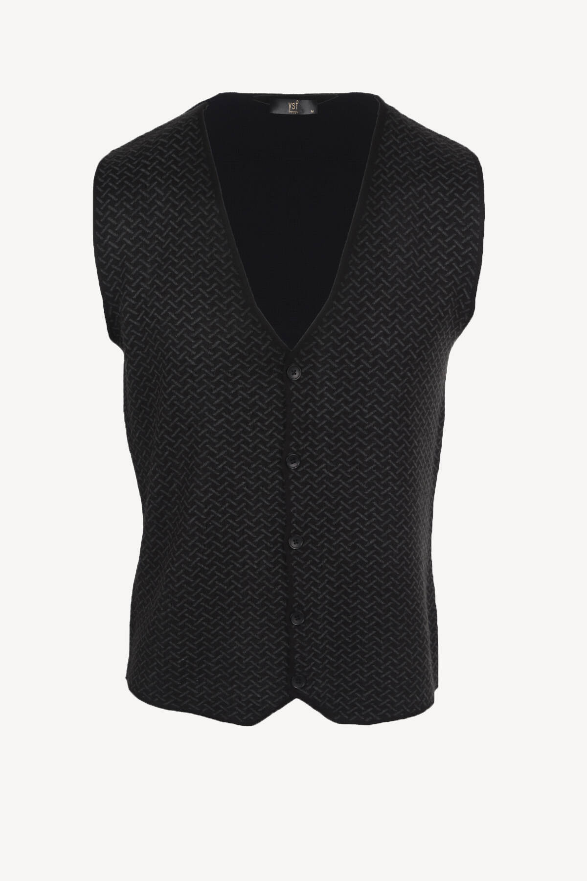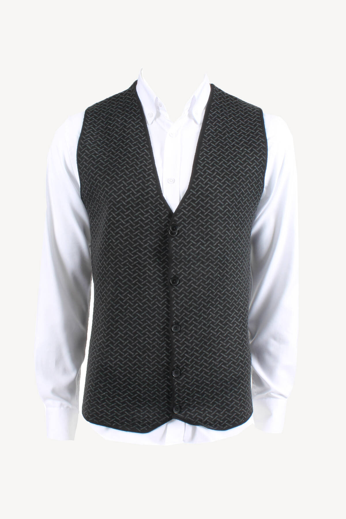 Erkek Siyah Desenli Klasik Triko Yelek