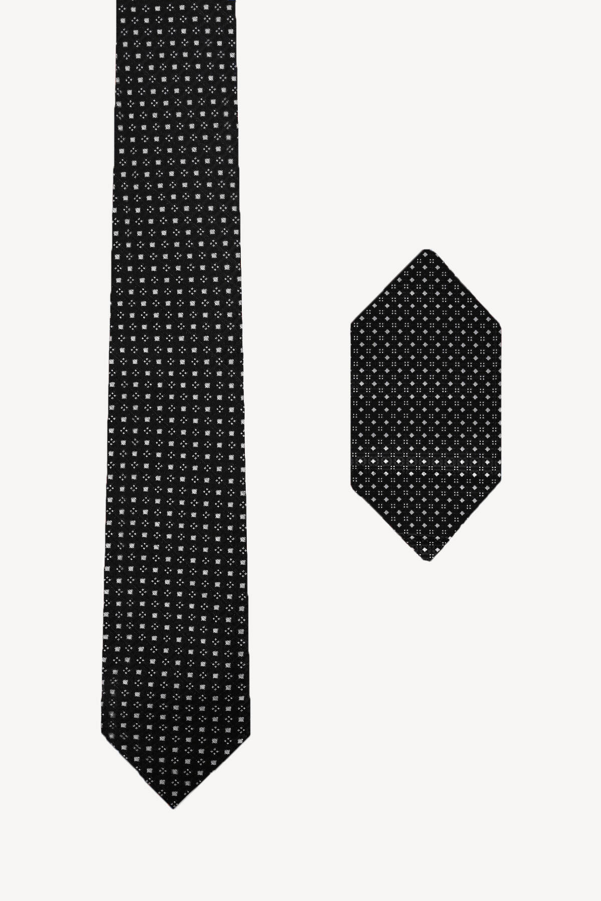 Erkek Siyah Desenli Kravat Mendil Set