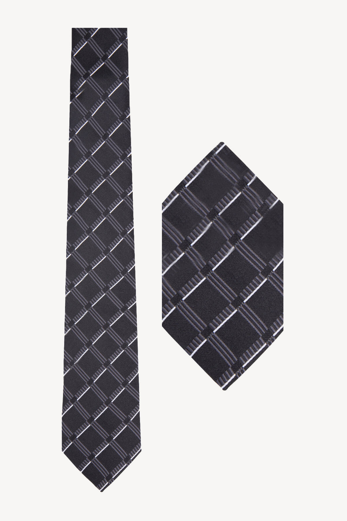 Erkek Siyah Gri Desenli Kravat Mendil