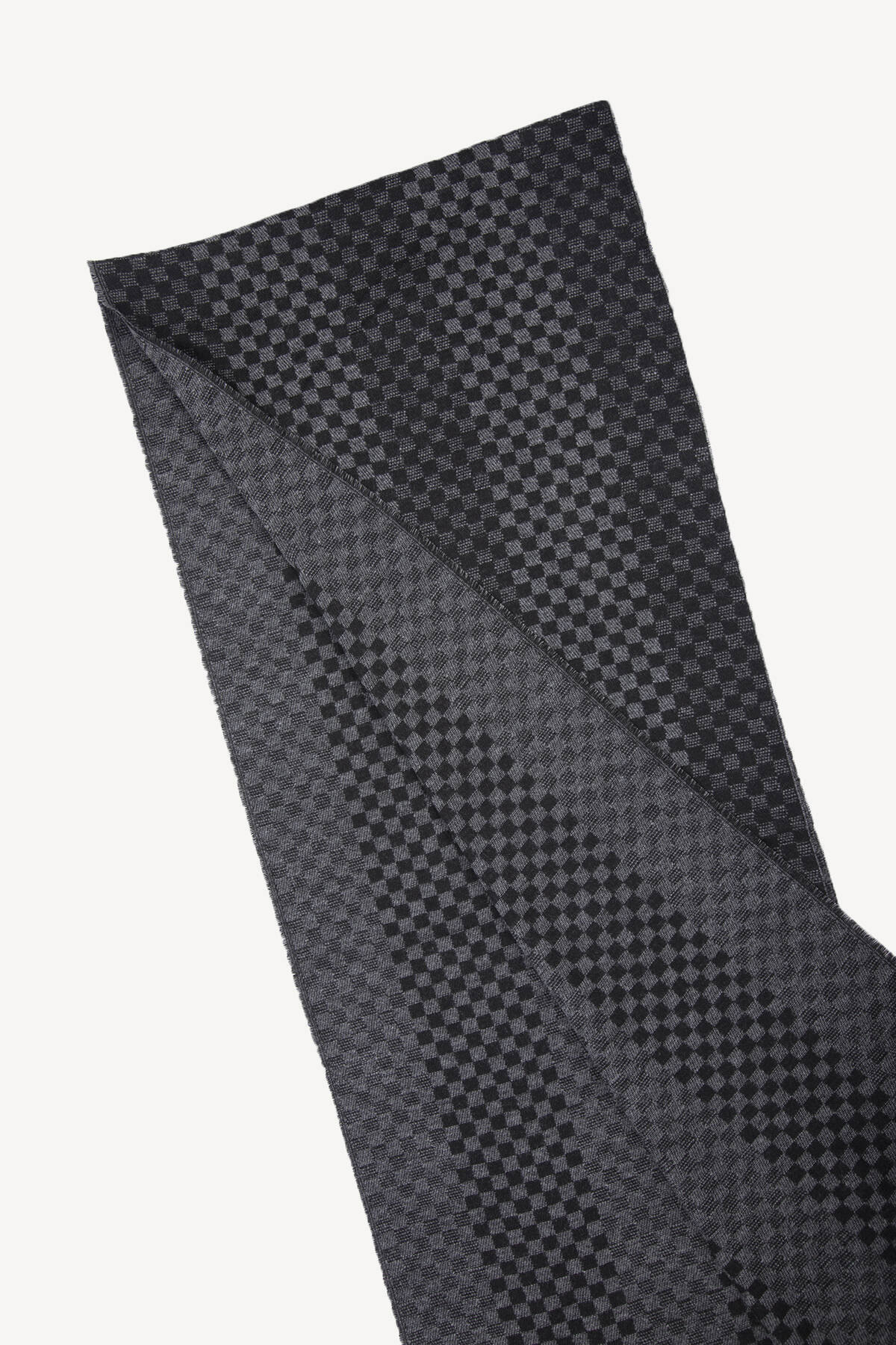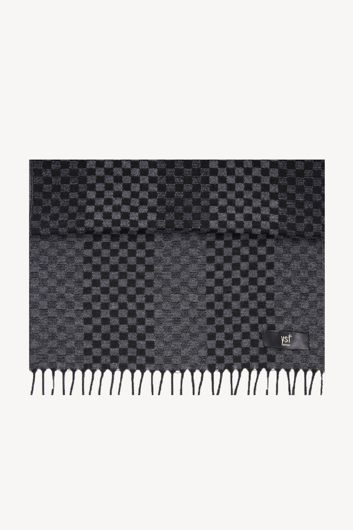 Erkek Siyah Gri Yünlü Kareli Kaşkol