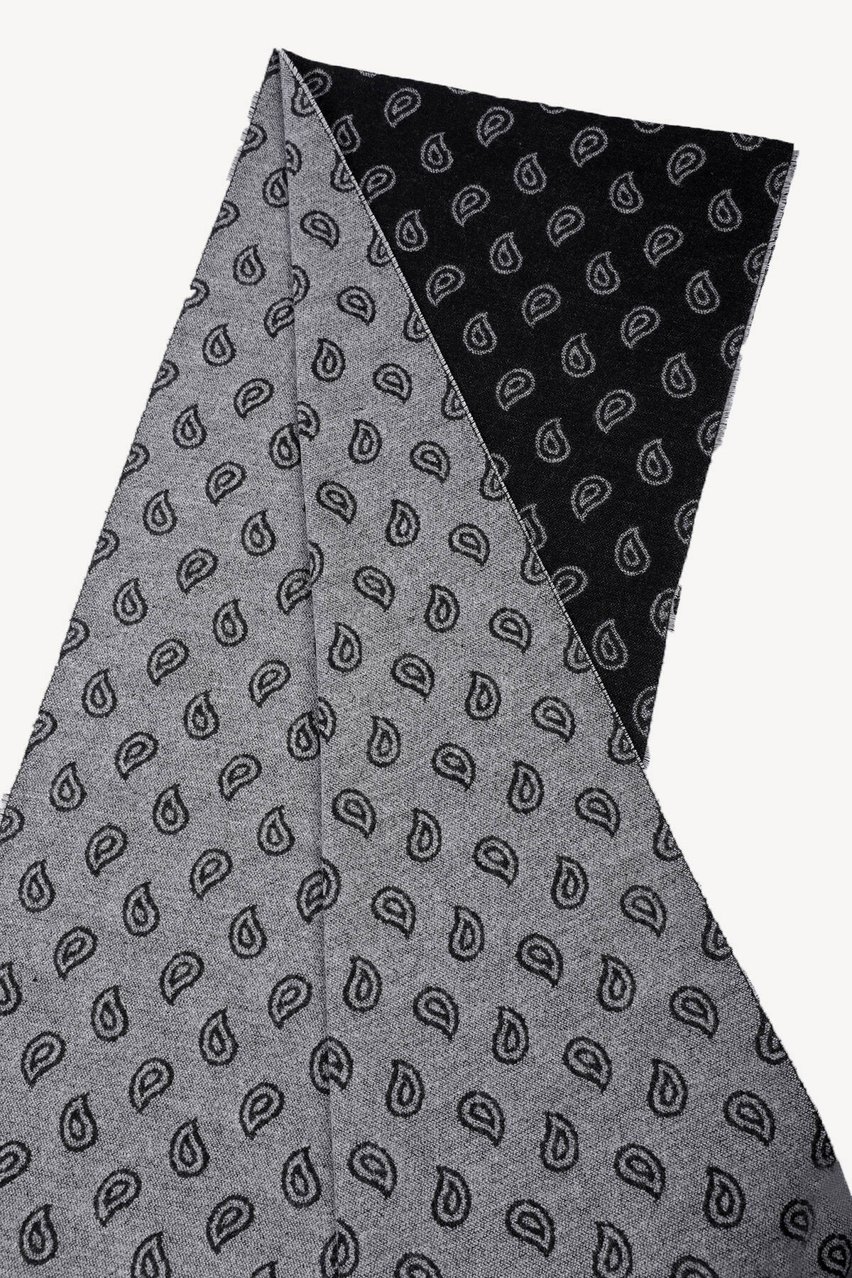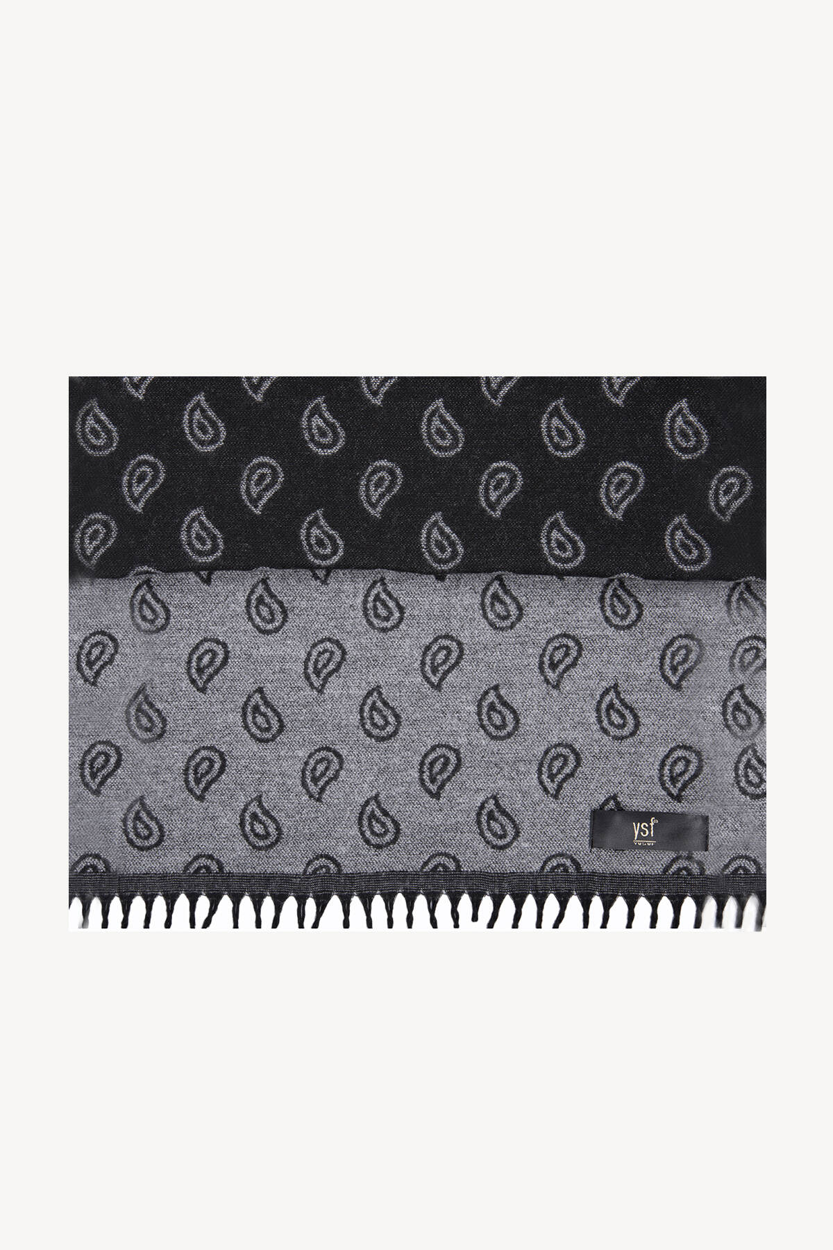 Erkek Siyah Gri Yünlü Şal Desenli Kaşkol