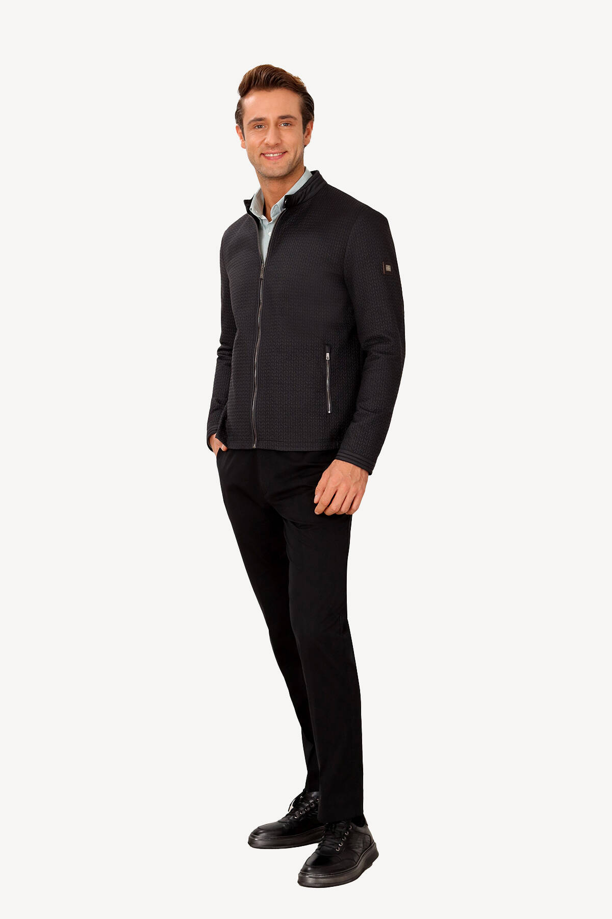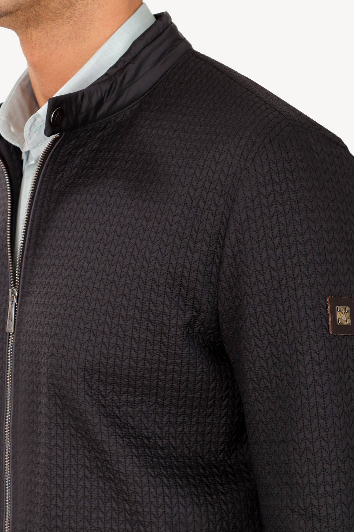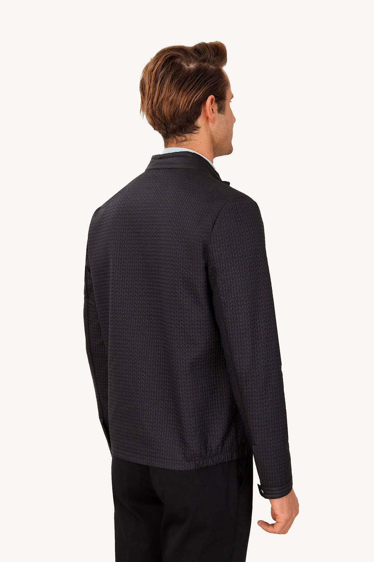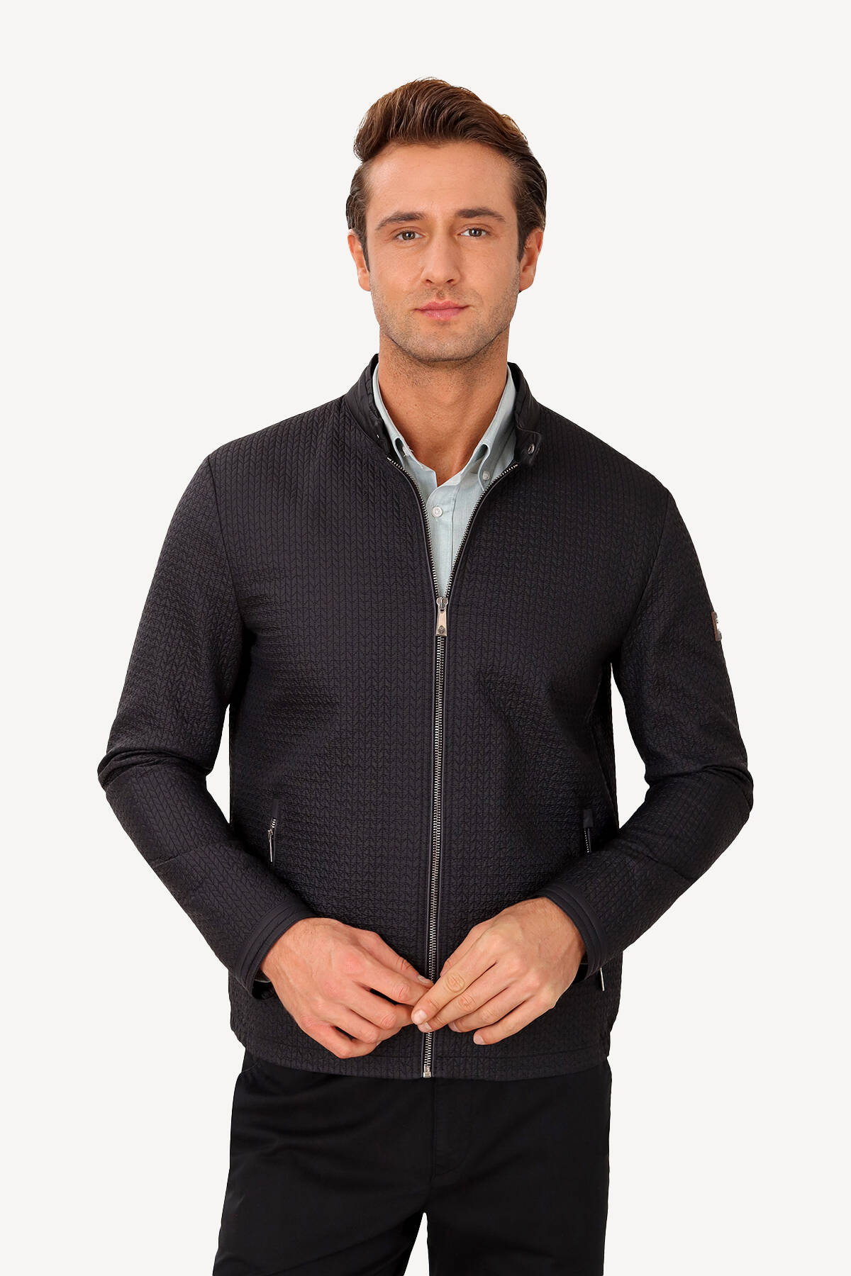 Erkek Siyah Hakim Yaka Desenli Spor yazlık Mont