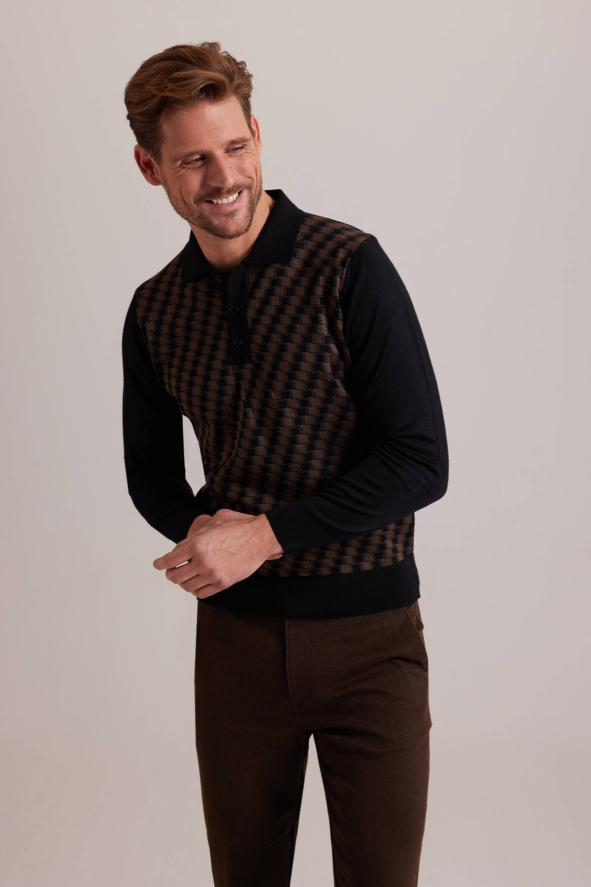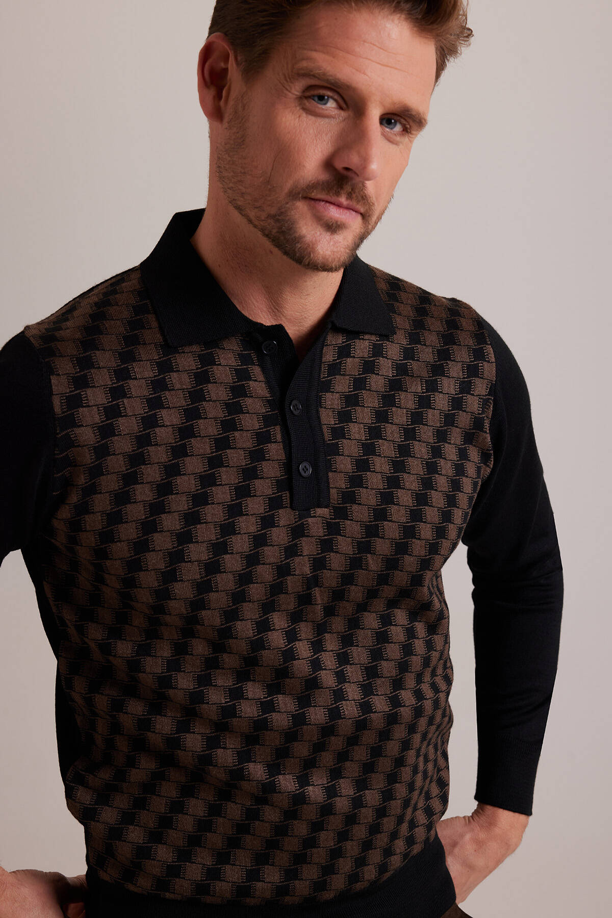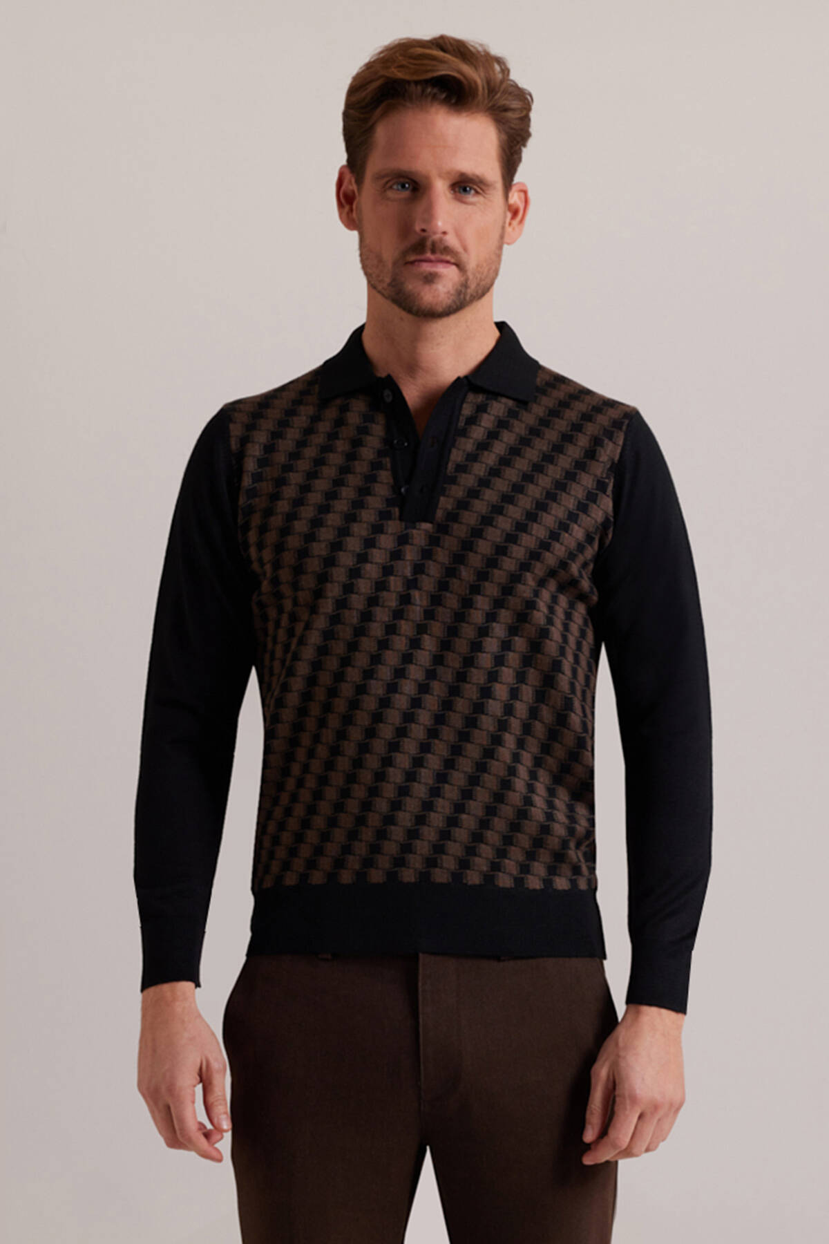 Erkek Siyah Kahve Polo Yaka Desenli Triko